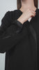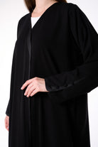 Black Jina Crepe Abaya with Organza-Trimmed Sleeves