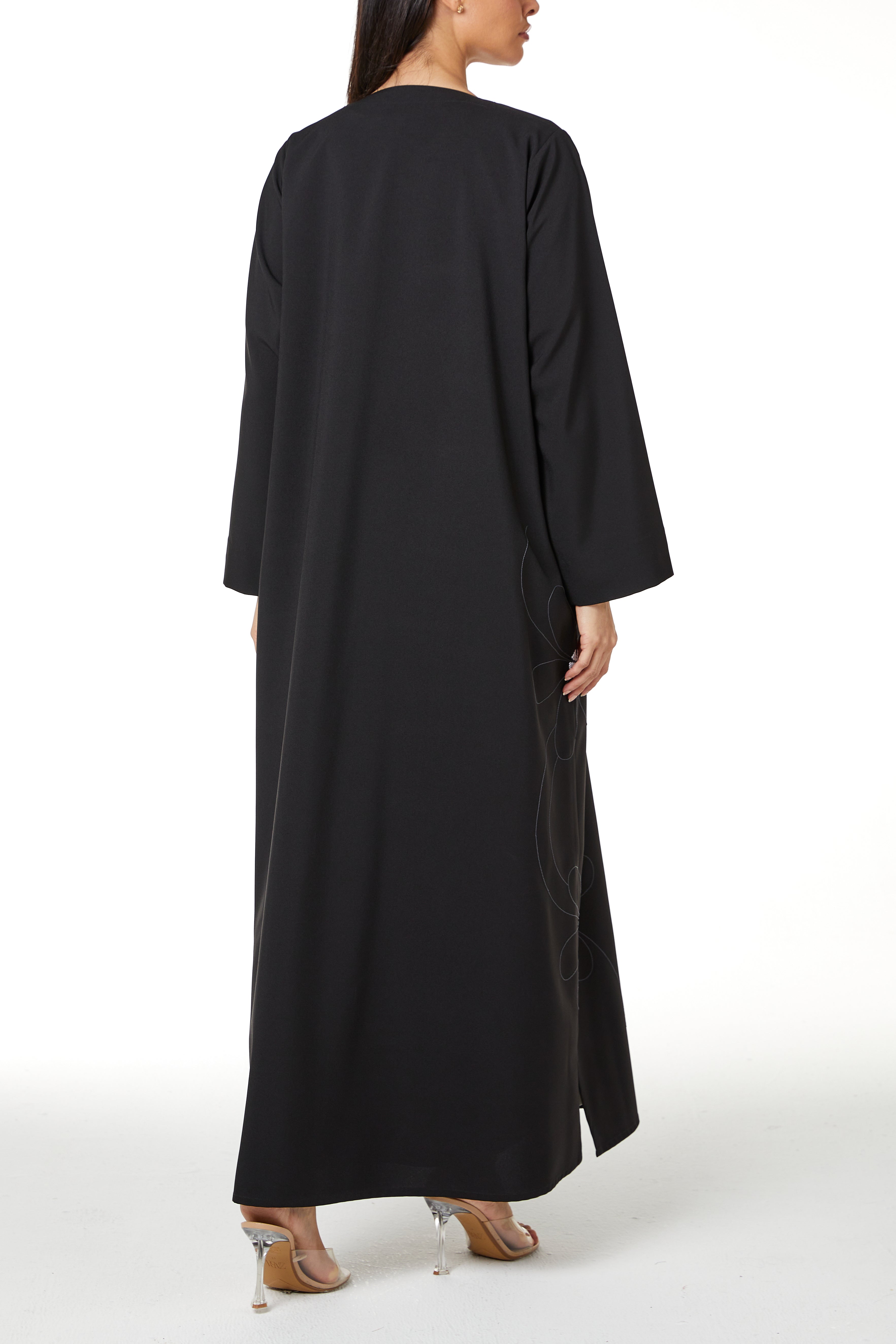 مناسبة لإطلالات العمل والارتداء اليومي، تتميز هذه العباية بتصميم كلوش أنيق يوفّر راحة وسهولة حركة طوال اليوم.