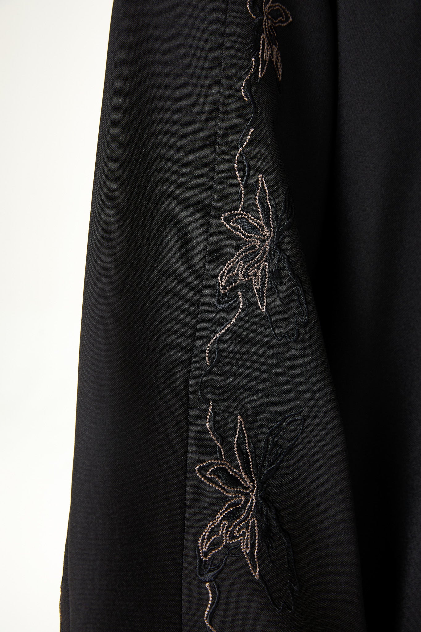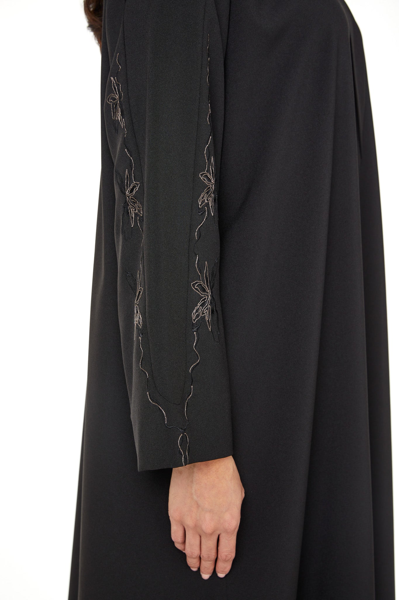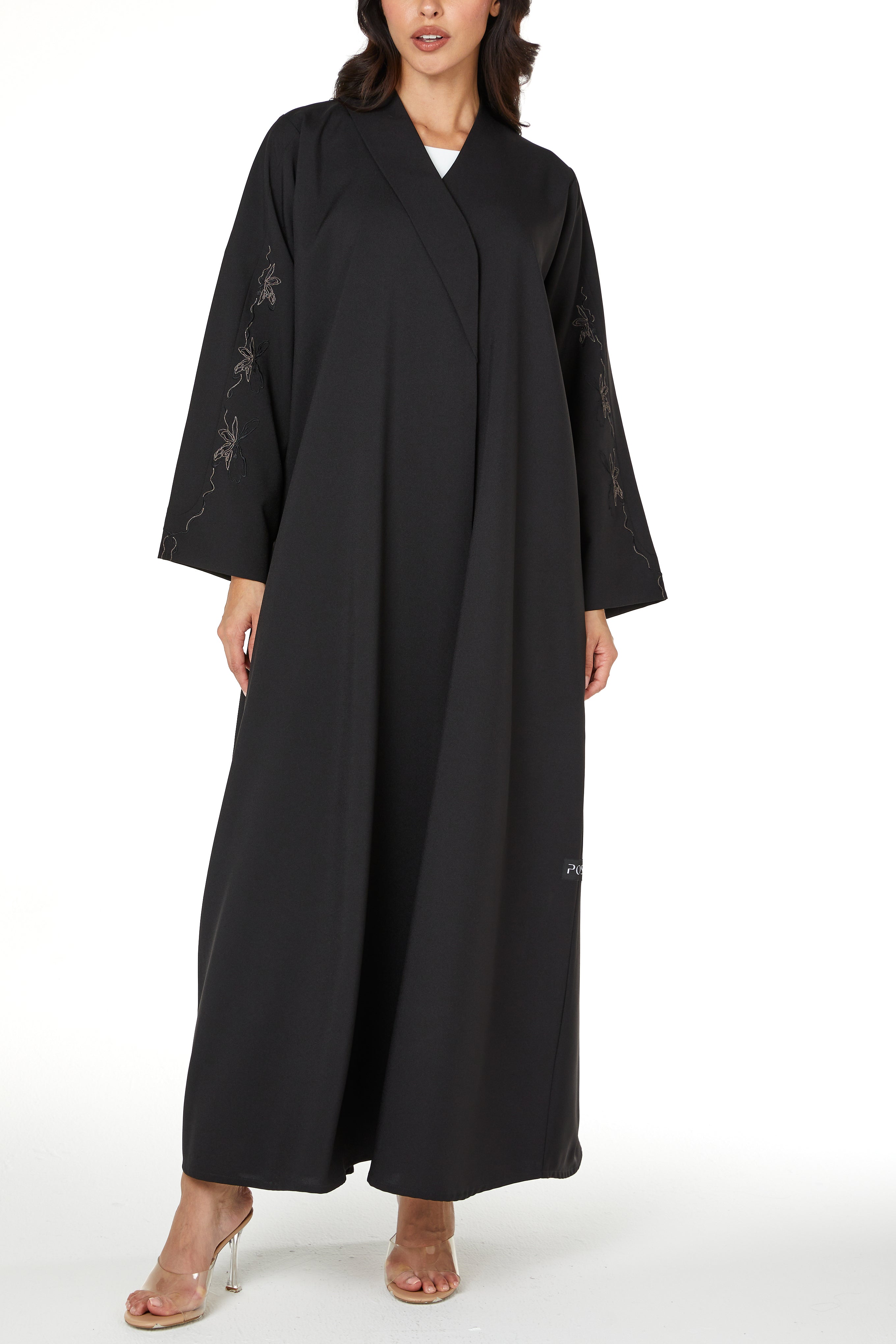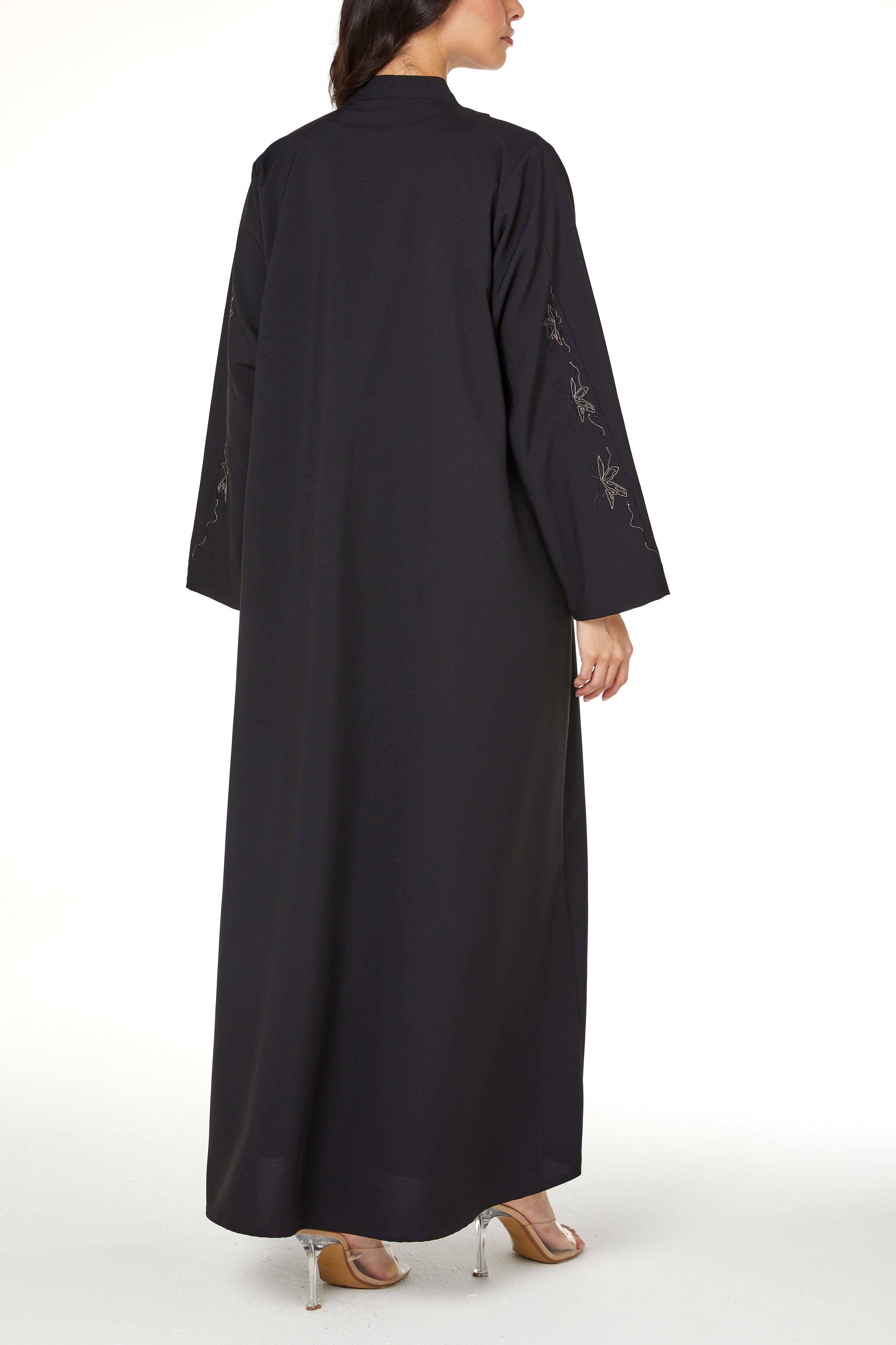Black Kadi Abaya with Sleeve Embroidery Detail