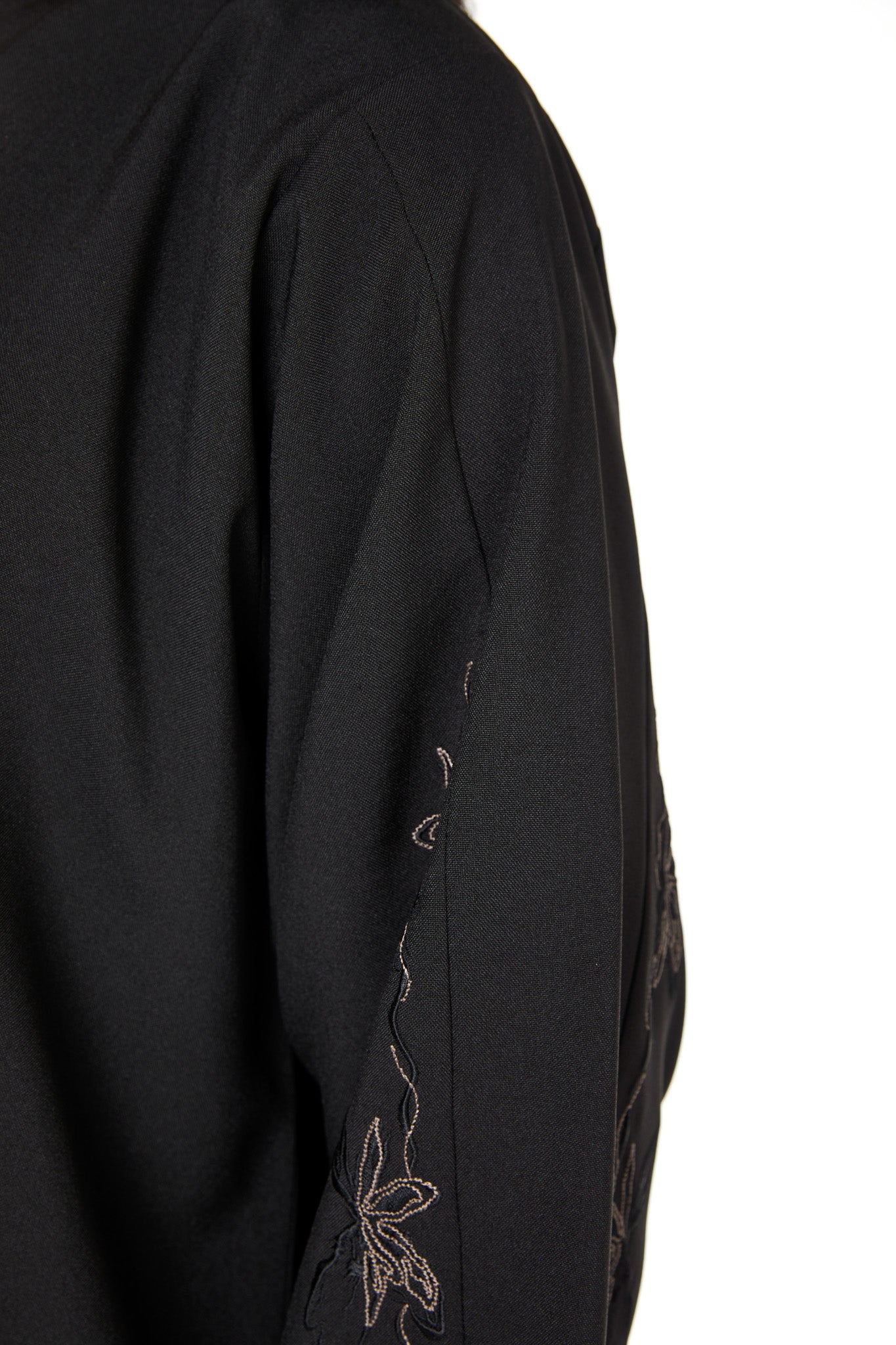 Delicate embroidery is applied along the sleeves, adding a refined visual detail without overpowering the overall look. The embroidery placement is controlled and elegant, maintaining a professional appearance suitable for work environments.
