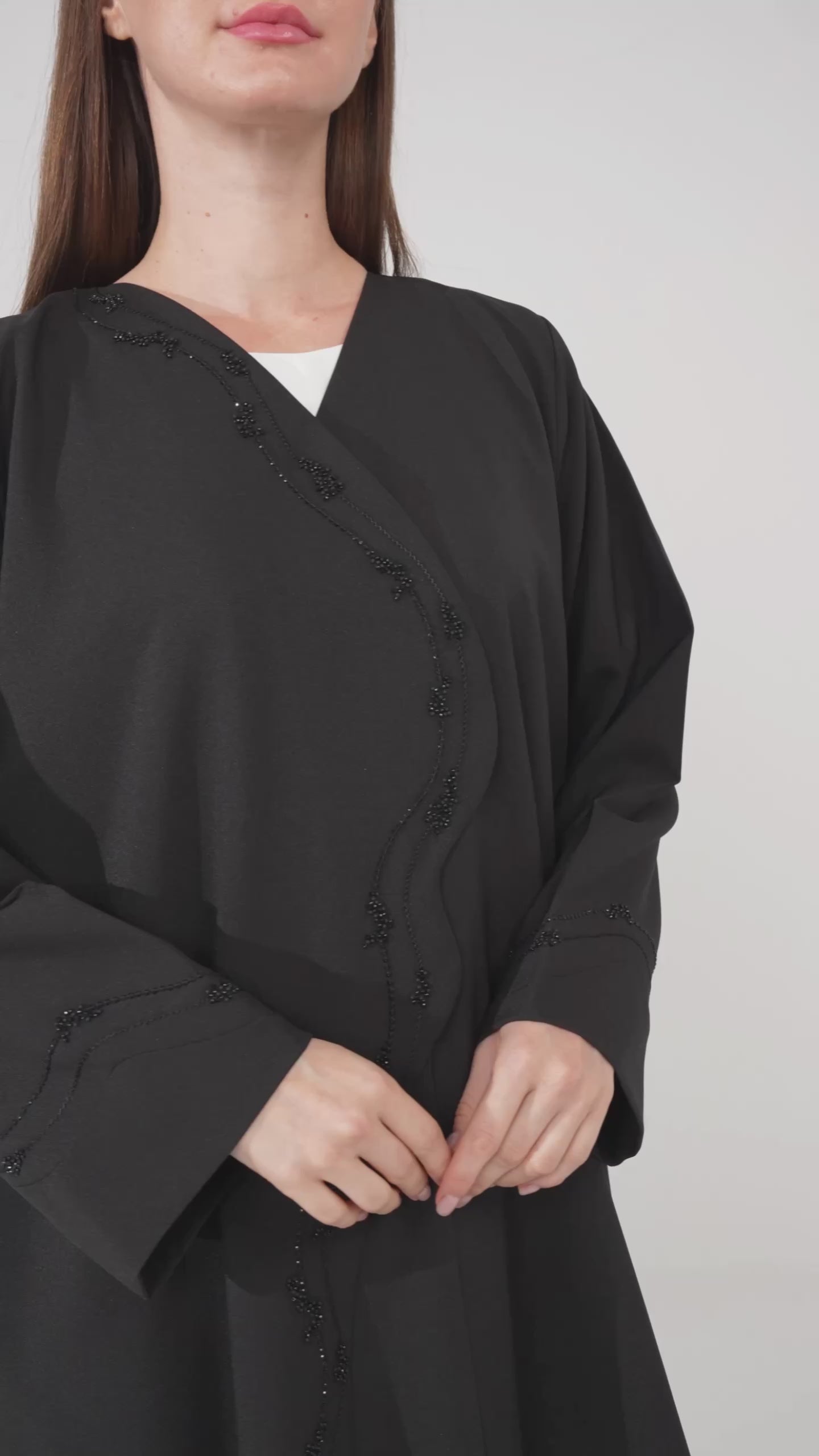 عباءة كادي كريب سوداء مع لوحة تطريز باردو
