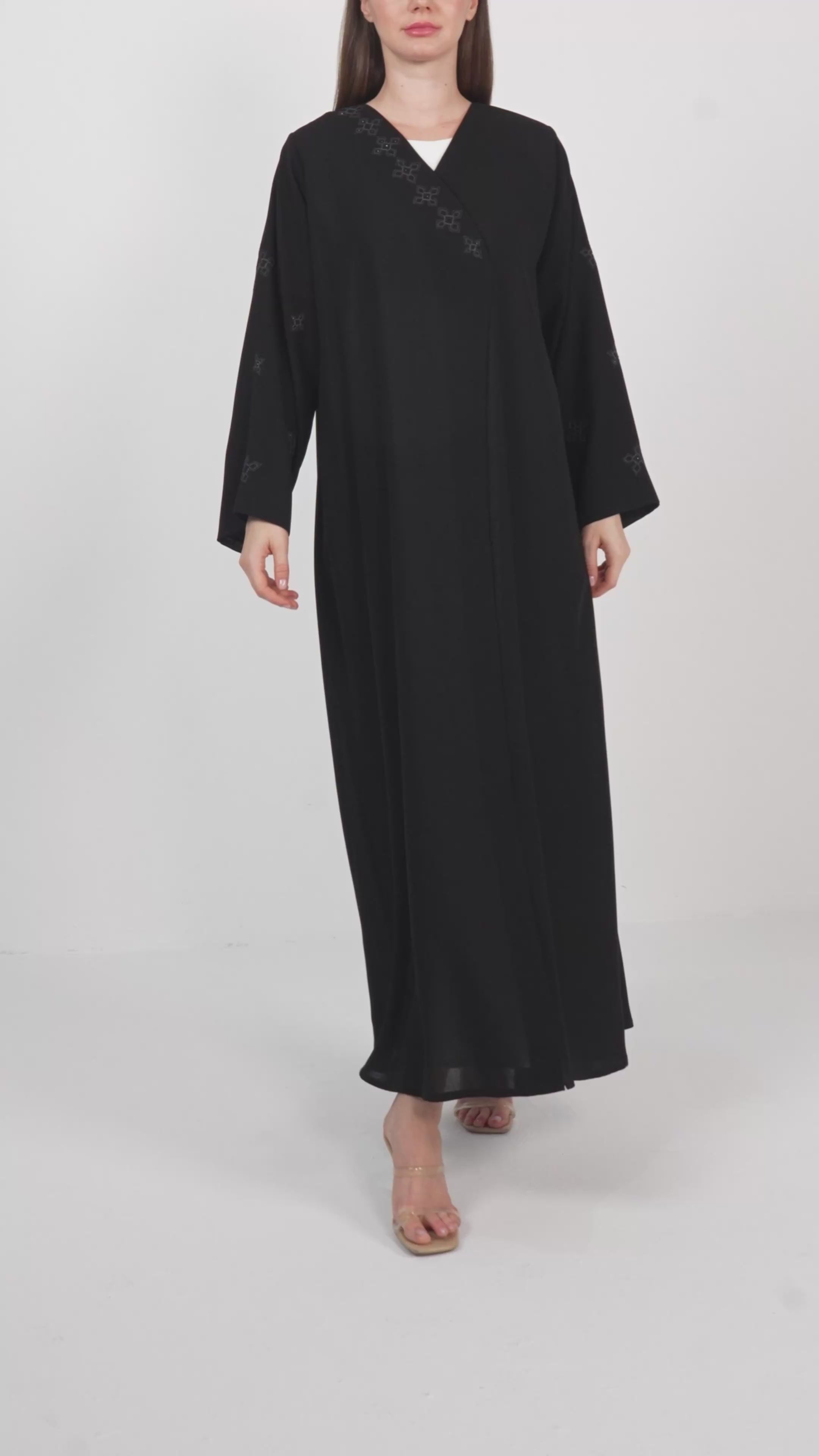 Black Shafa Crepe Abaya with Embroidered Tatreez Detail