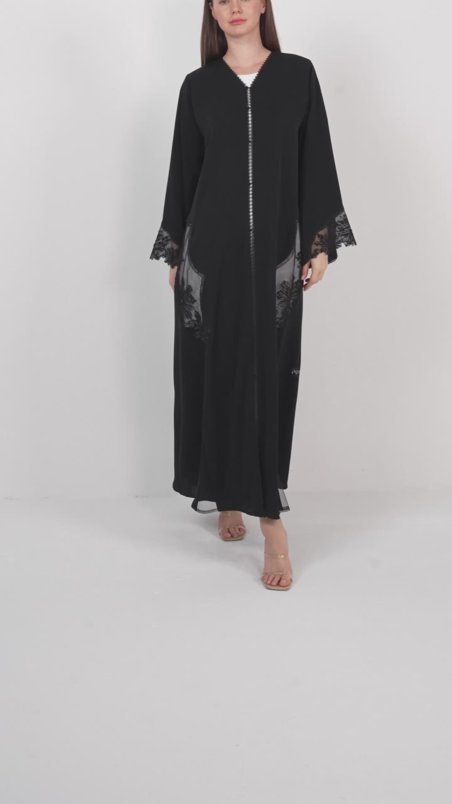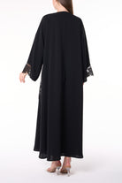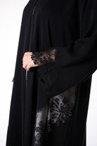 This abaya stands out for its handworked embroidery details, paired with a refined cutwork finish along the neckline, creating a sophisticated balance of modesty and opulence. Customers will appreciate its versatility—easy to pair with both classic and contemporary accessories—while enjoying the comfort of the lightweight yet structured fabric.