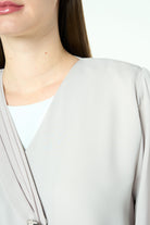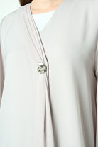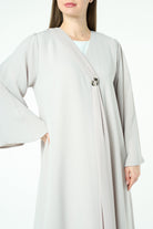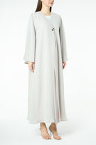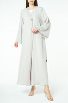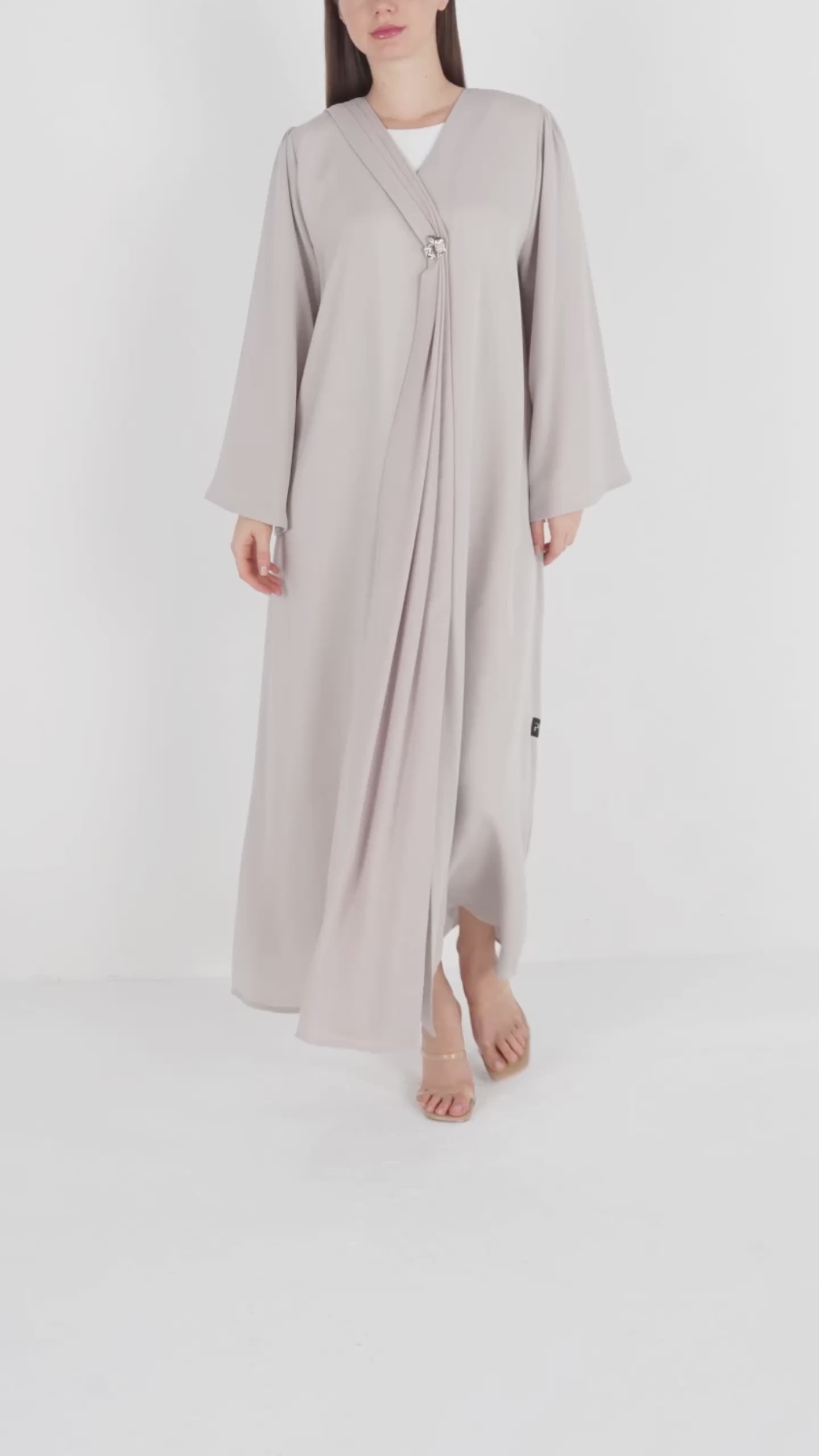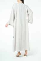 This Beige abaya is crafted from soft, lightweight Joy Nada fabric in a neutral tone that blends into every occasion with grace. Designed in a KLOSH cut, it flares subtly from the waist, offering modesty and comfortable movement without excess volume.