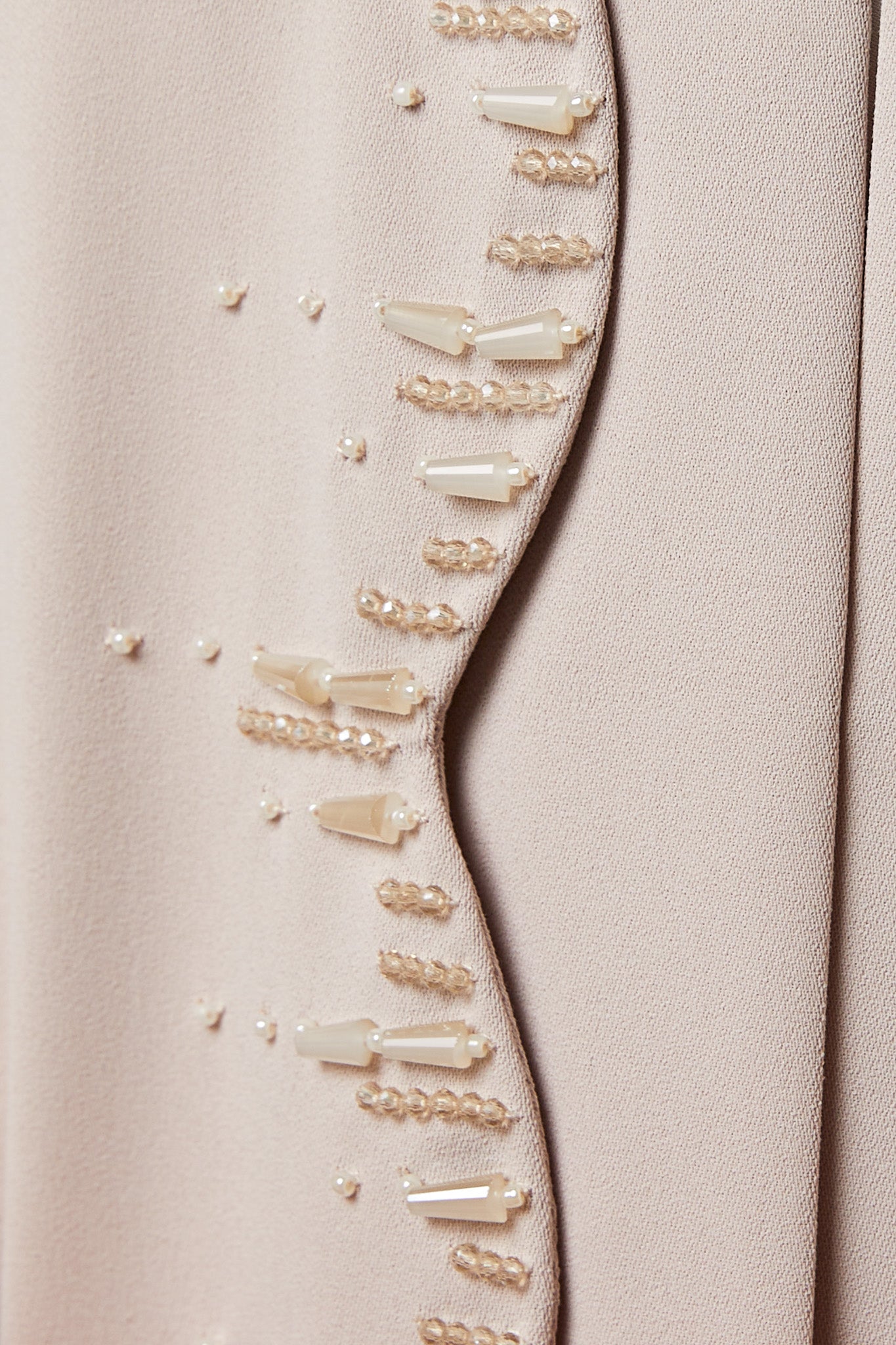 Beige Zoe Crepe, Overlap Front and Sleeve Beadwork Detail