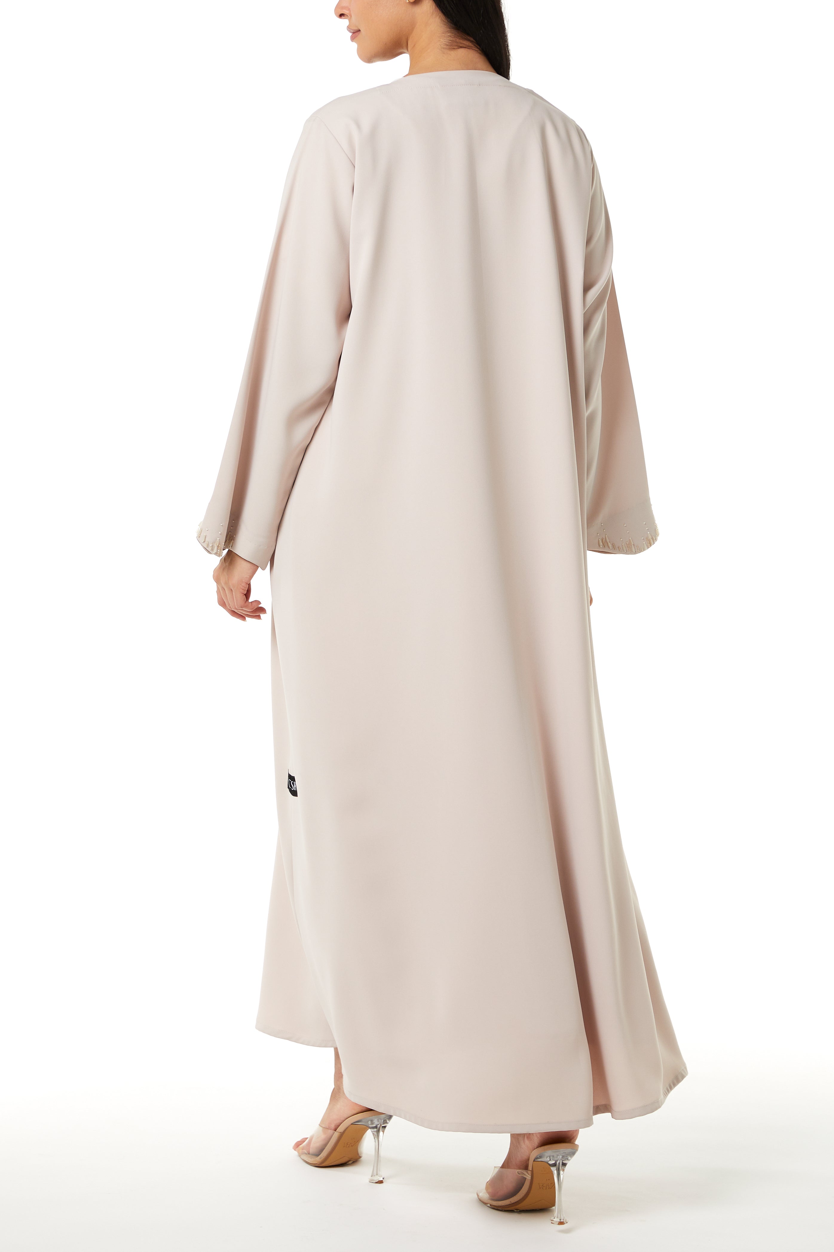 The klosh cut provides gentle width through the body, supporting natural movement and comfort. Designed for fall, winter, and year-round wear, this abaya offers a refined option for evening gatherings and special occasions.
