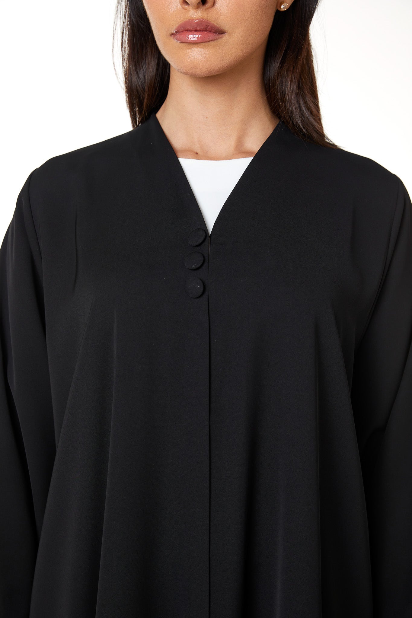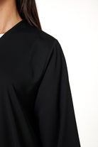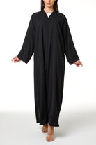Aria crepe offers a smooth and lightweight feel, making this abaya comfortable for extended wear during festive occasions and social gatherings. The black color gives a refined and elegant appearance suitable for Eid, Ramadan, and all-day wear.