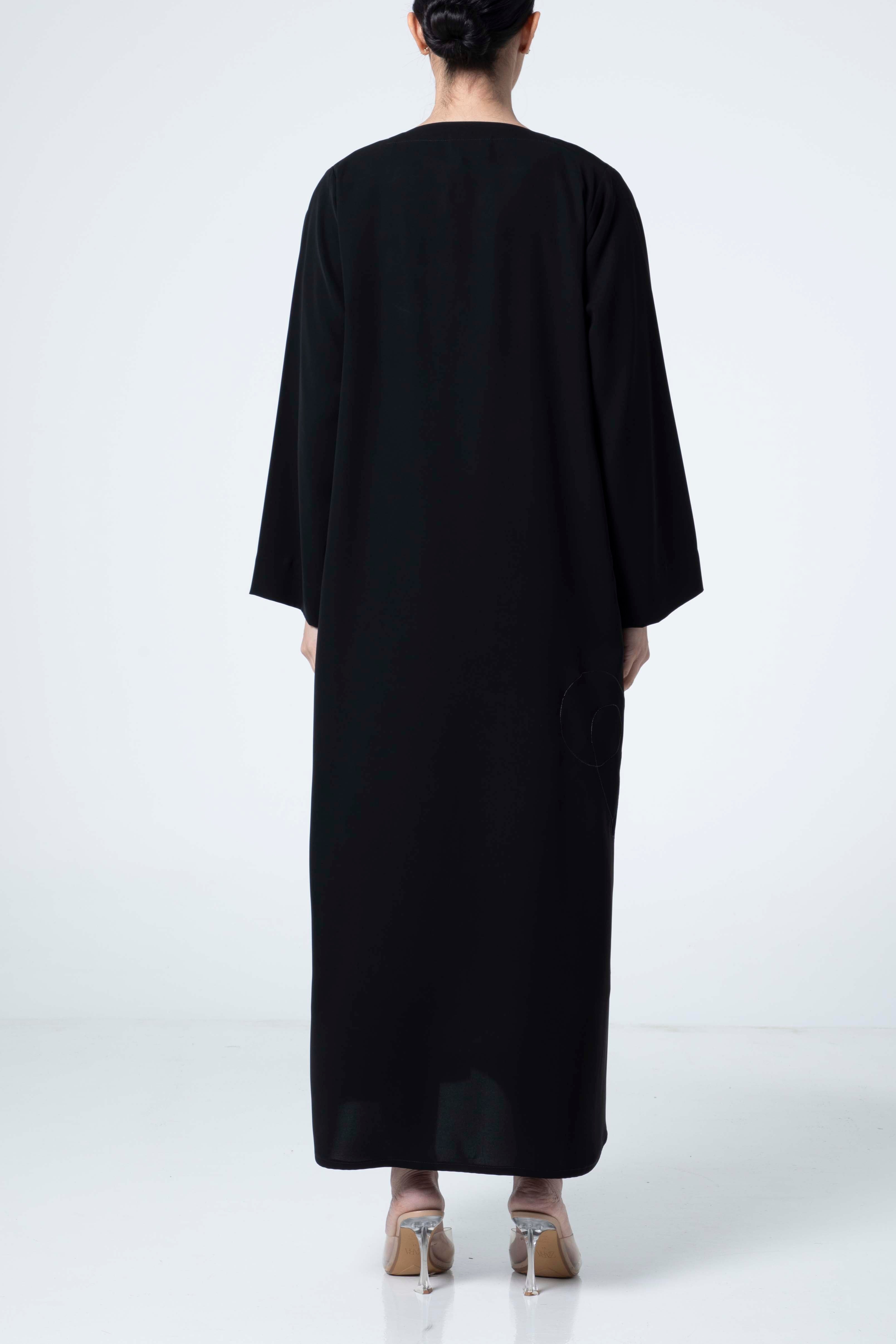 This abaya is designed to balance practicality with subtle decorative detail. The silhouette remains modest and streamlined, allowing ease of movement while keeping a composed and polished finish. The overall look stays clean and versatile, making it suitable for daily routines and extended wear.