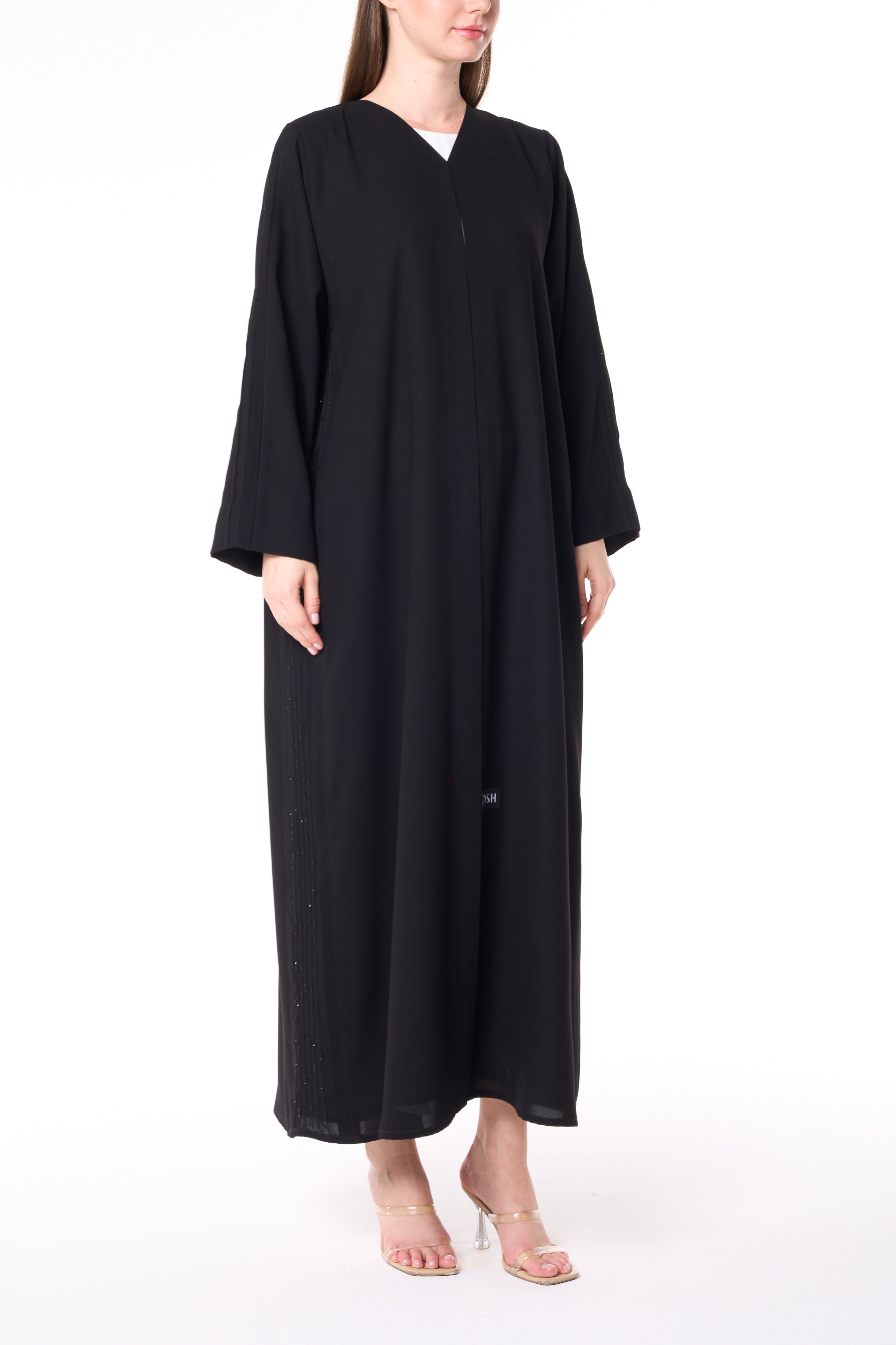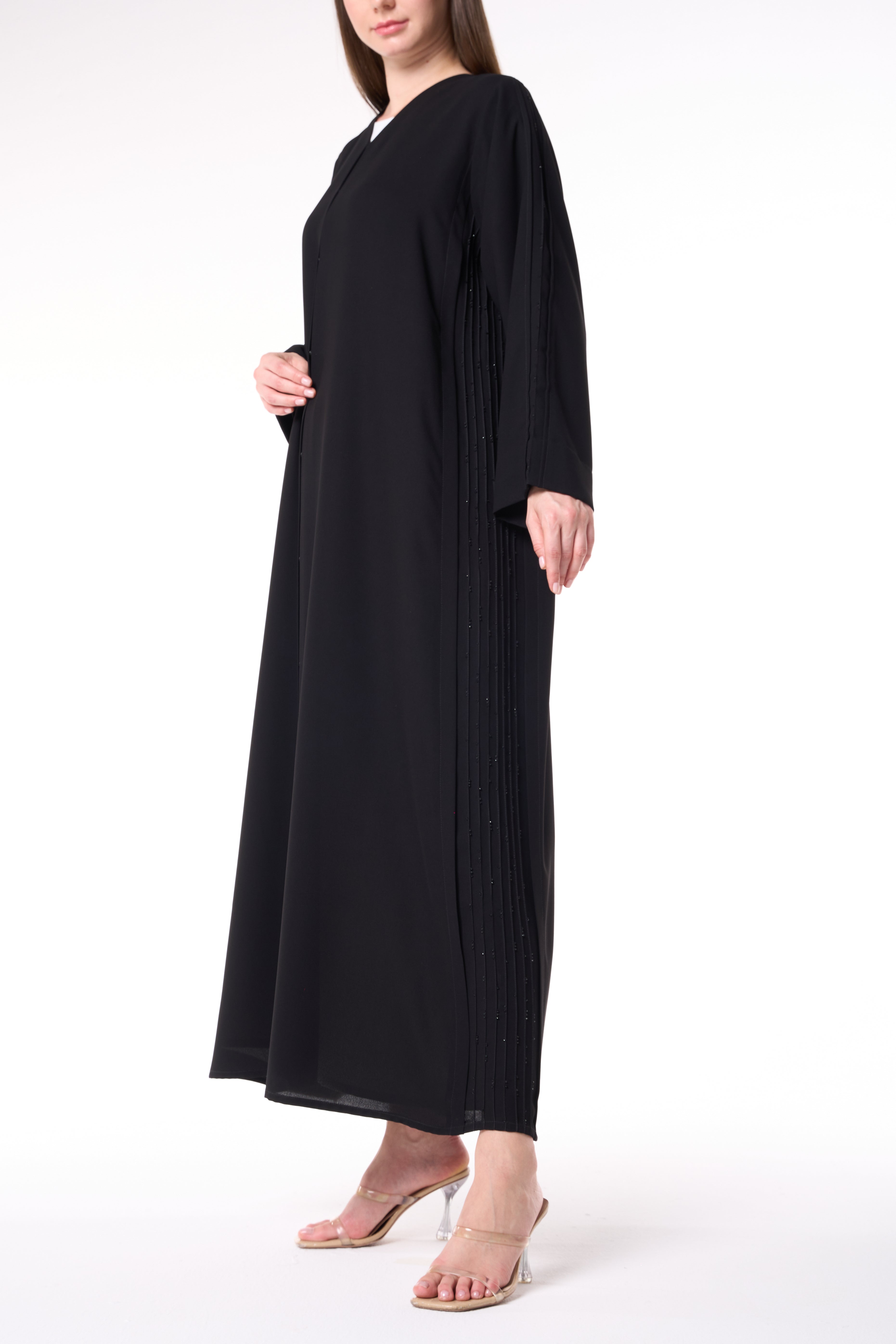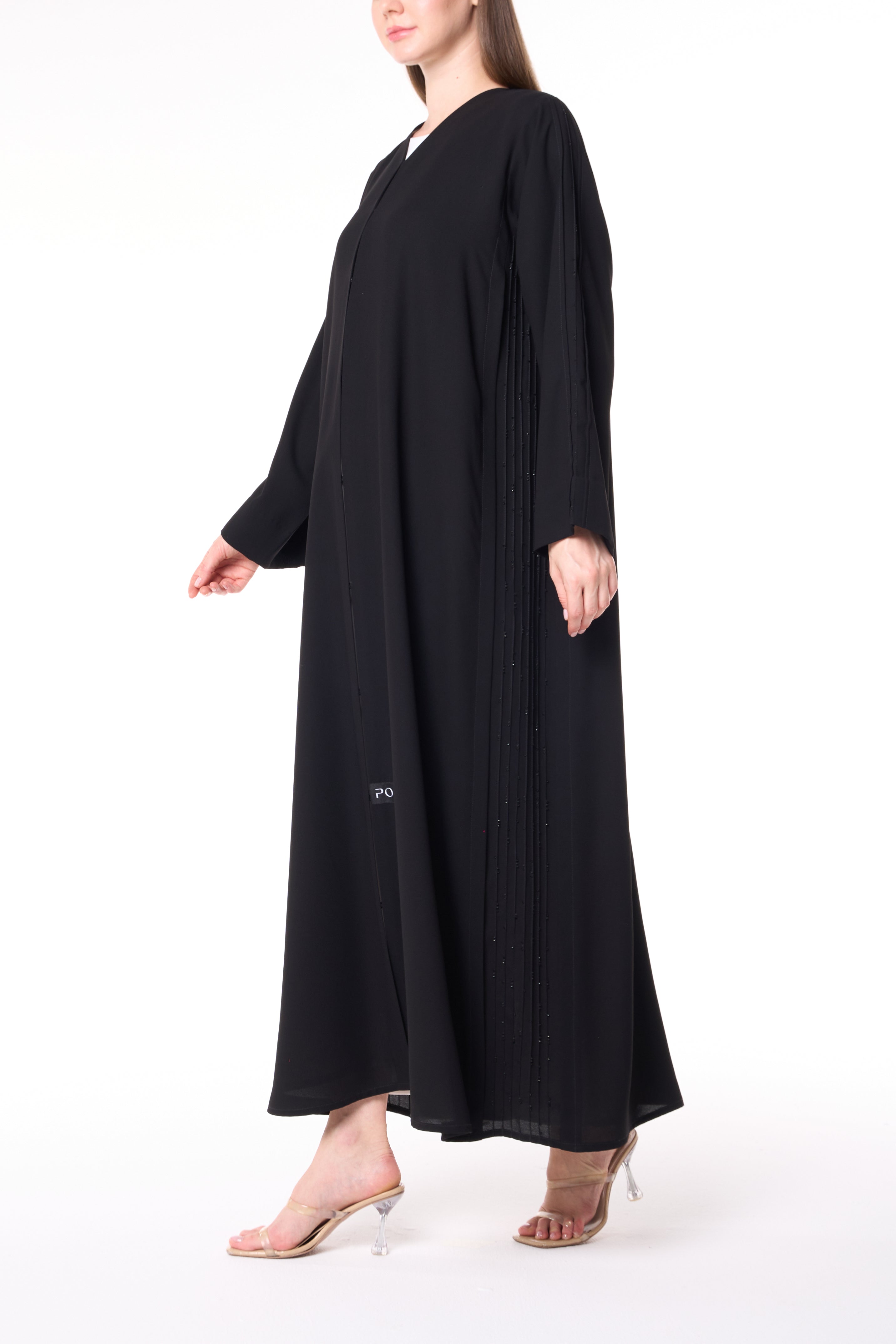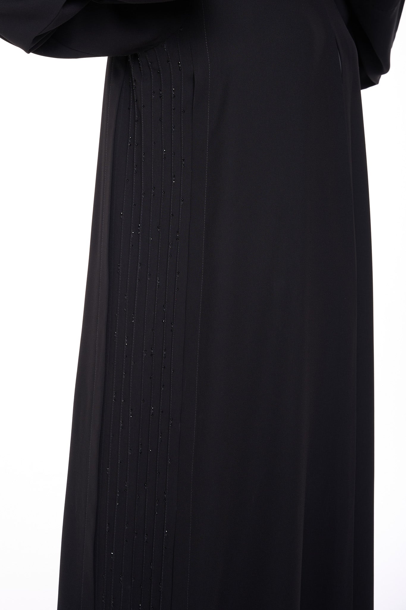 Black Claire Crepe Abaya with Front Pintuck Beadwork