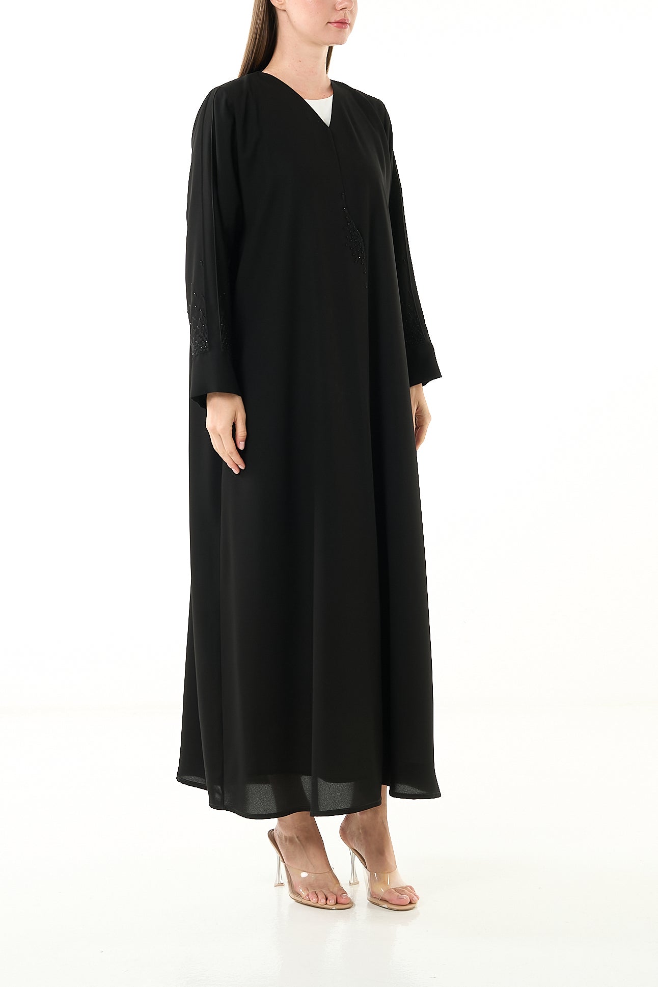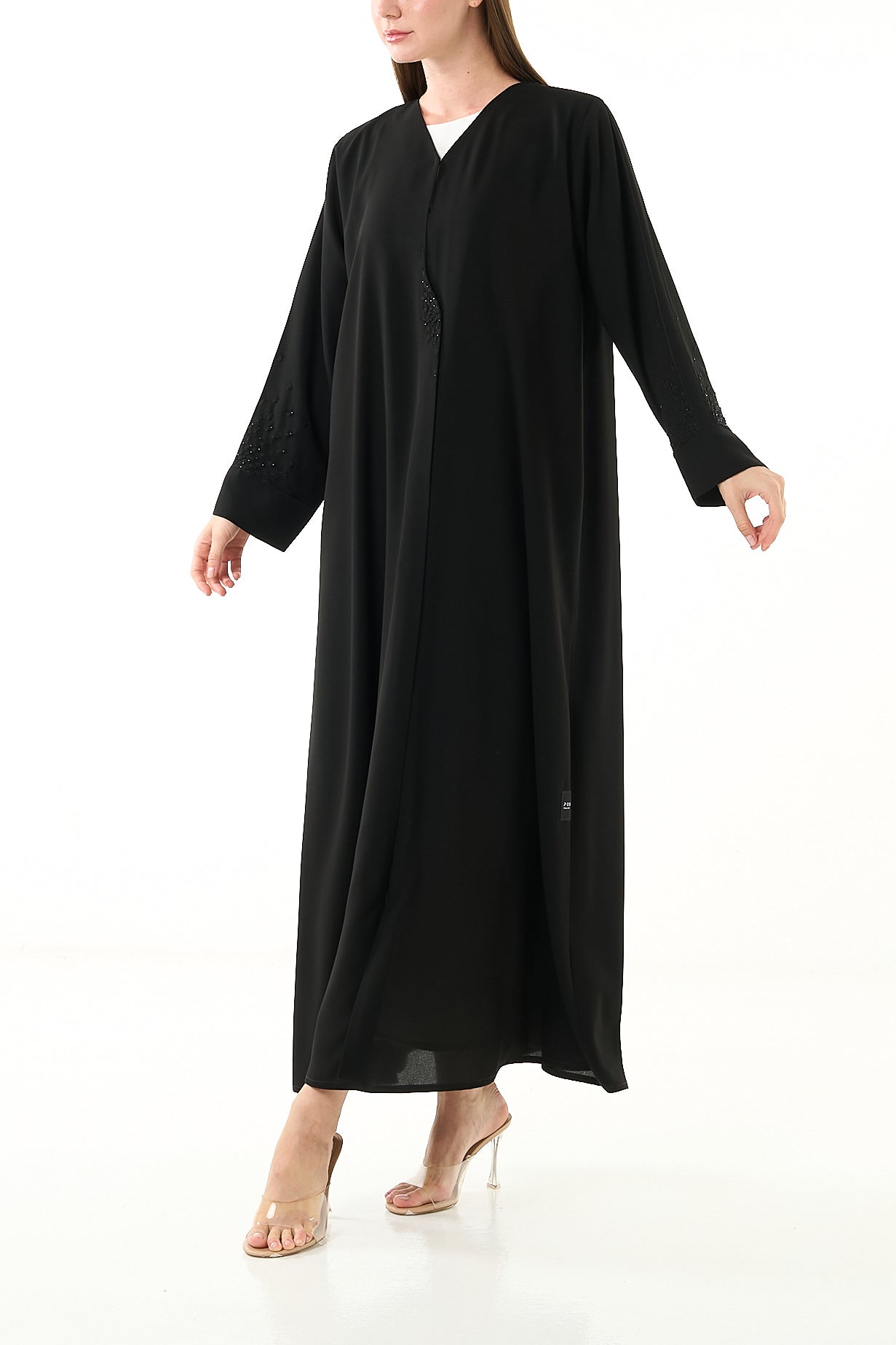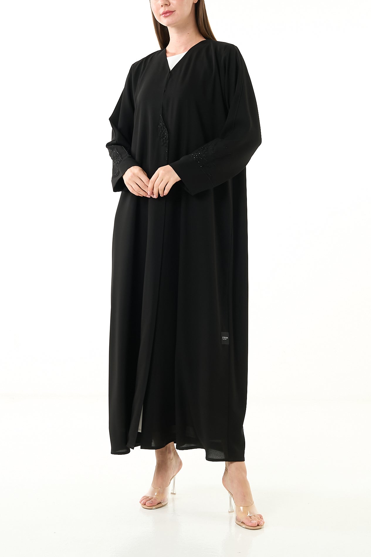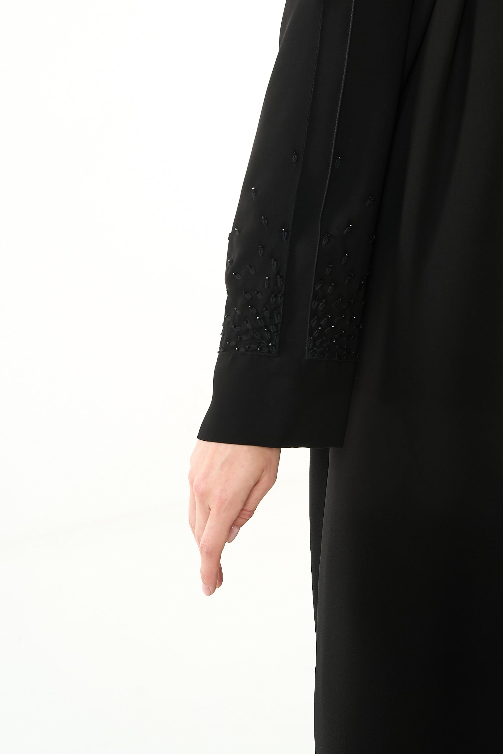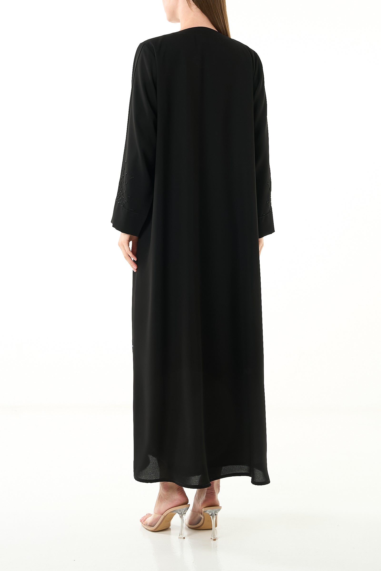 Black Claire Crepe Abaya with Klosh Cut and Minimal Beadwork