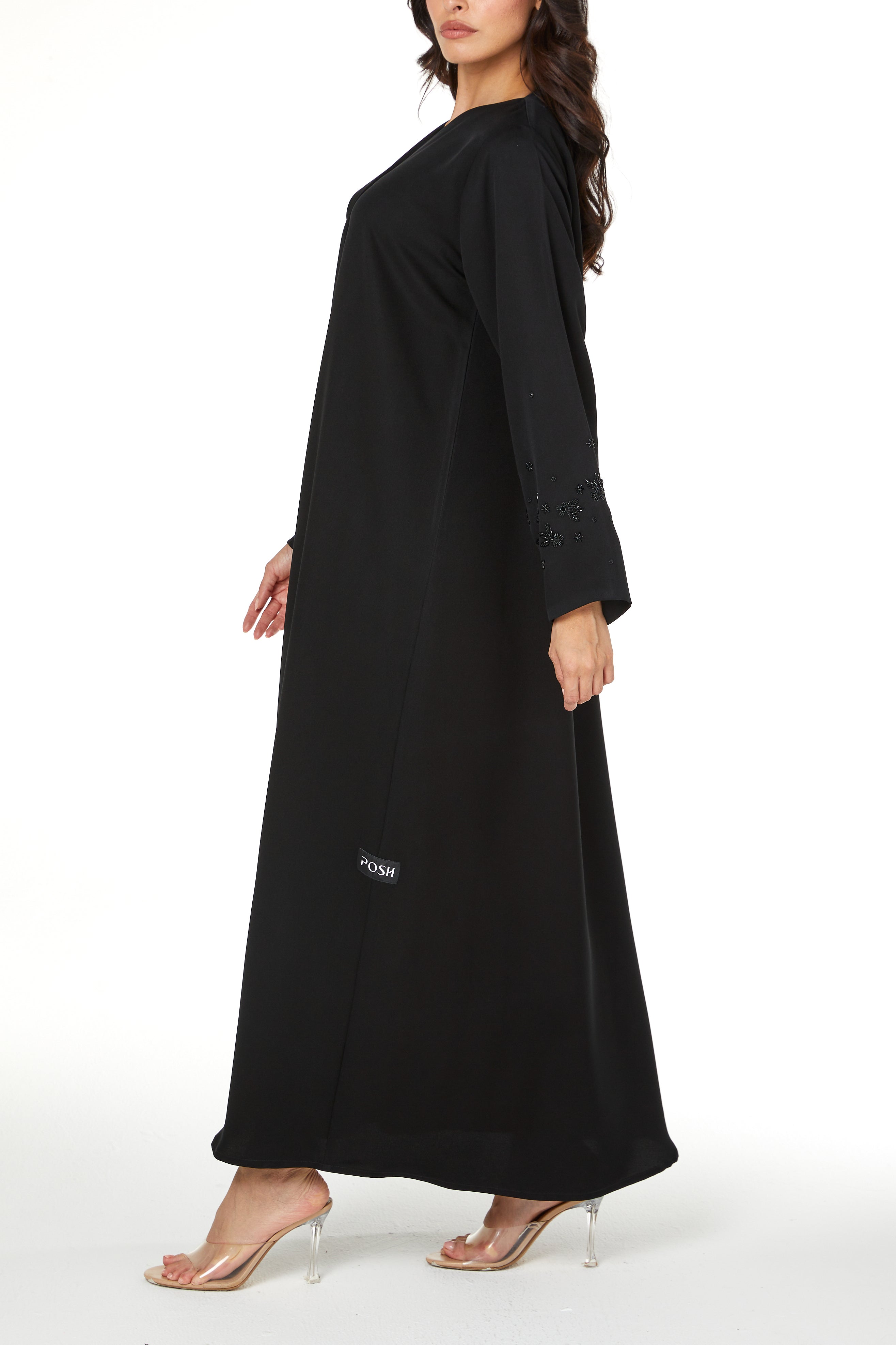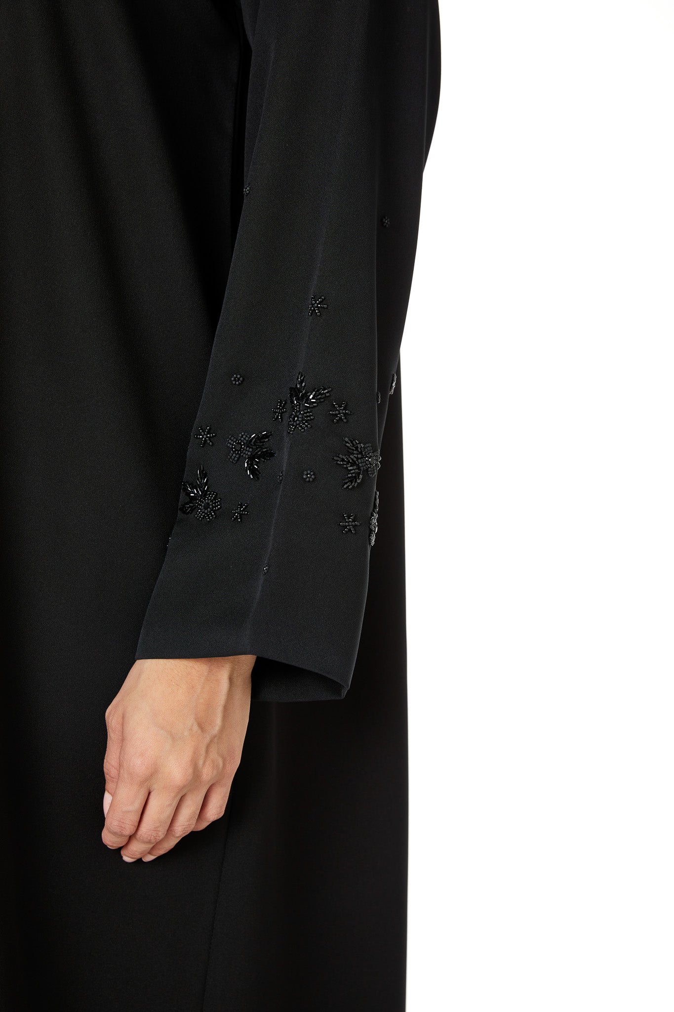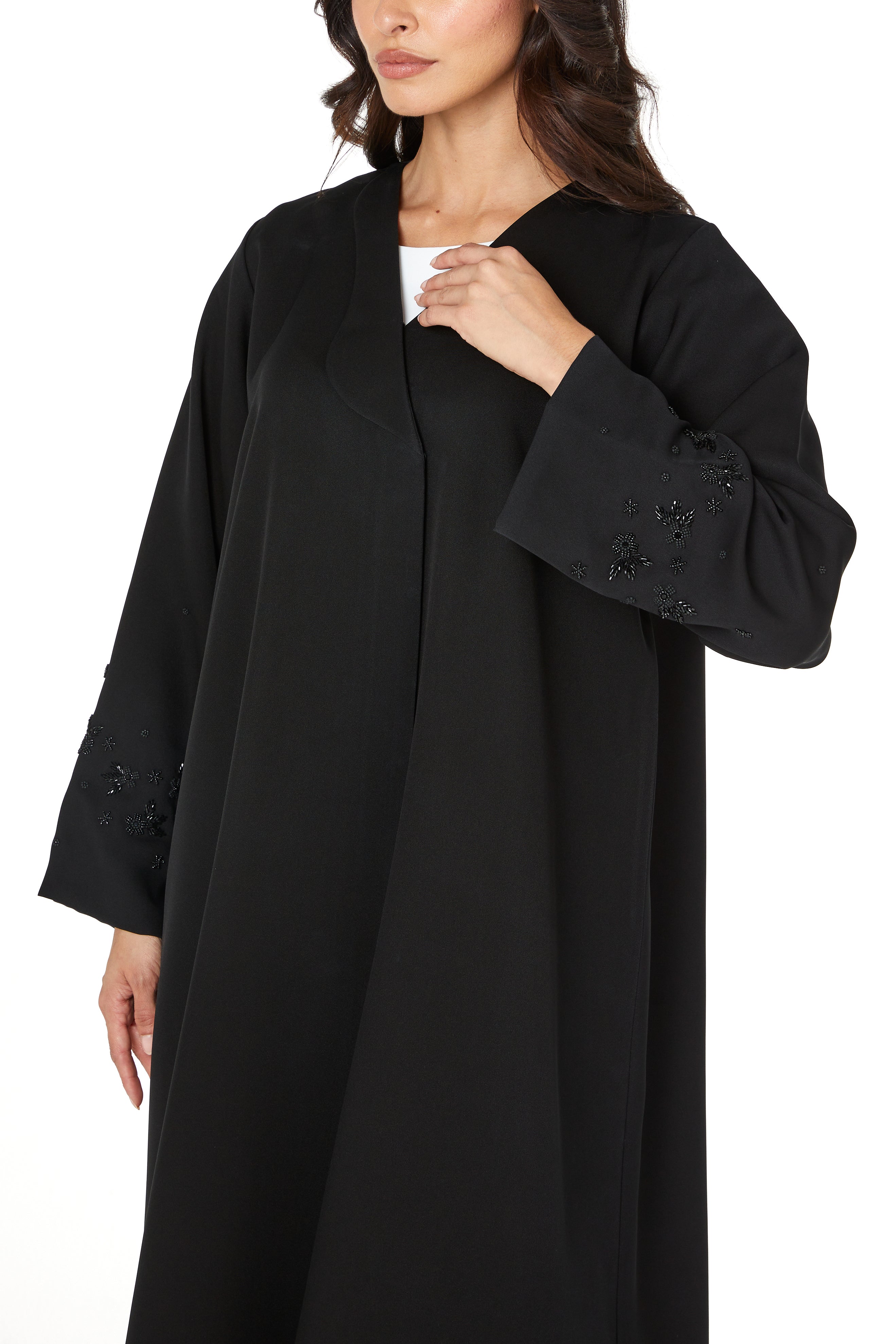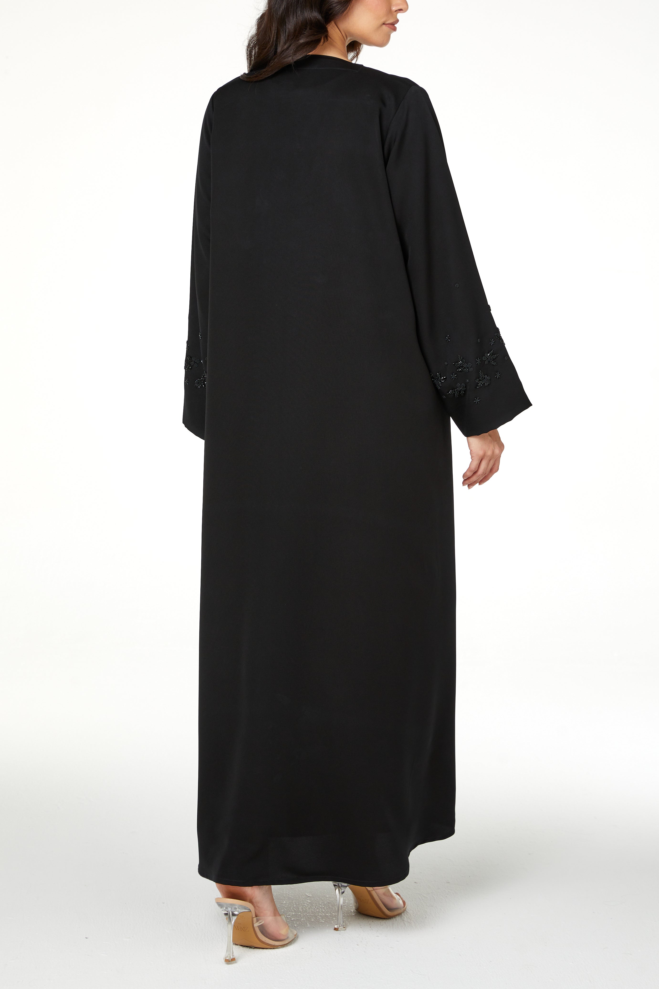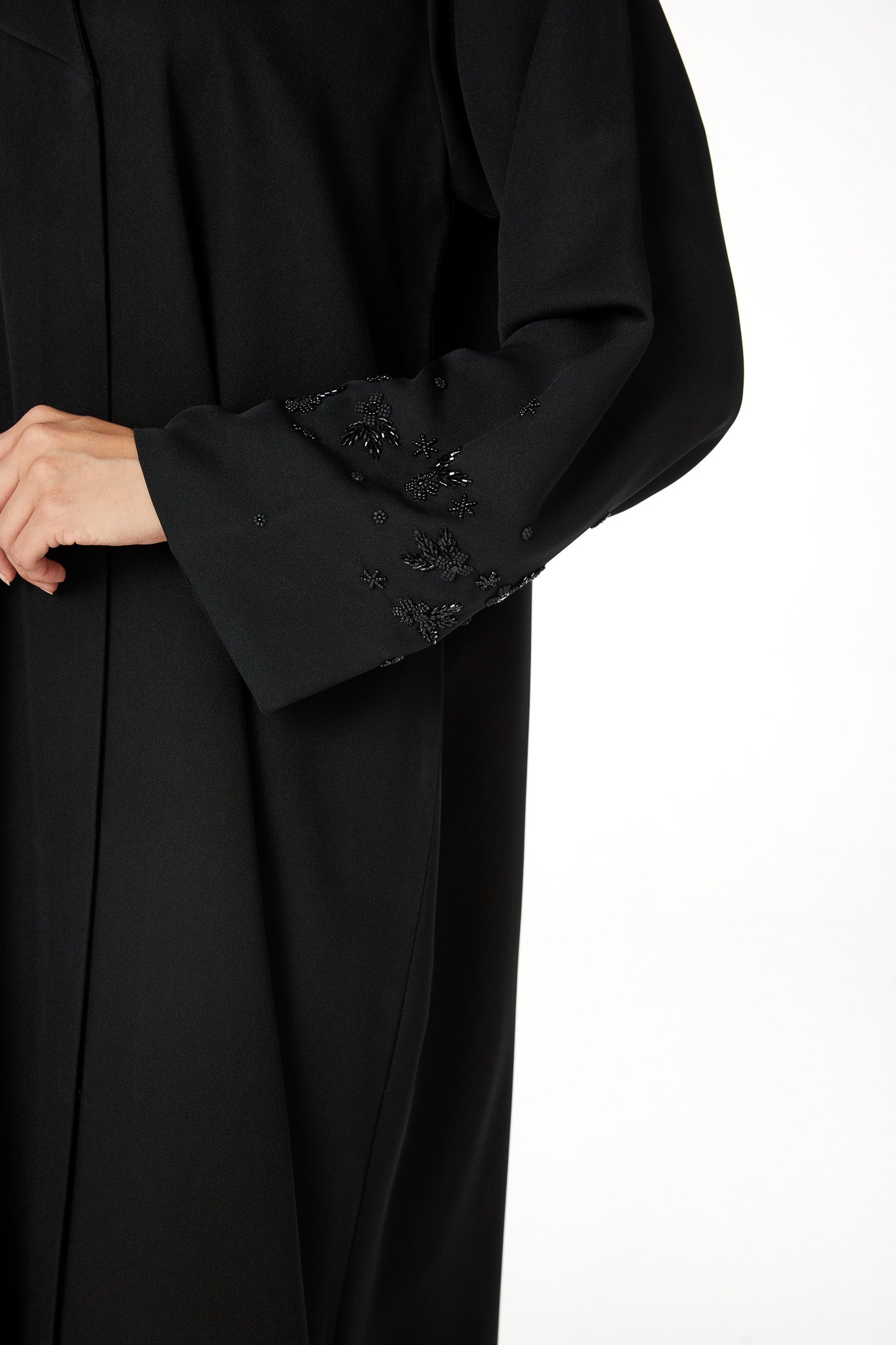 Black Emarati Crepe Abaya with Sleeve Beadwork Detail