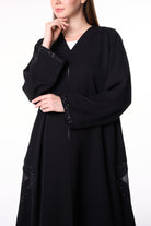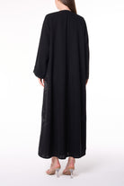 Black Farasha Crepe Abaya with Tatreez Embroidery