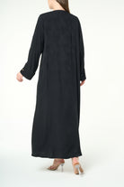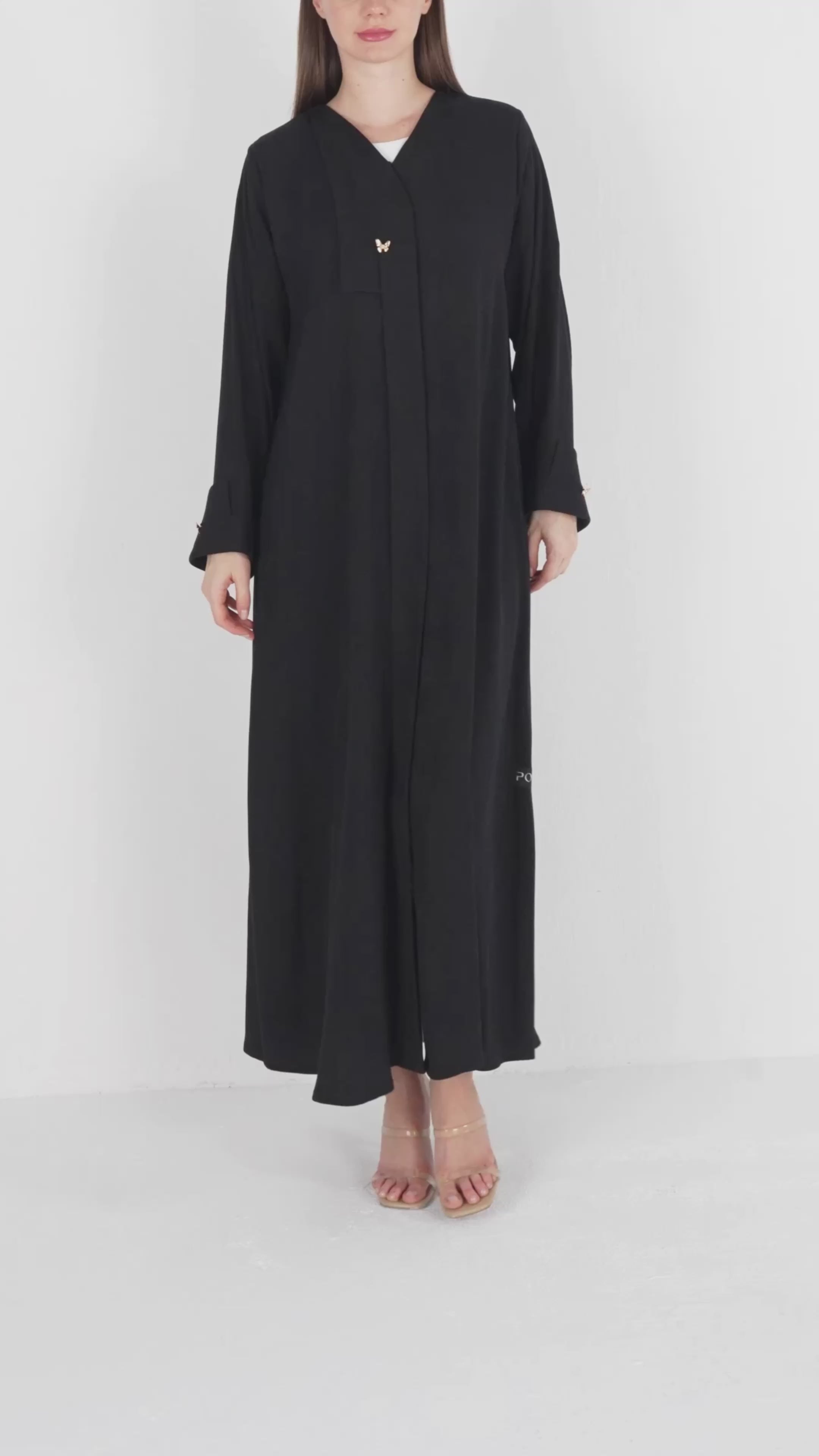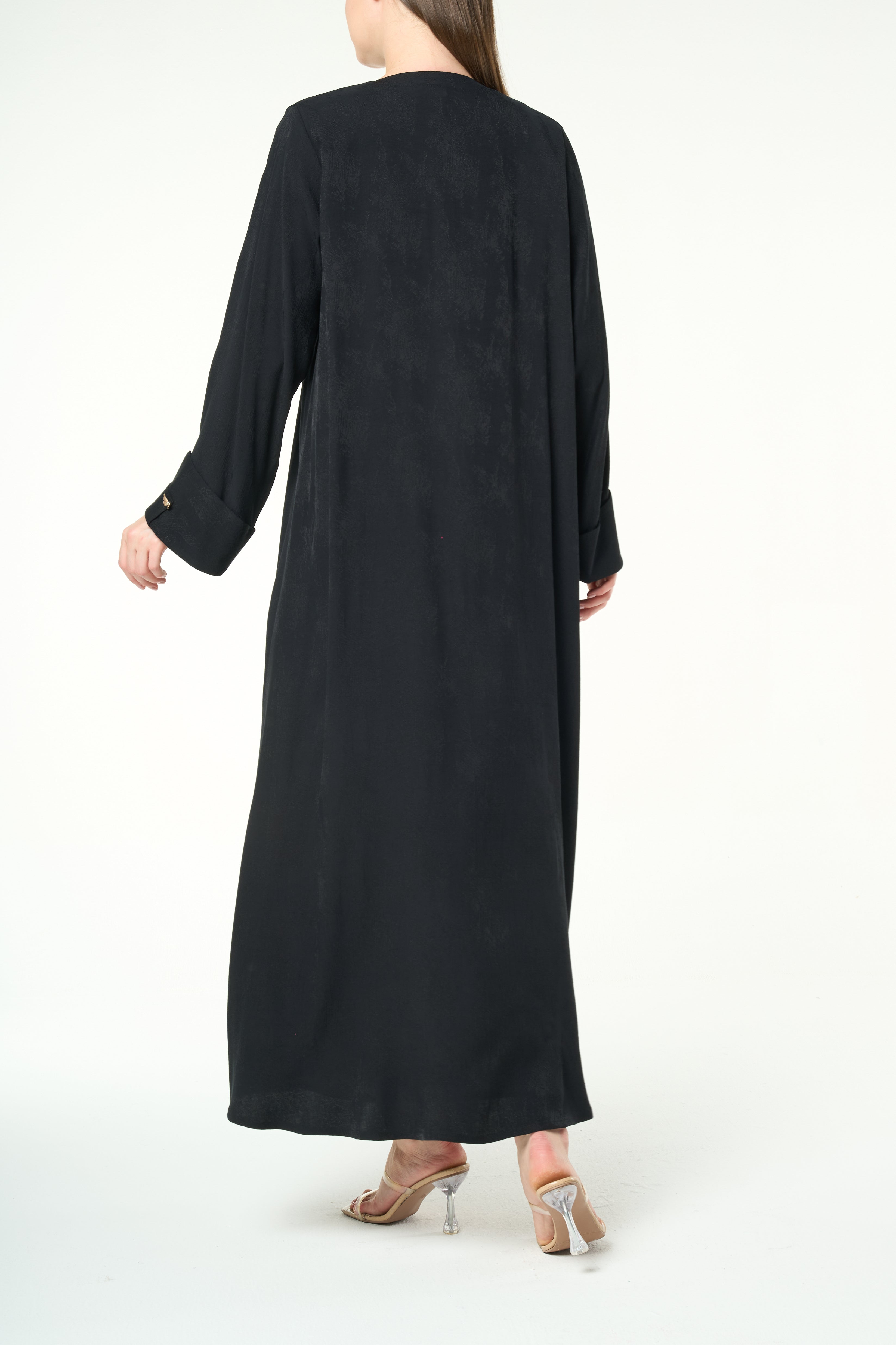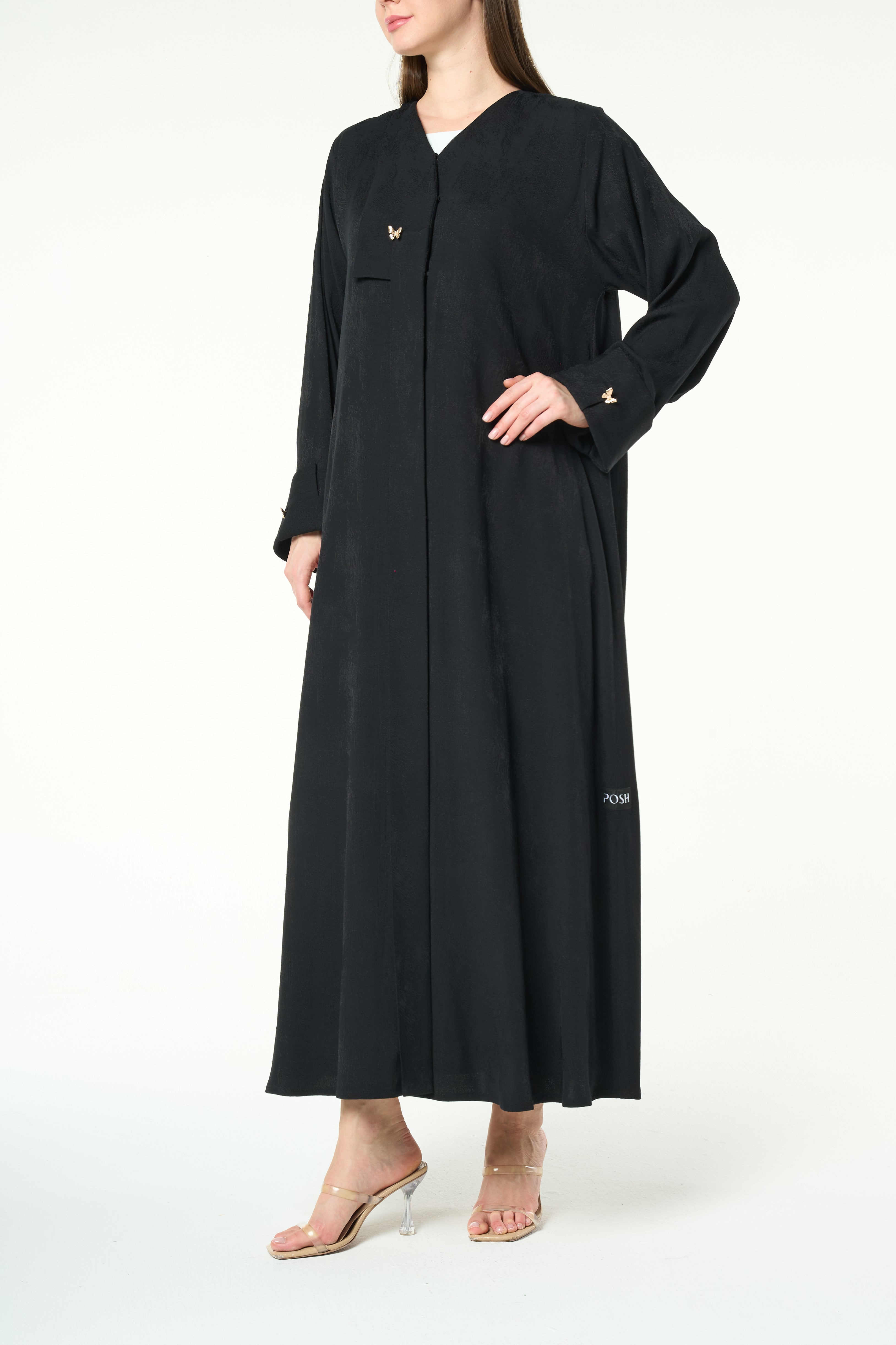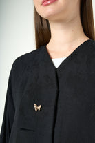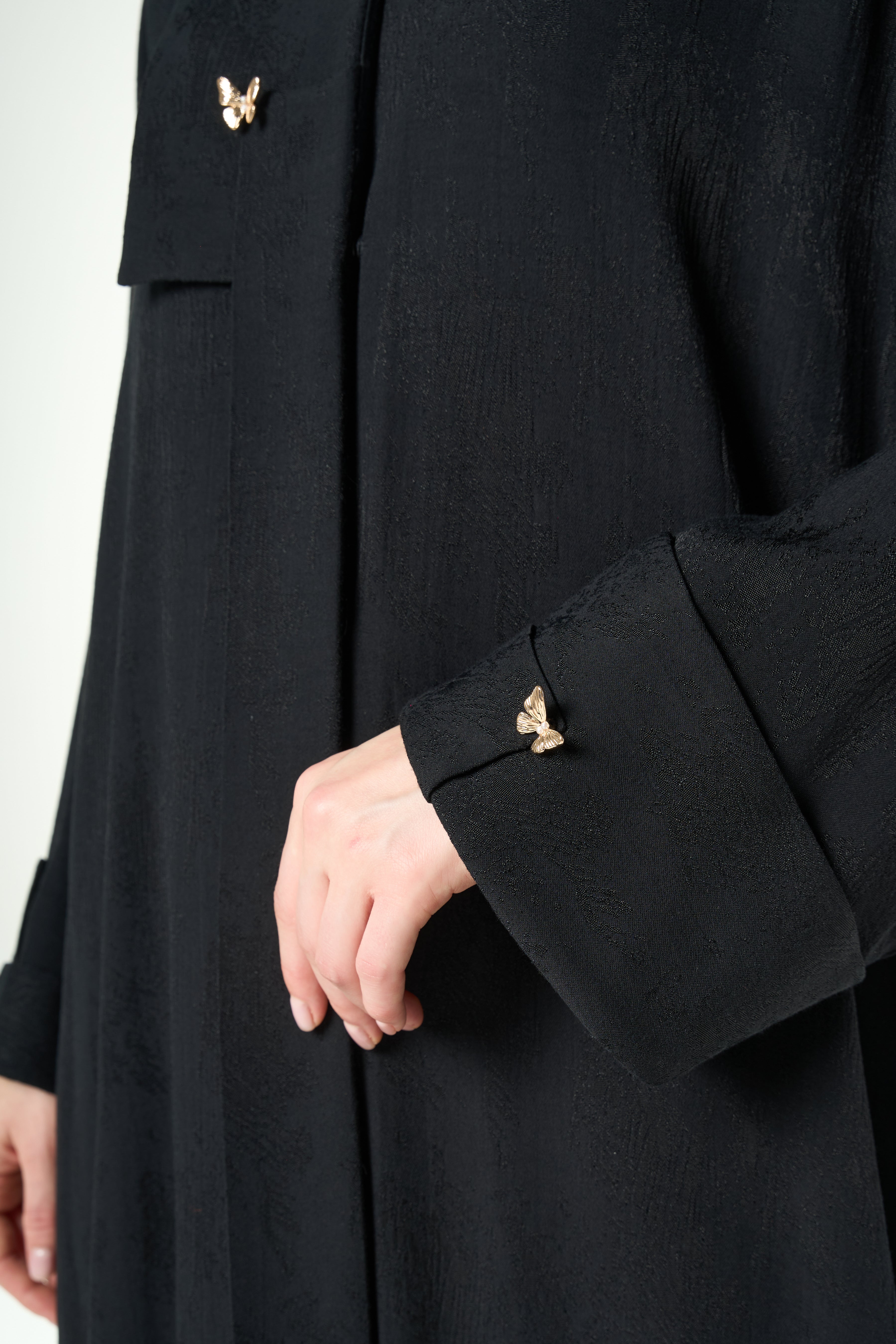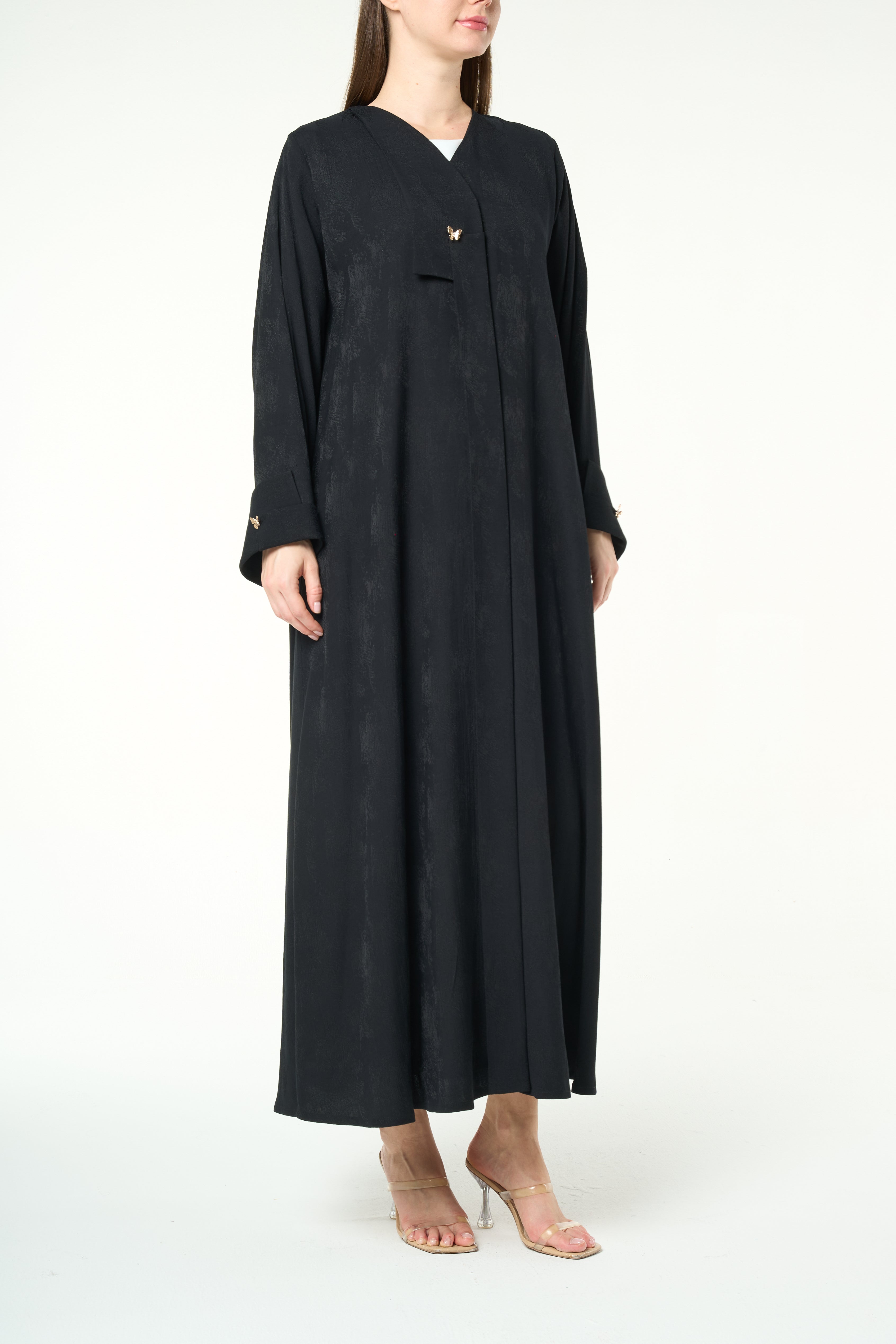 Black Fiona Jacquard Abaya with Butterfly Accent Buttons