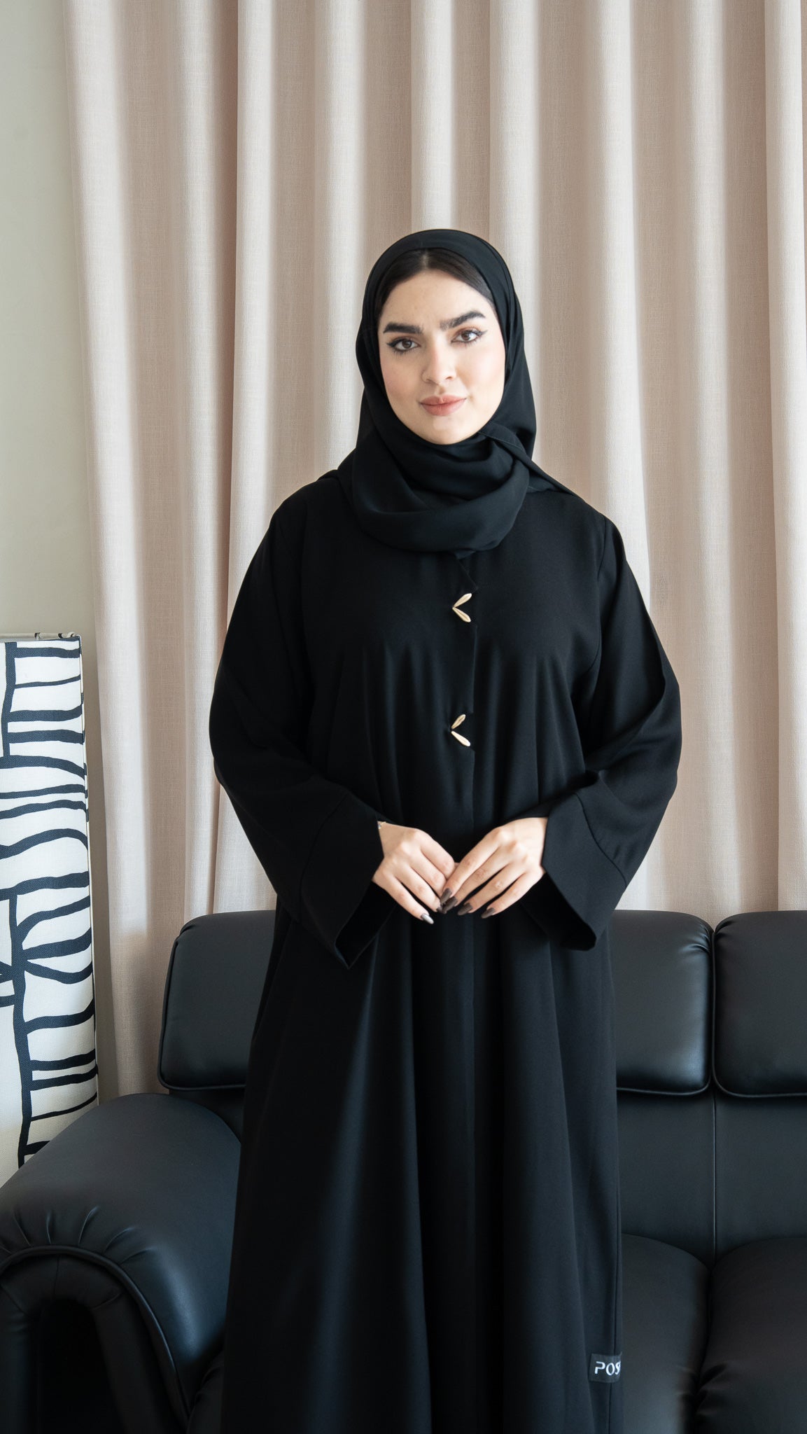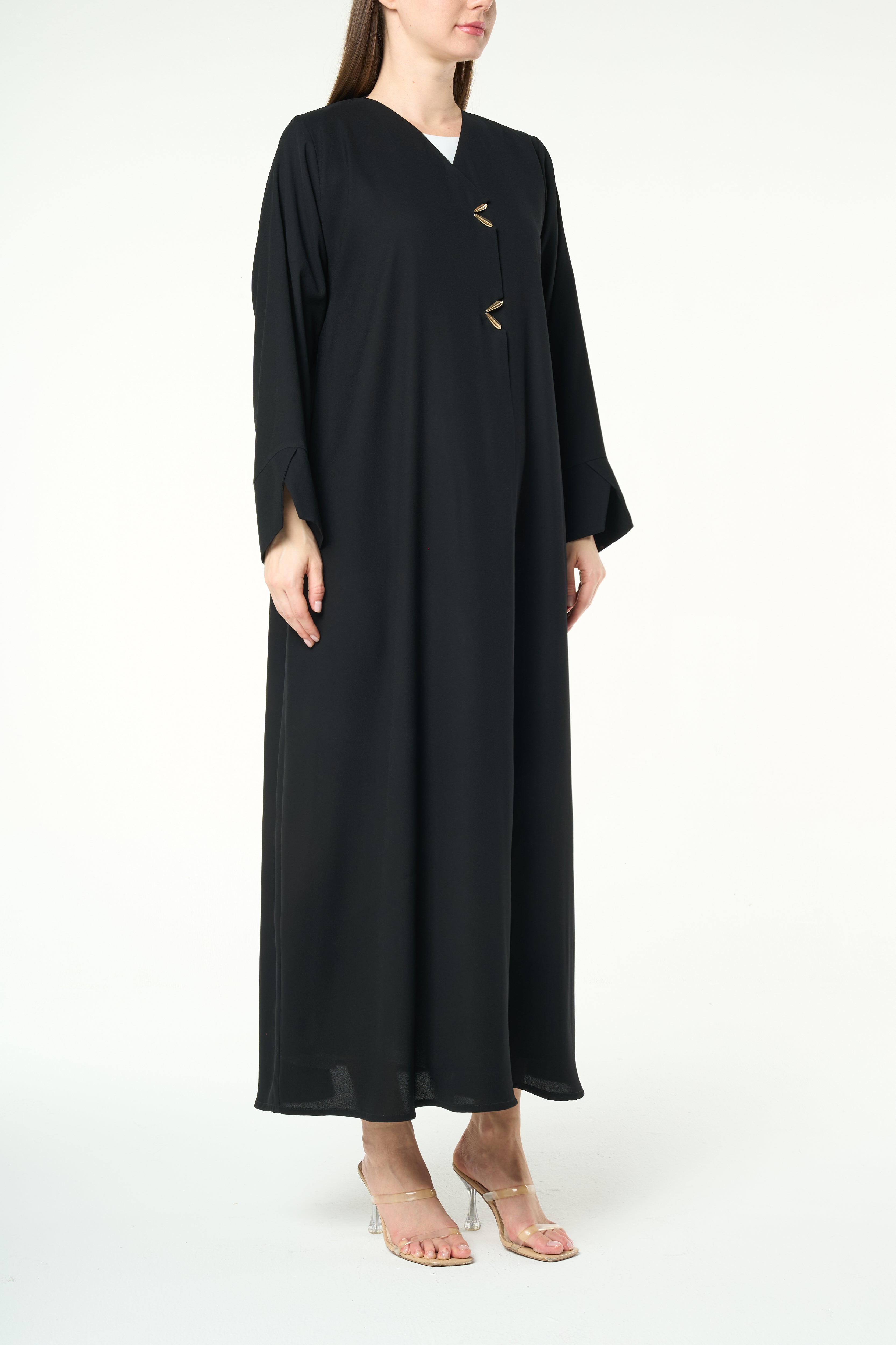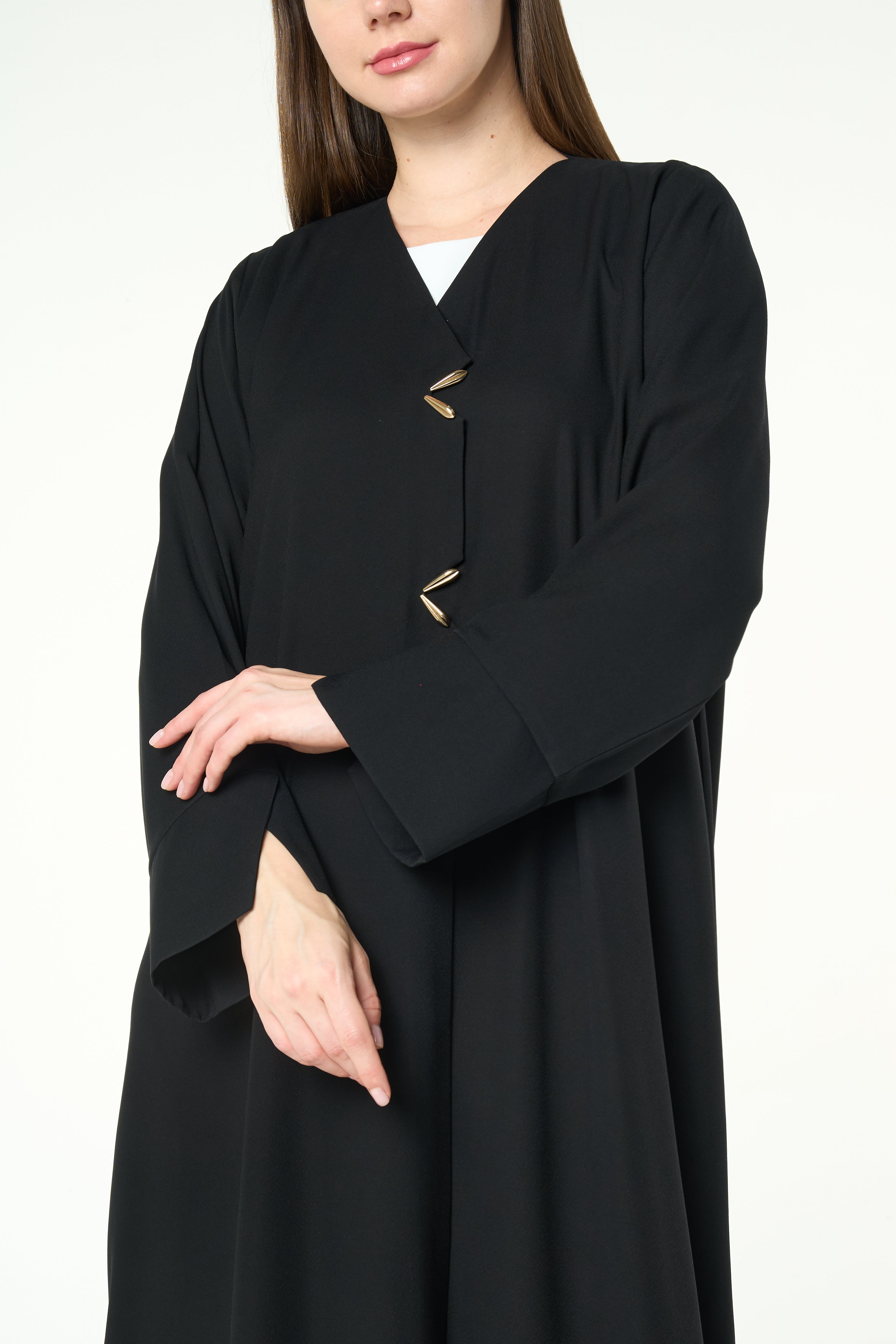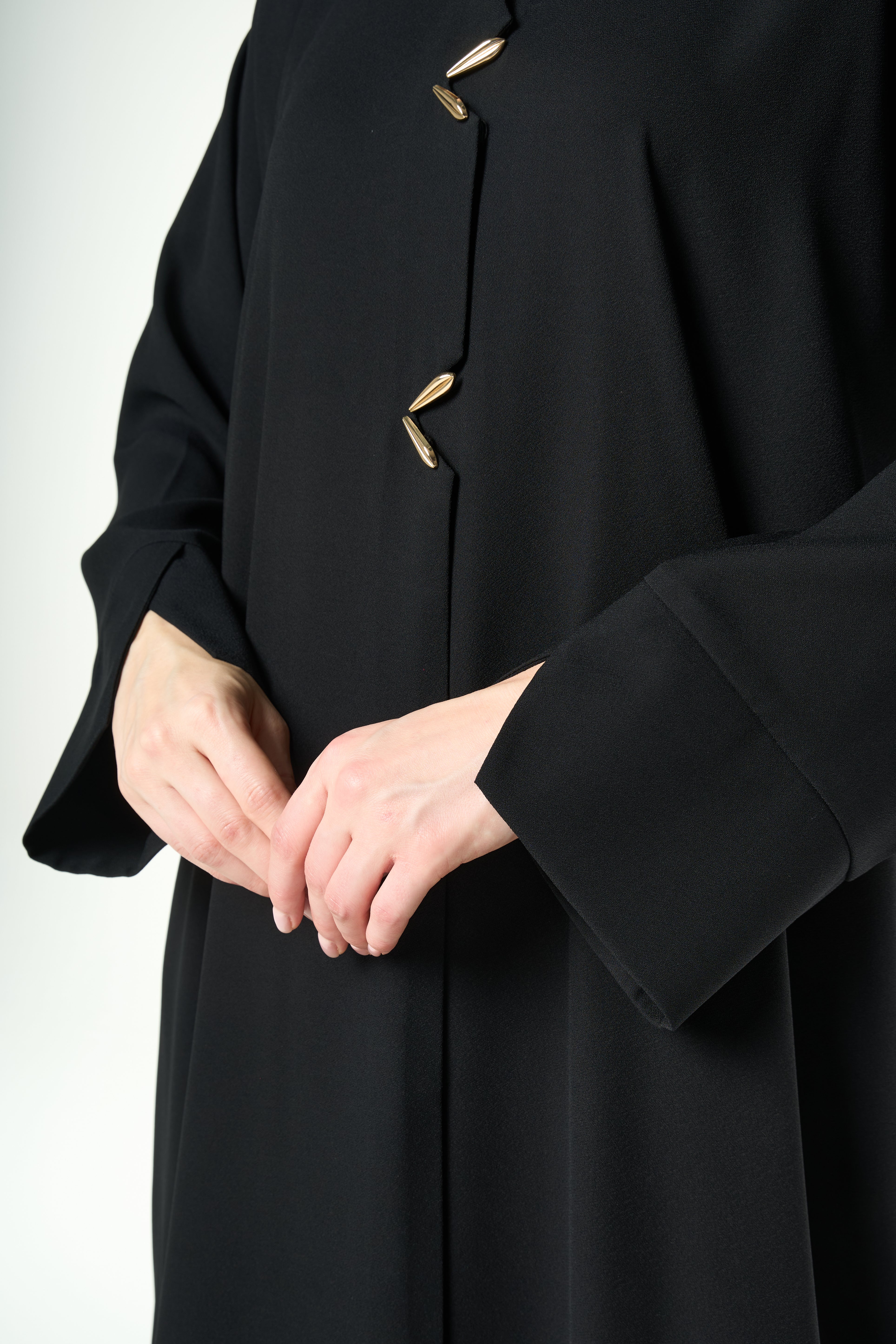 Black Imperial Crepe Abaya with Gold Accent Buttons