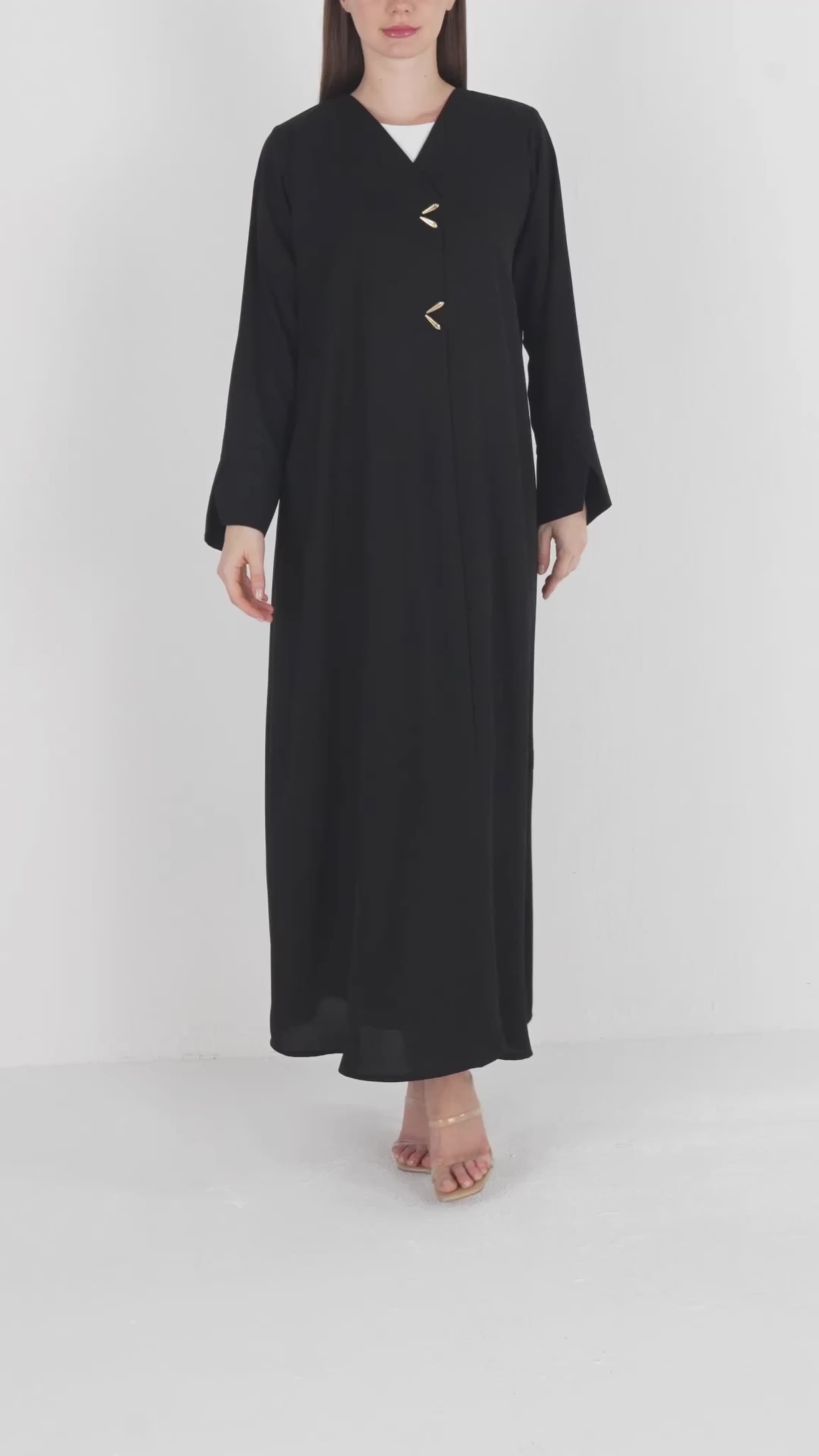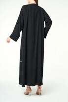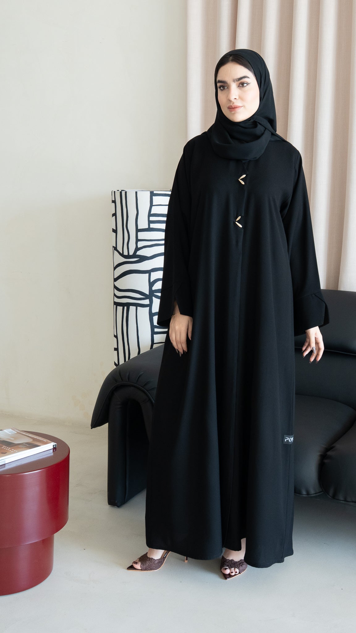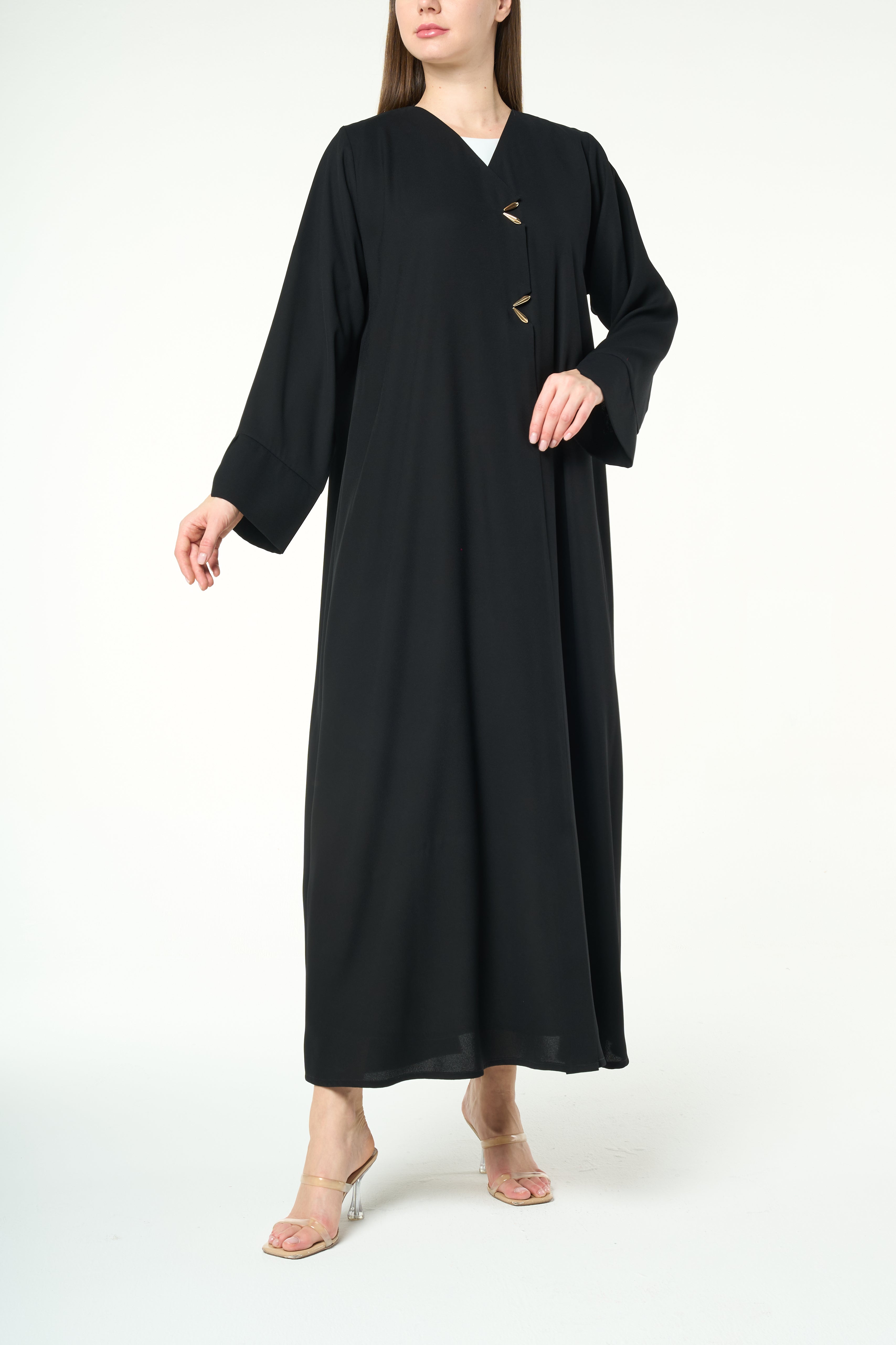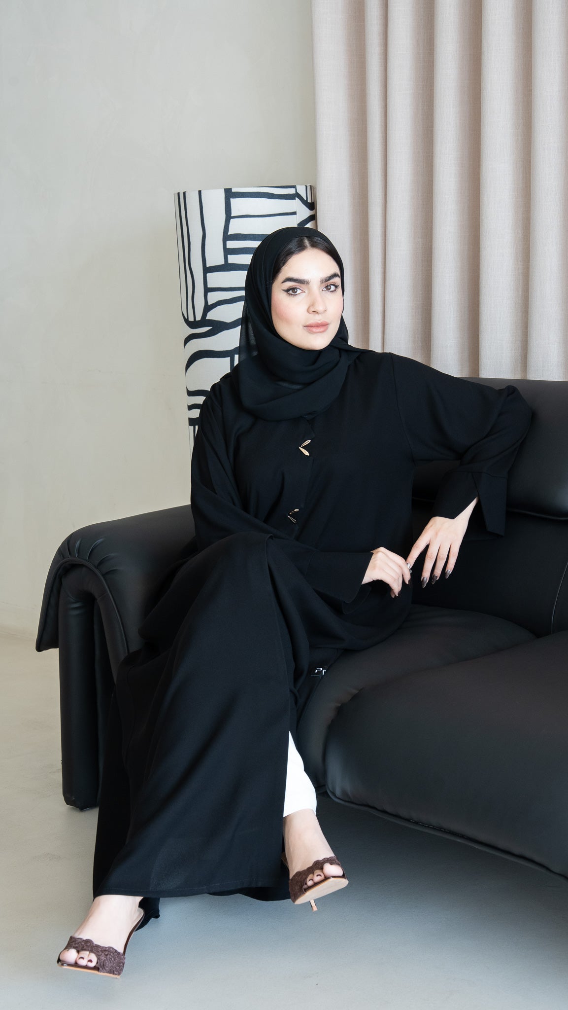 Black Imperial Crepe Abaya with Gold Accent Buttons