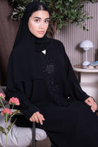 Black Jaime Crepe Abaya with Beadwork Accents