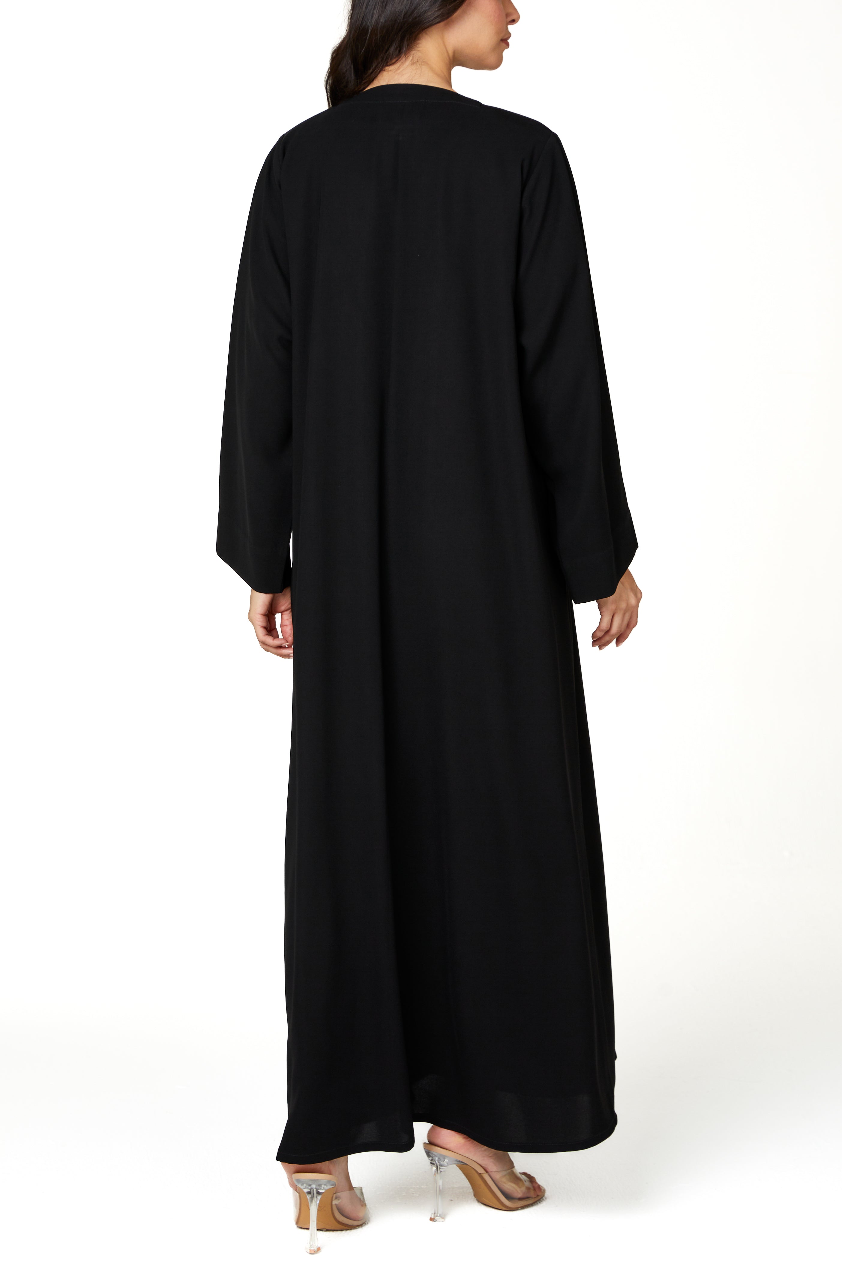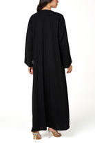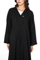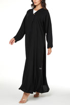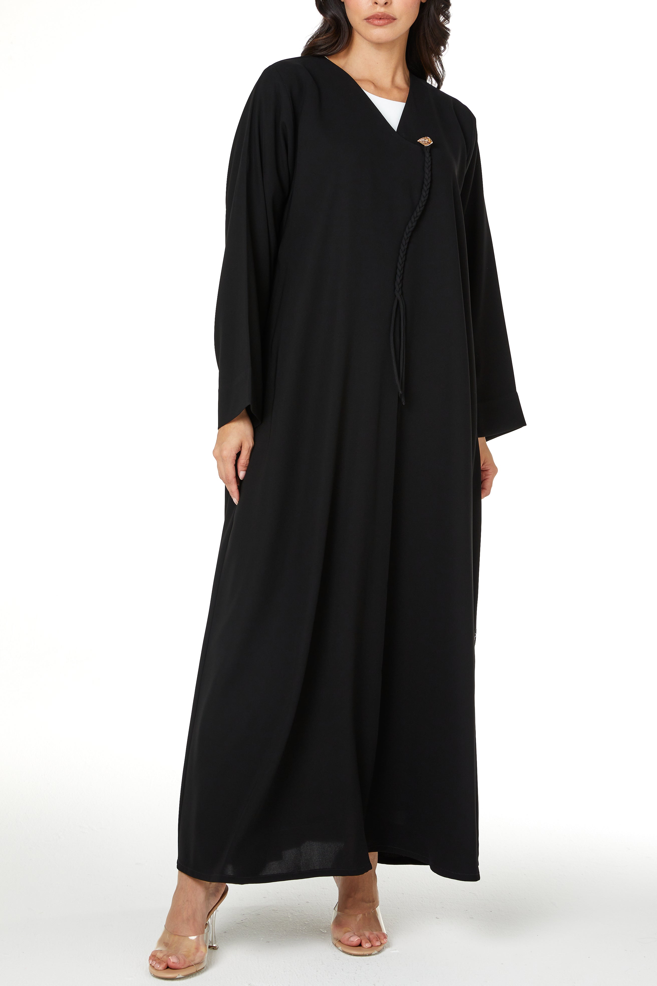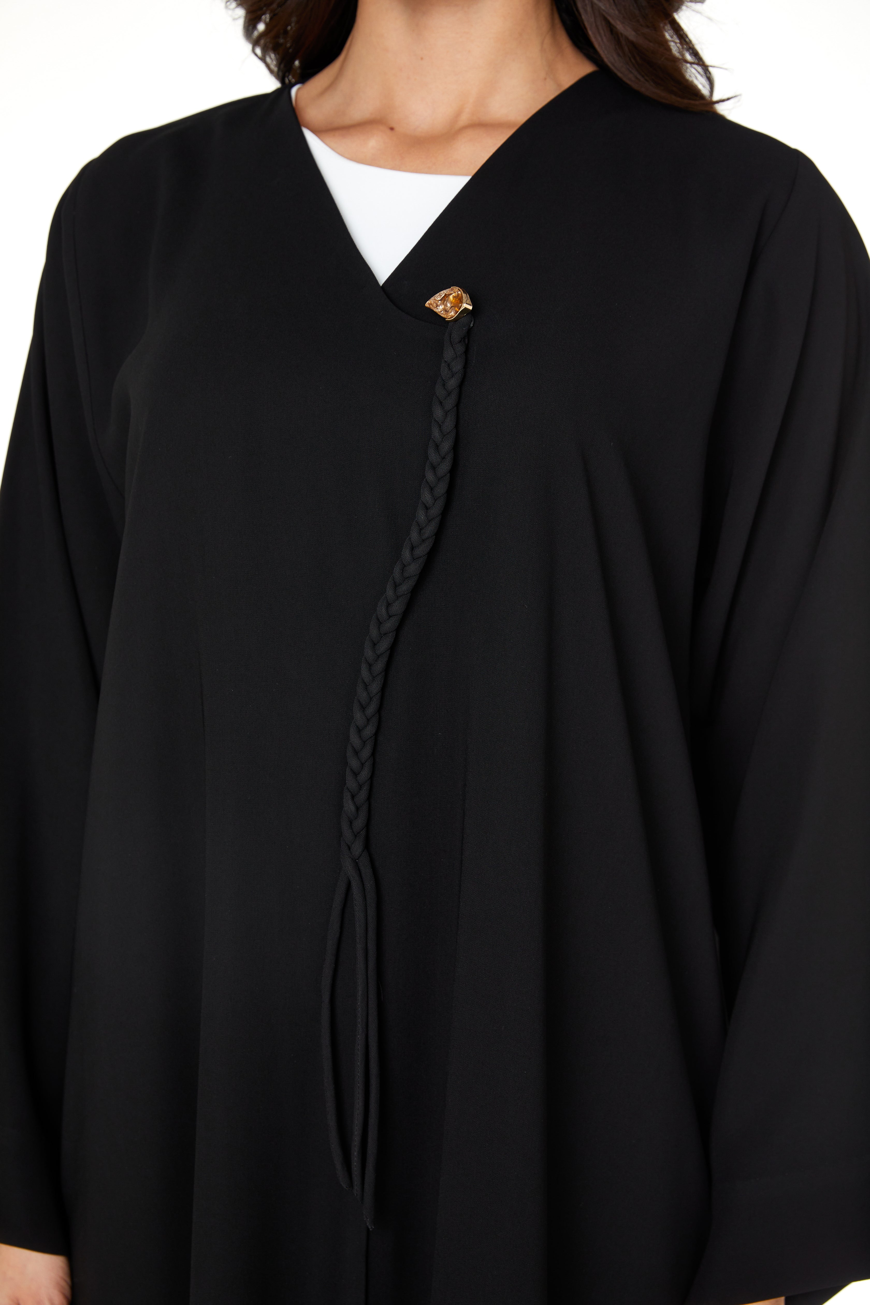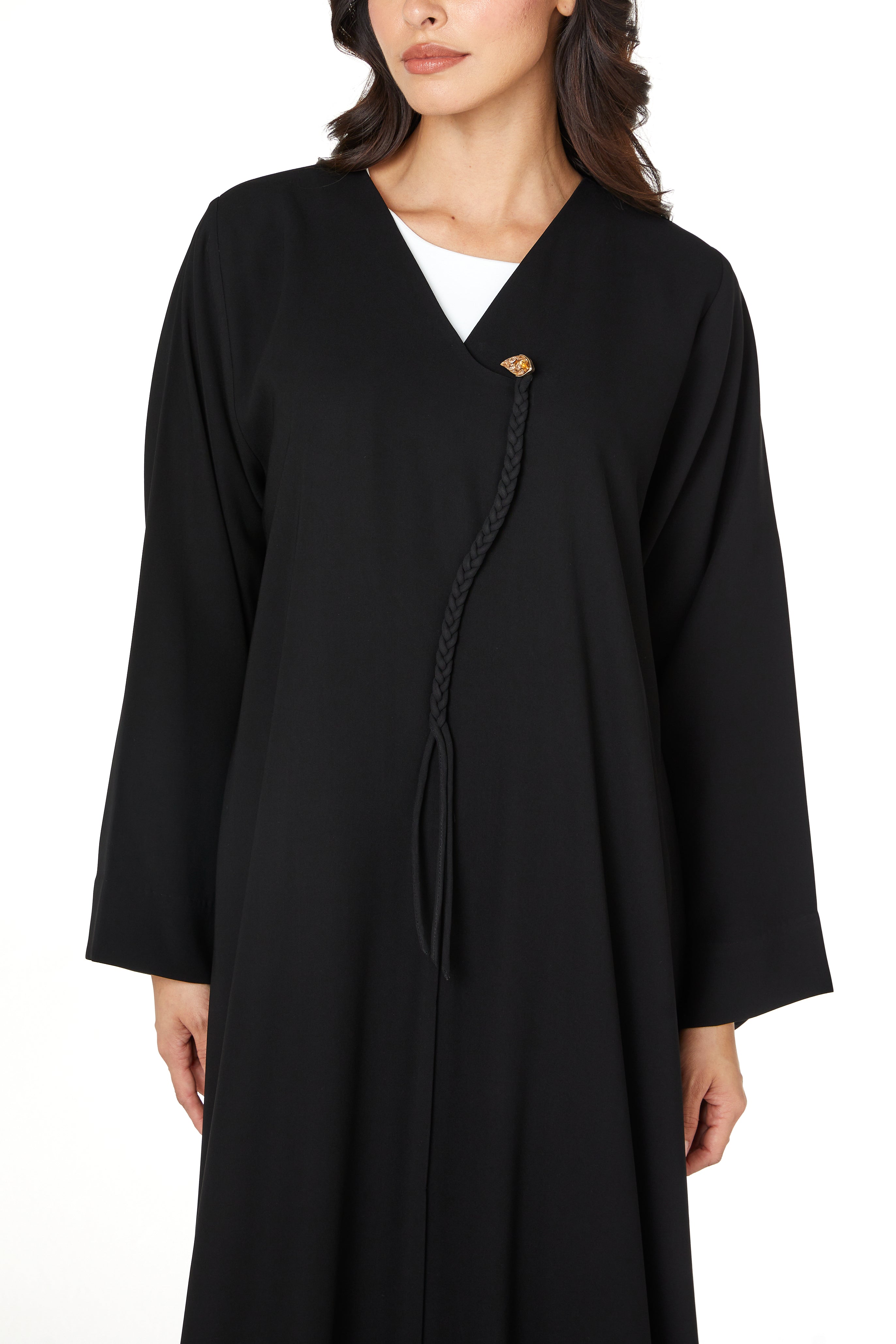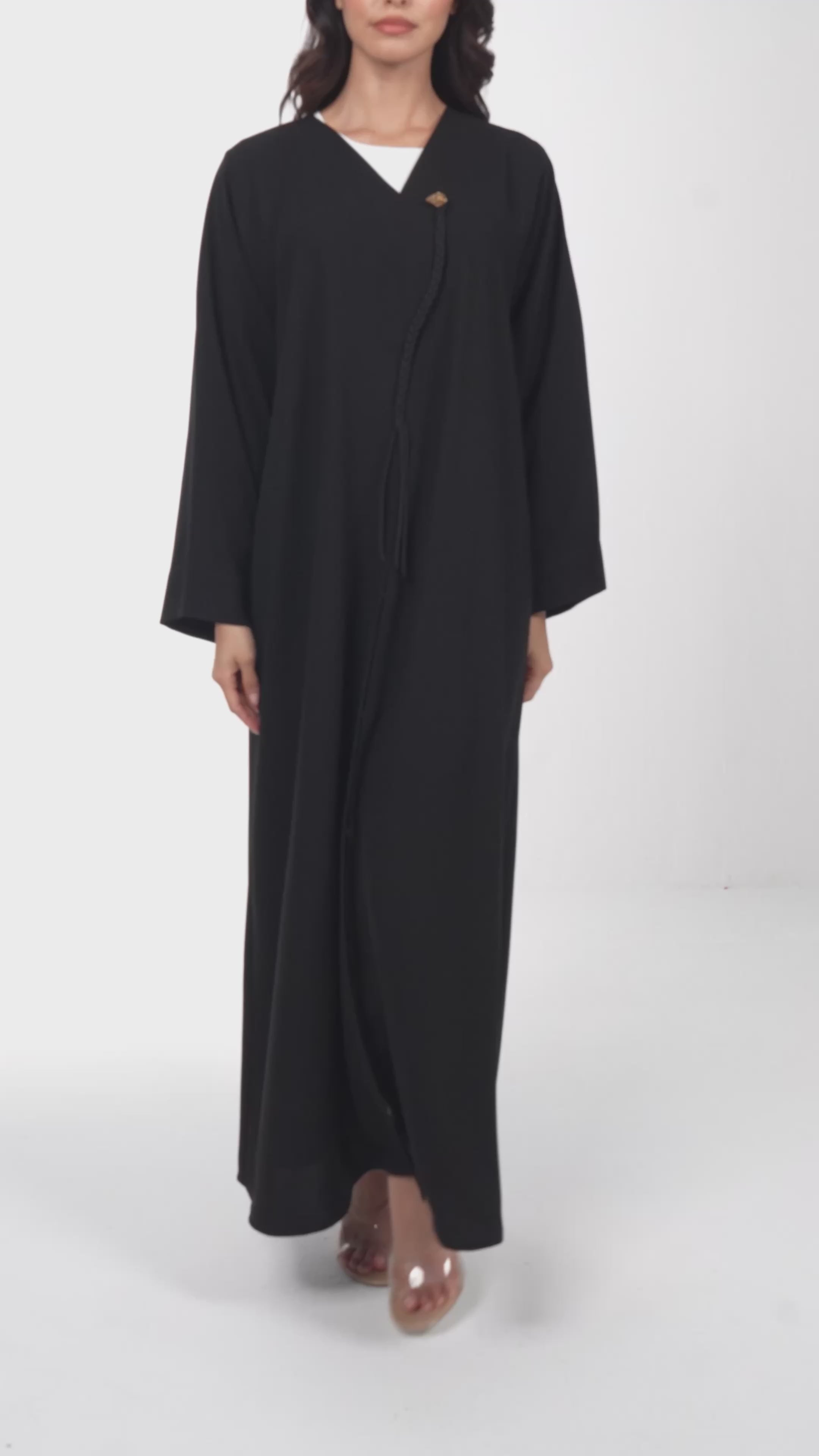 Black Jaime Crepe Abaya with Braided Dori and Button Accent