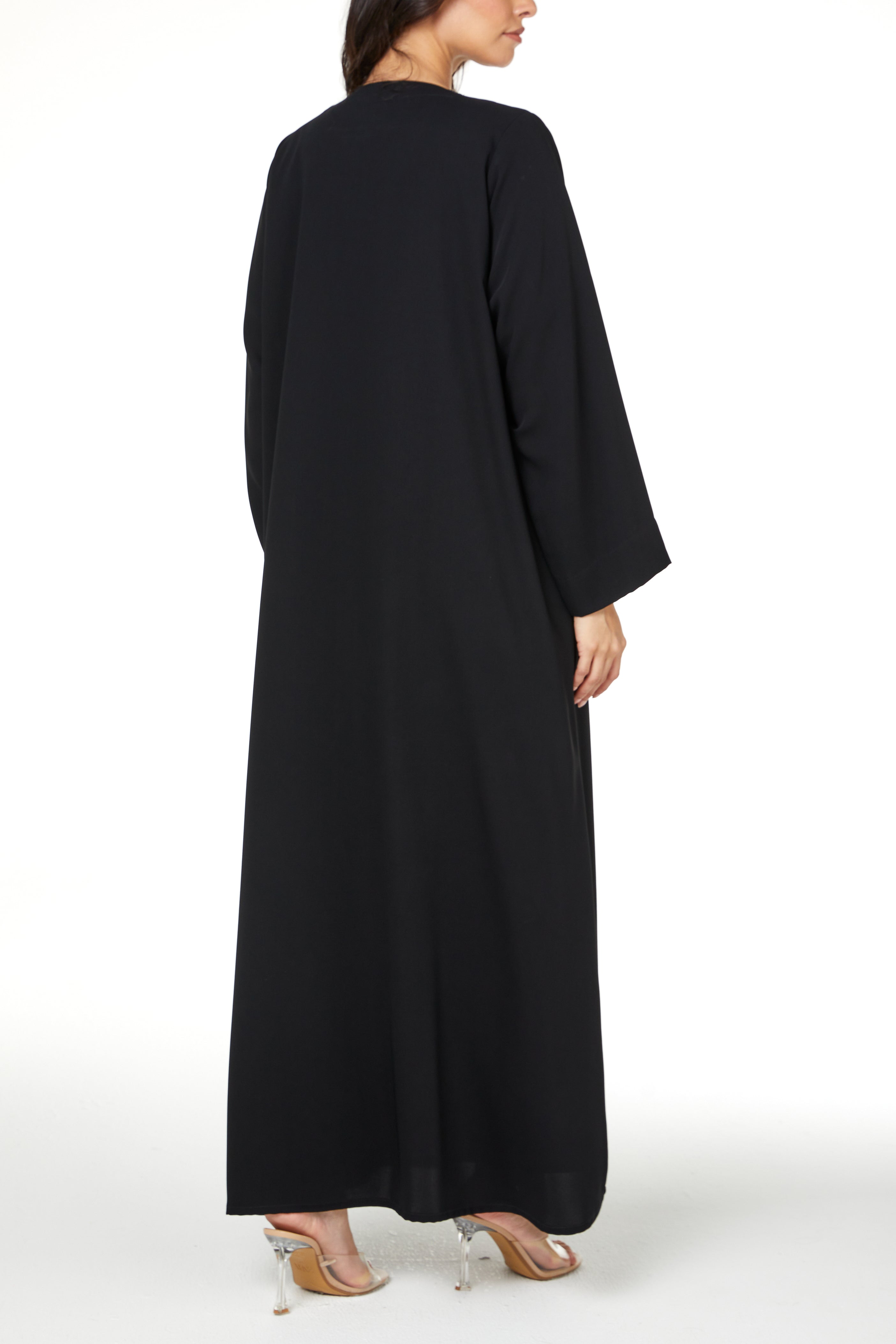 Black Layan Crepe Abaya with Front Beadwork Detail