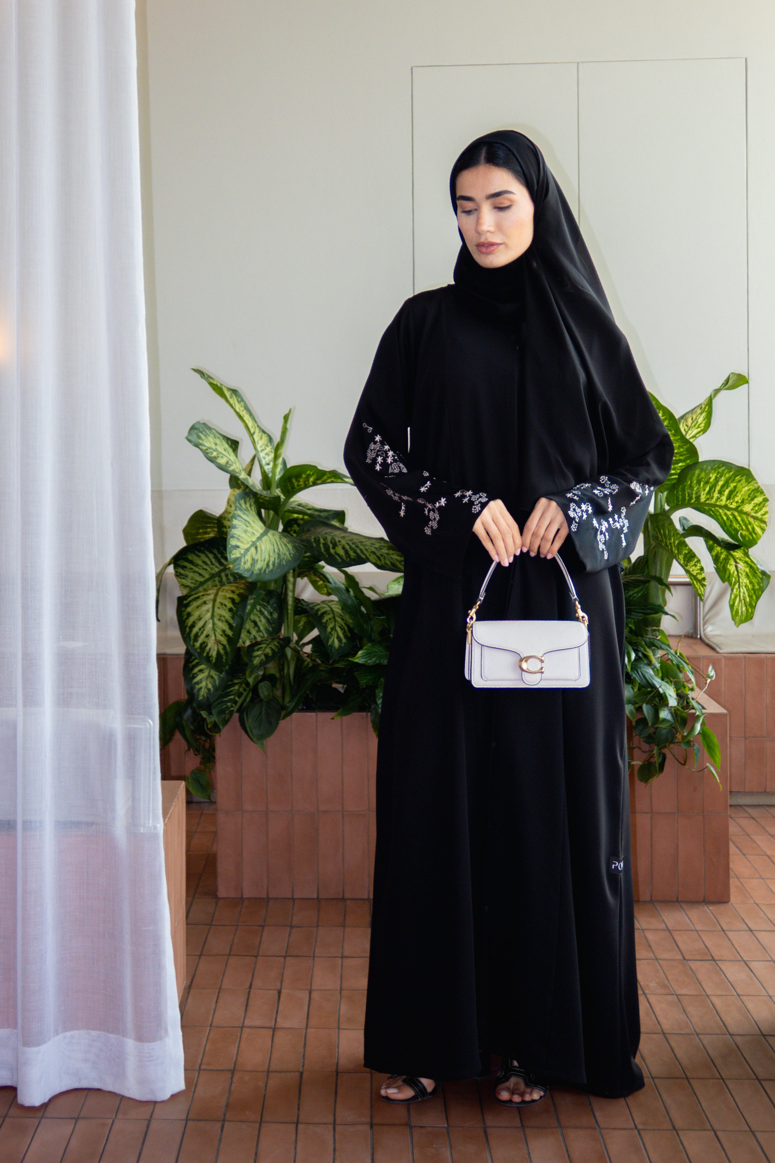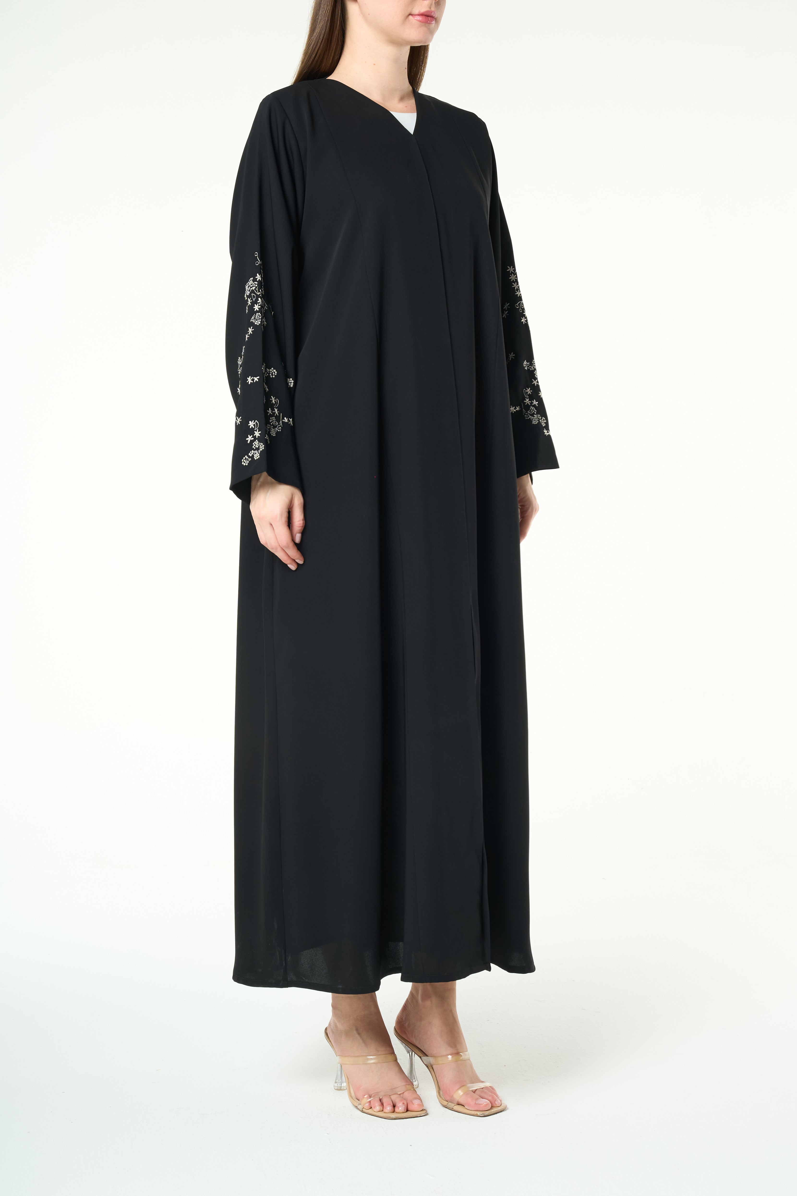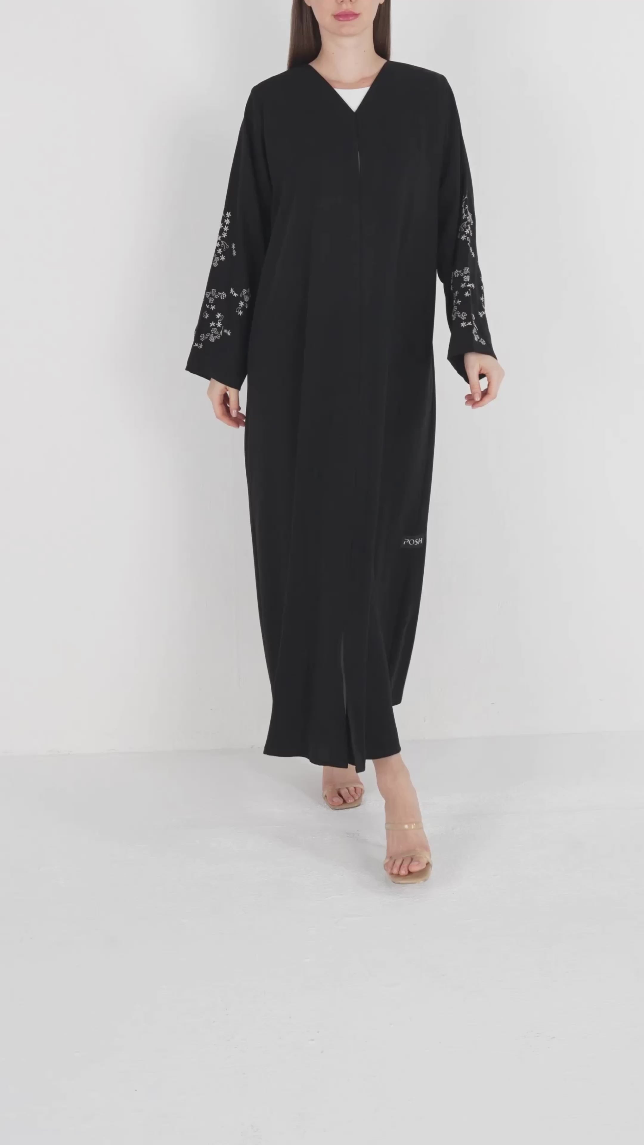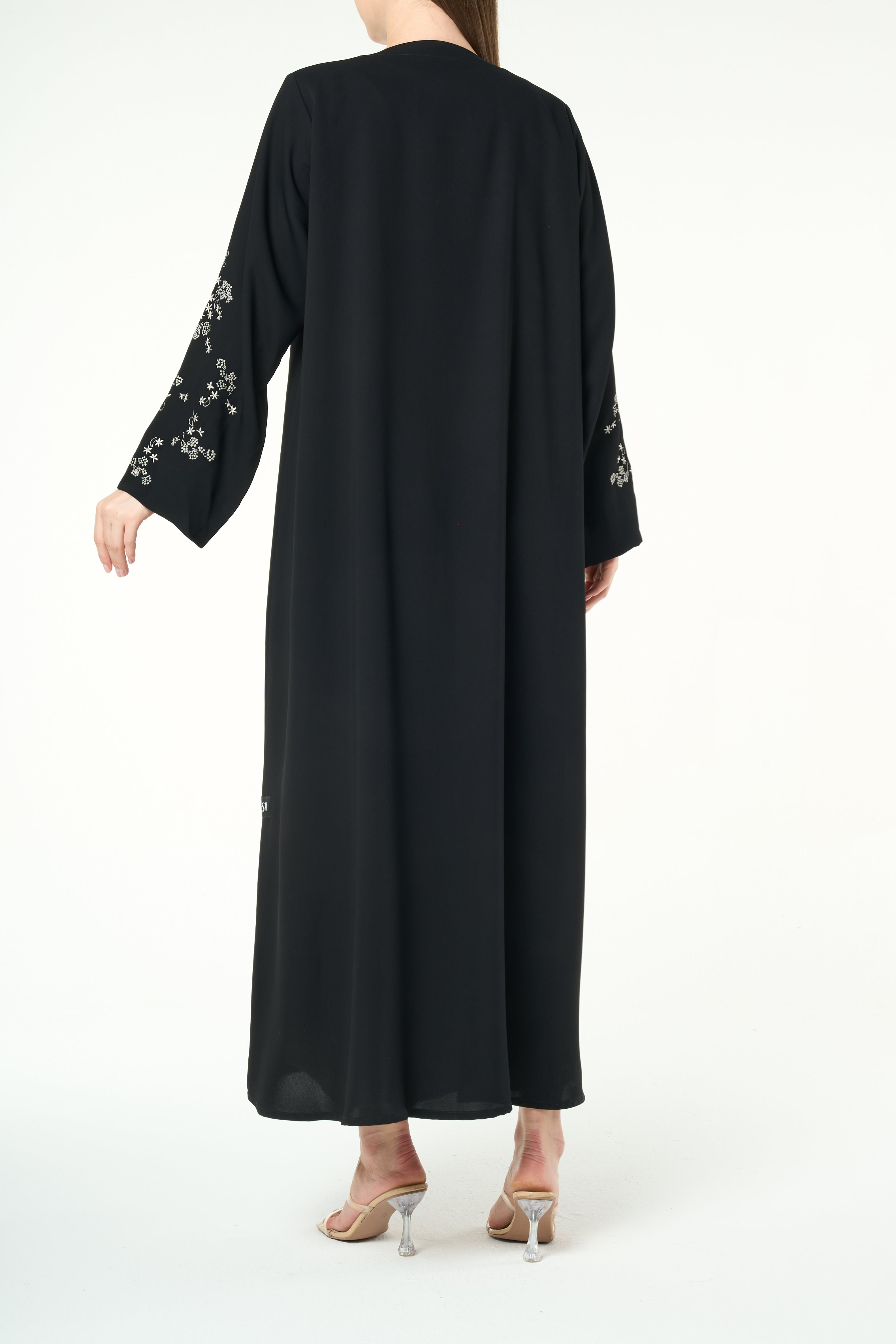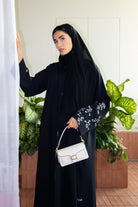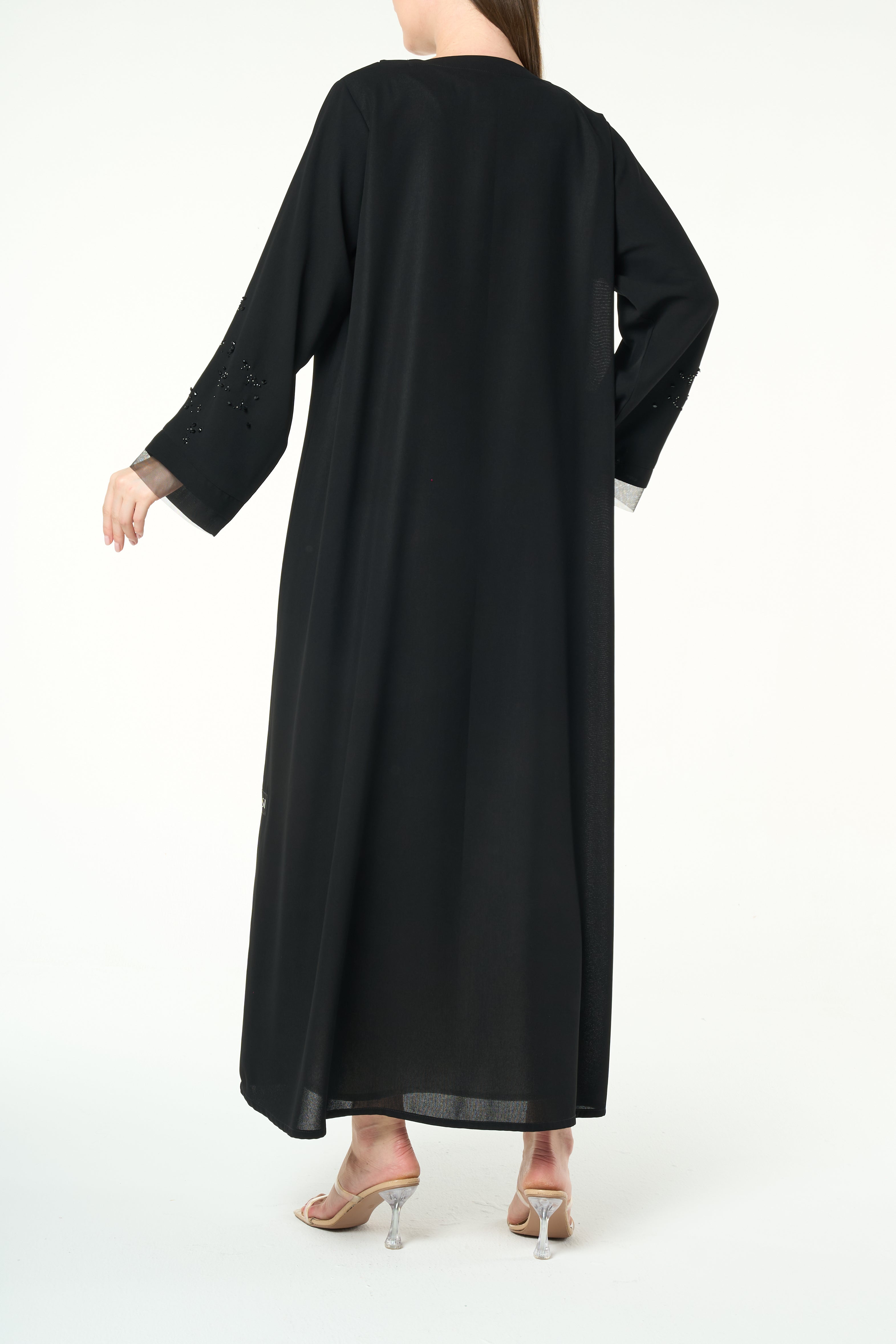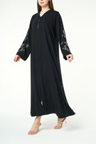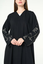Black Layan Crepe Abaya with Tonal Sleeve Embroidery