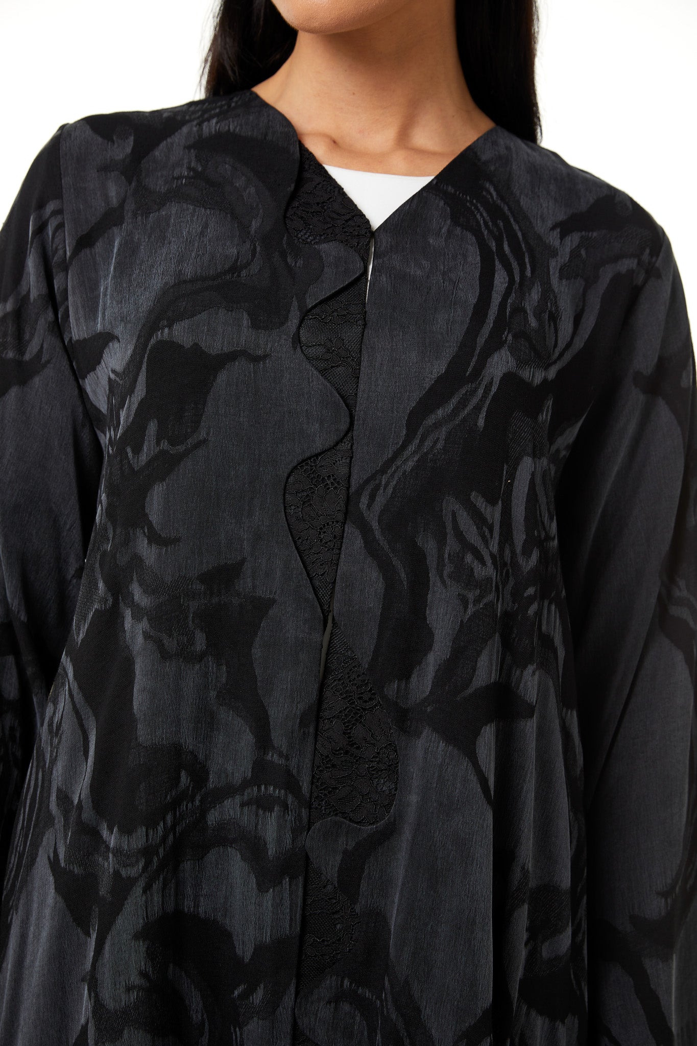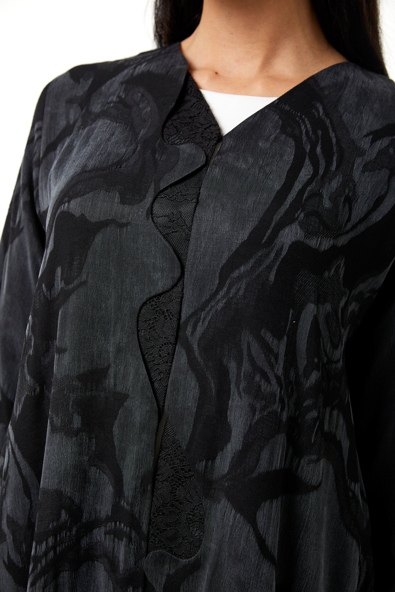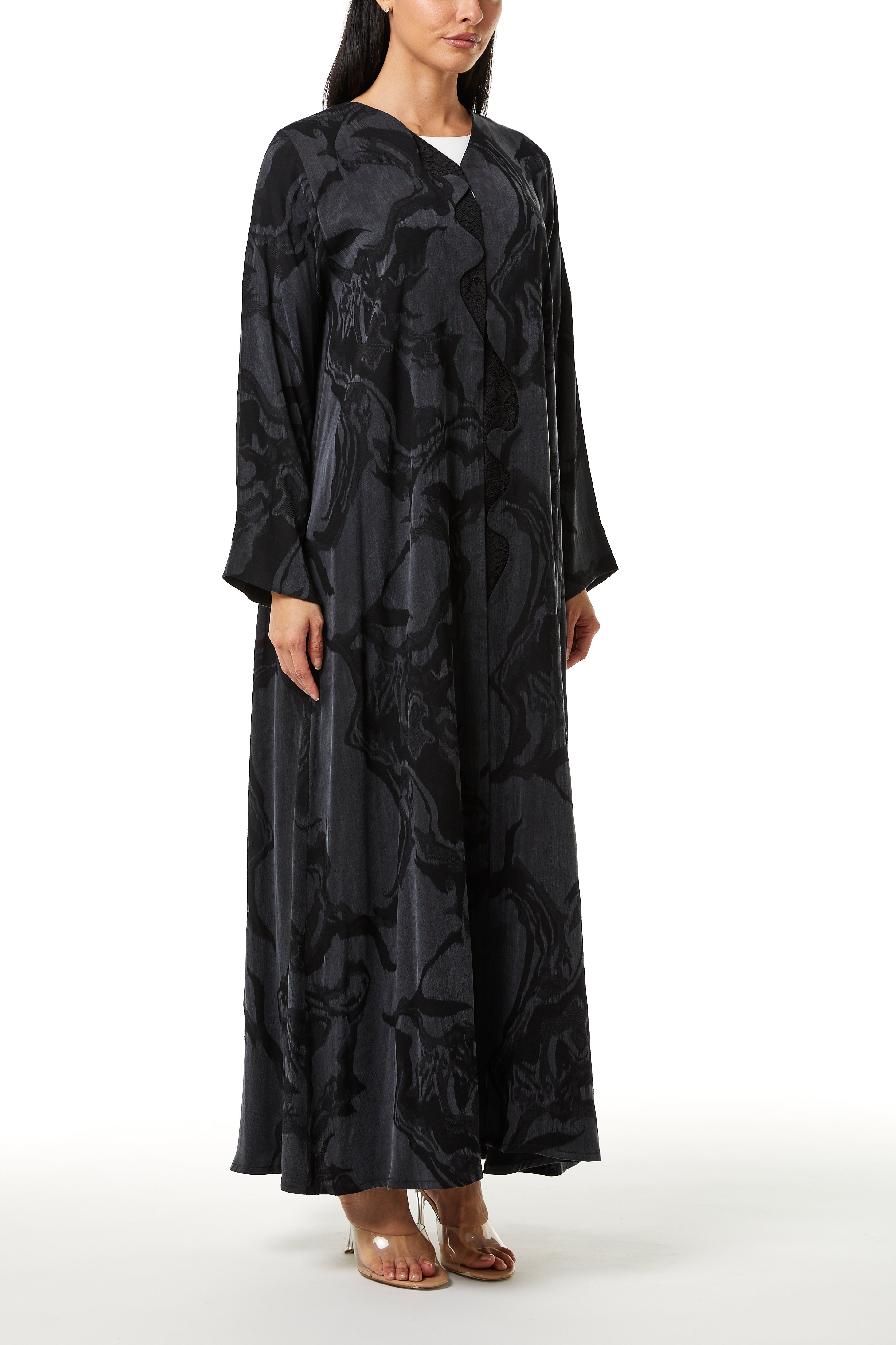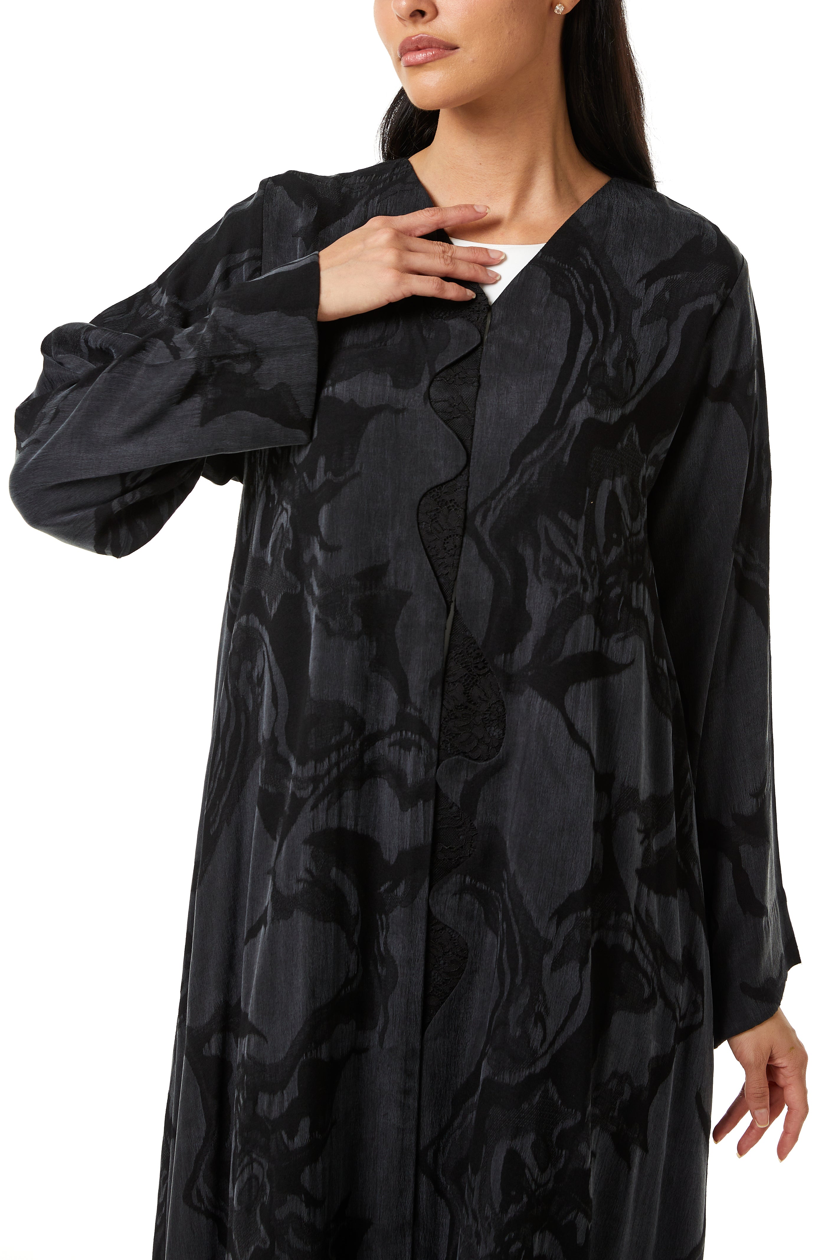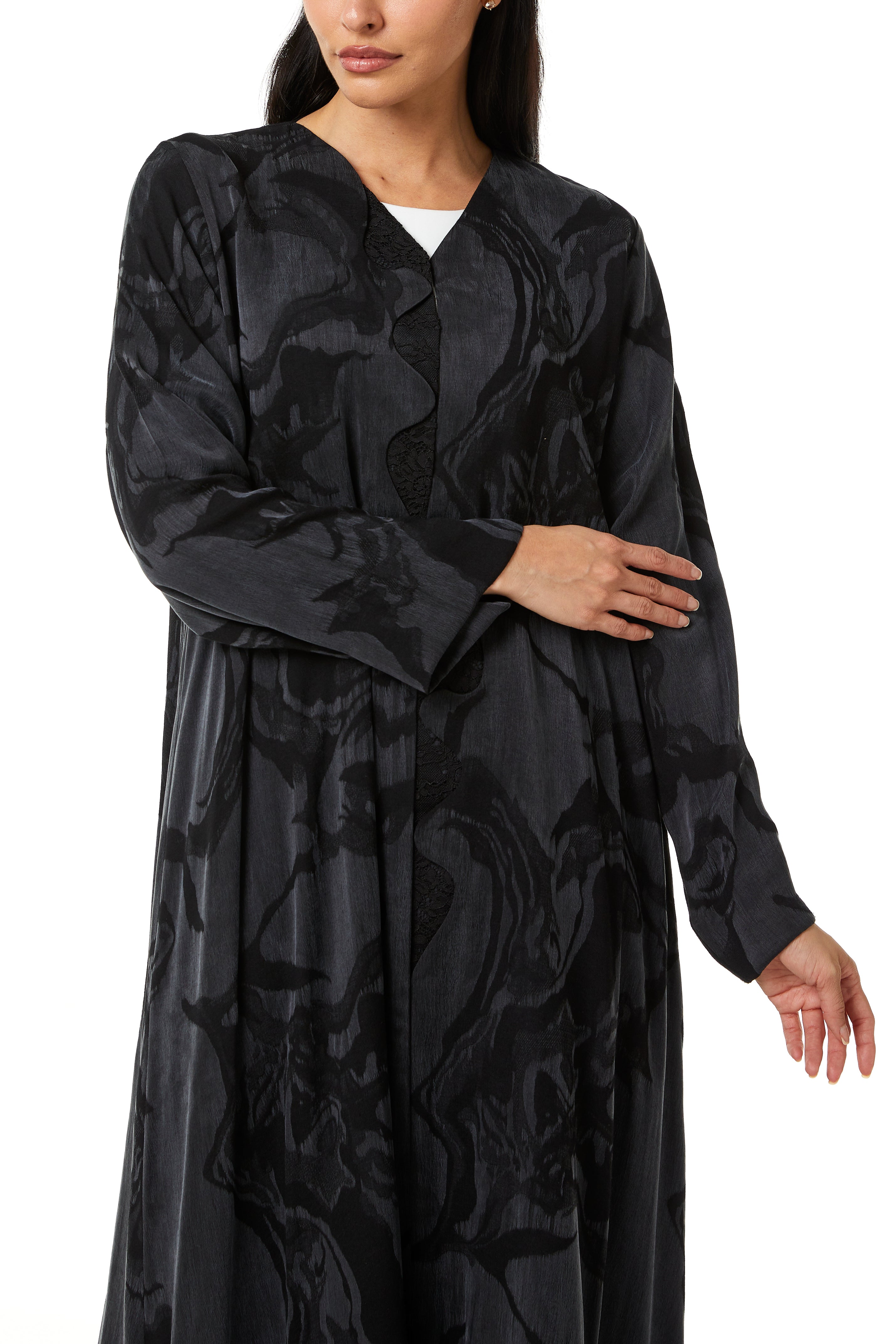 This abaya is designed with a modern approach while maintaining comfort and modesty. The silhouette remains balanced and well-proportioned, allowing ease of movement without losing structure. The overall appearance is clean and contemporary, fitting easily into a premium wardrobe.