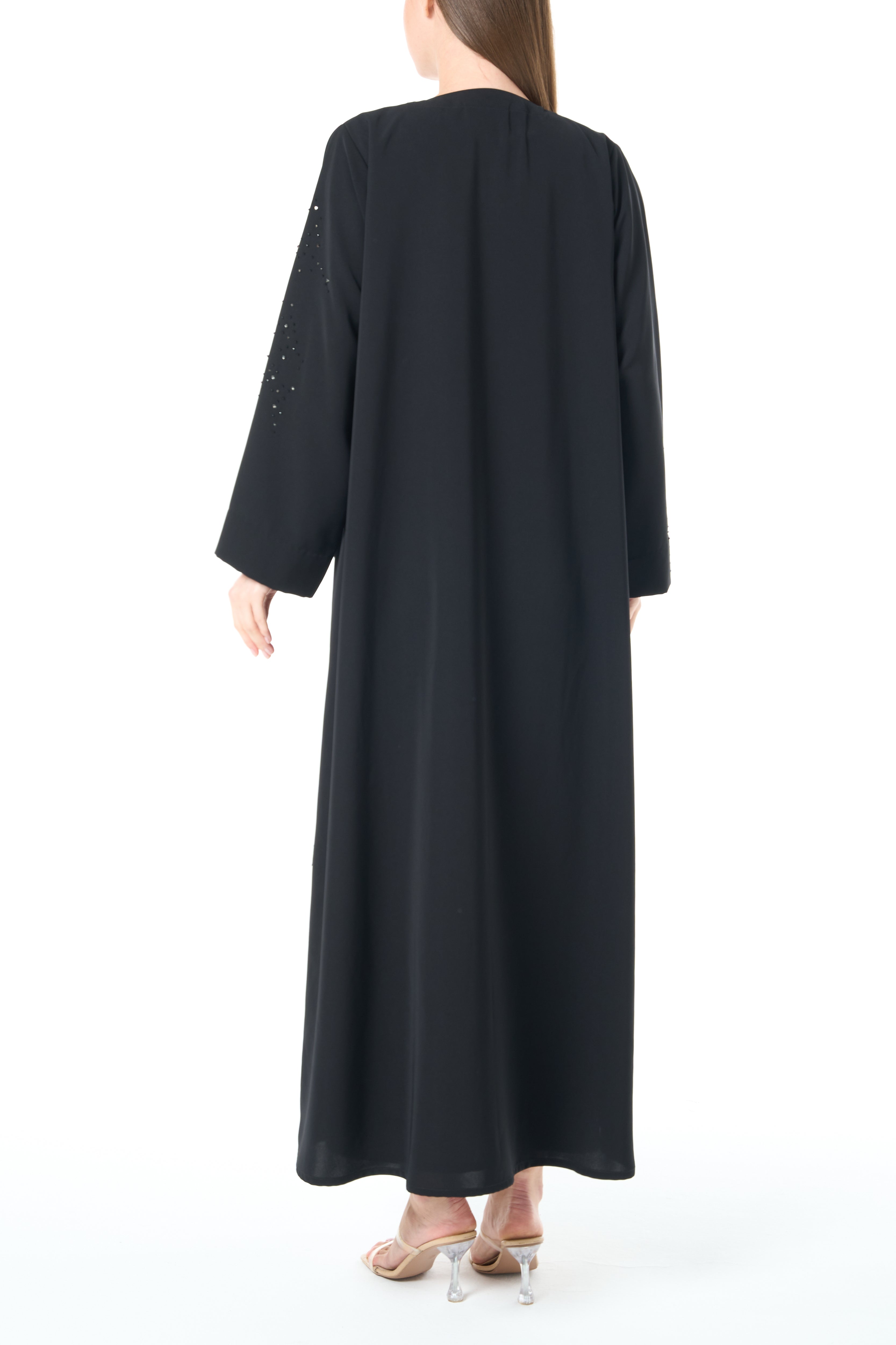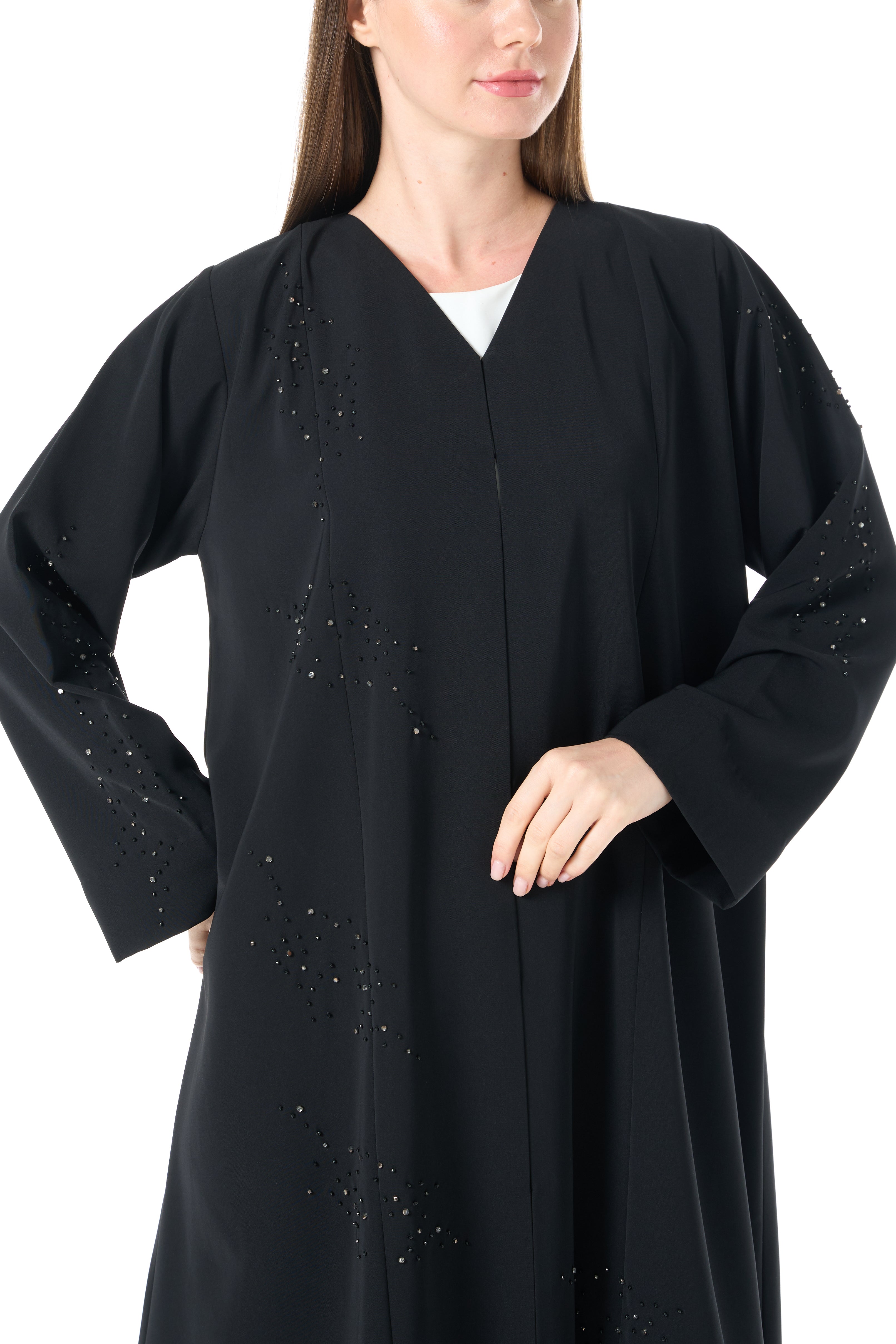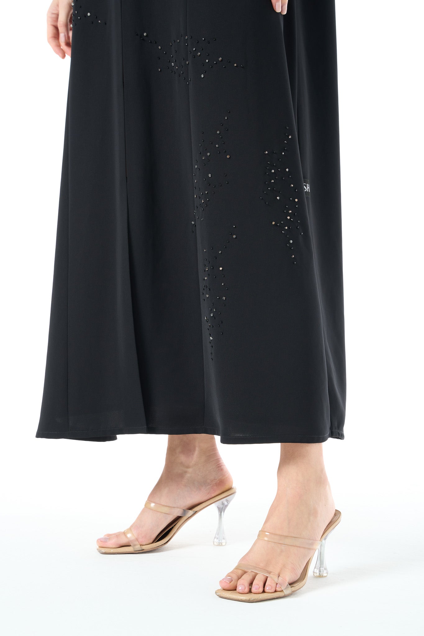 Black Lio Crepe Abaya with Delicate Bead Embellishment