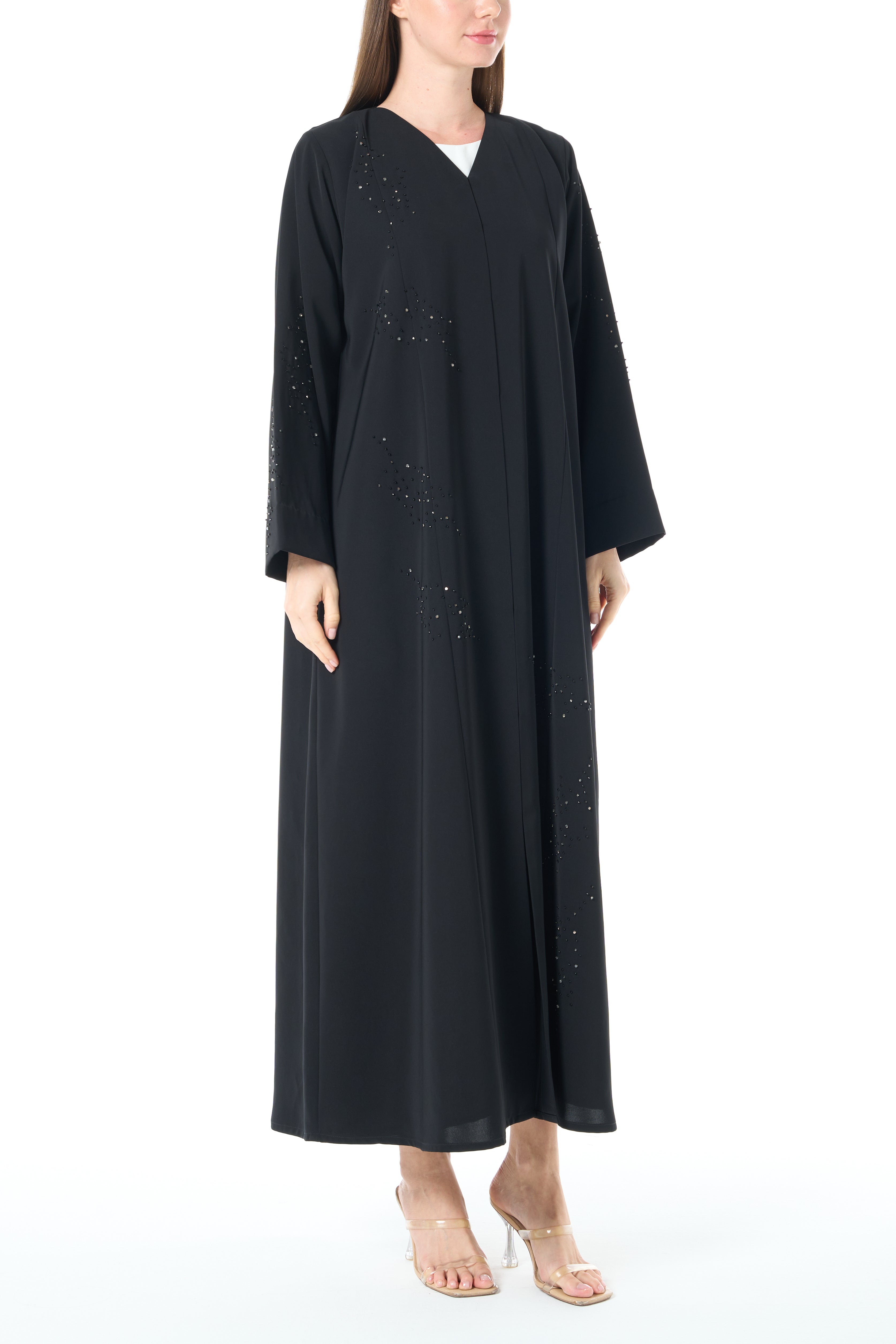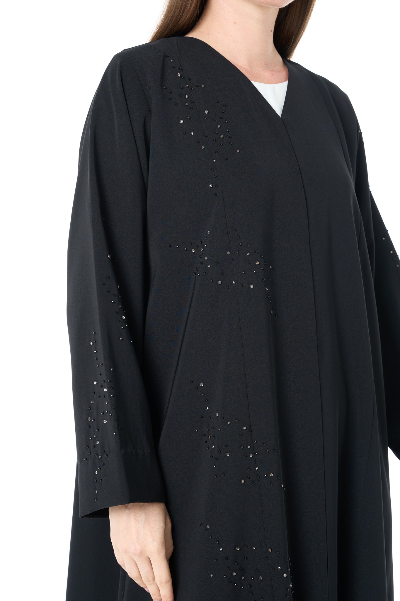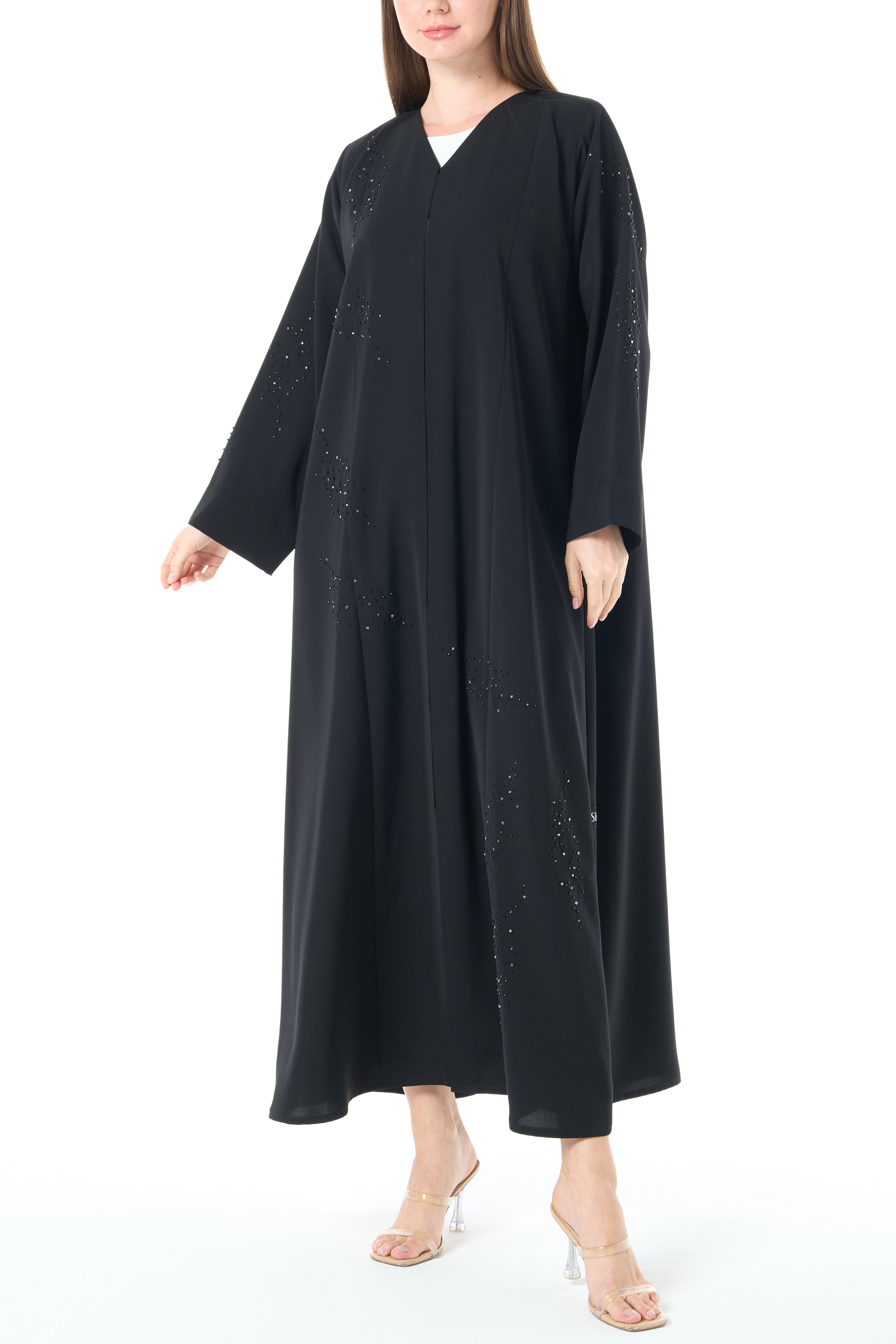 Black Lio Crepe Abaya with Delicate Bead Embellishment