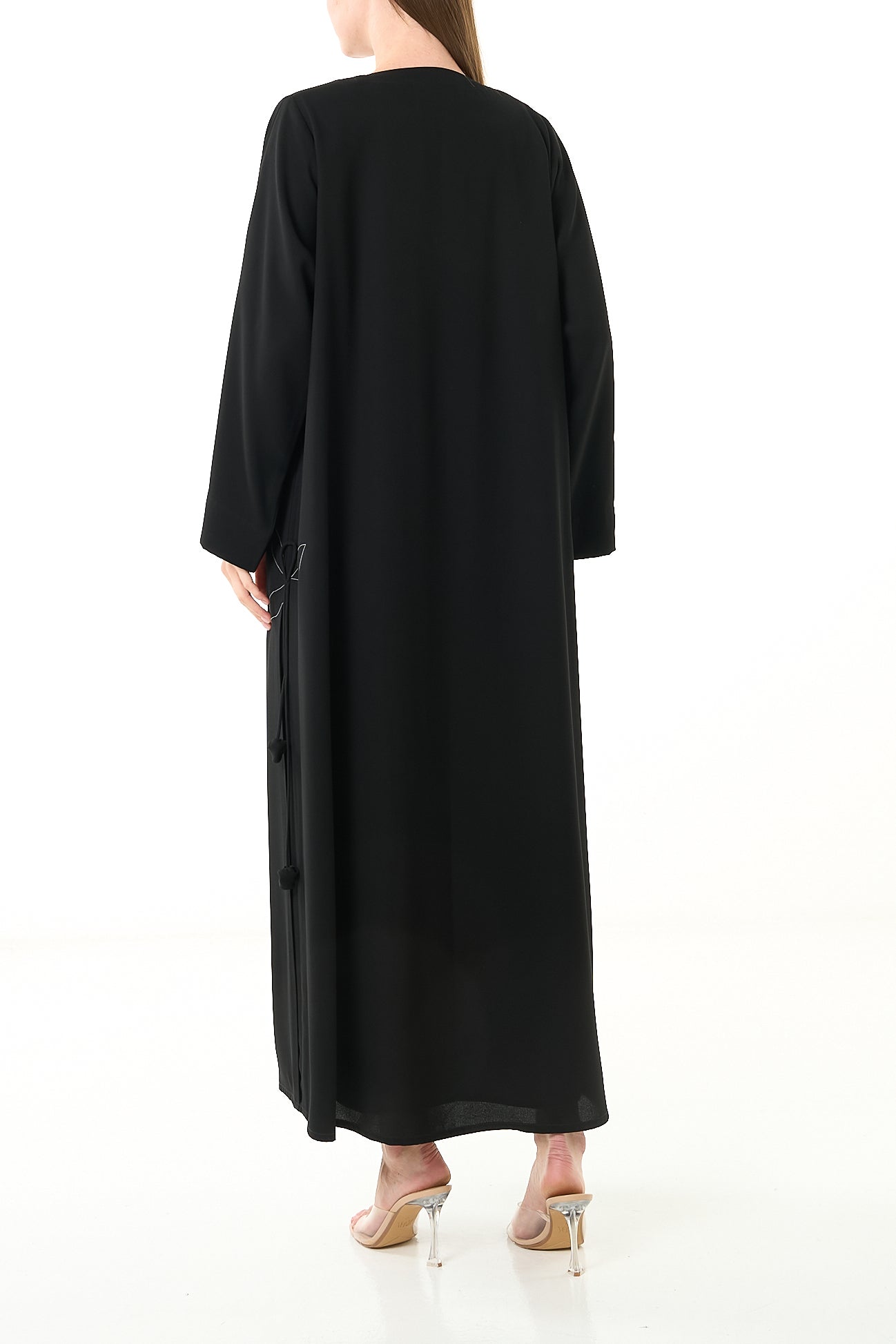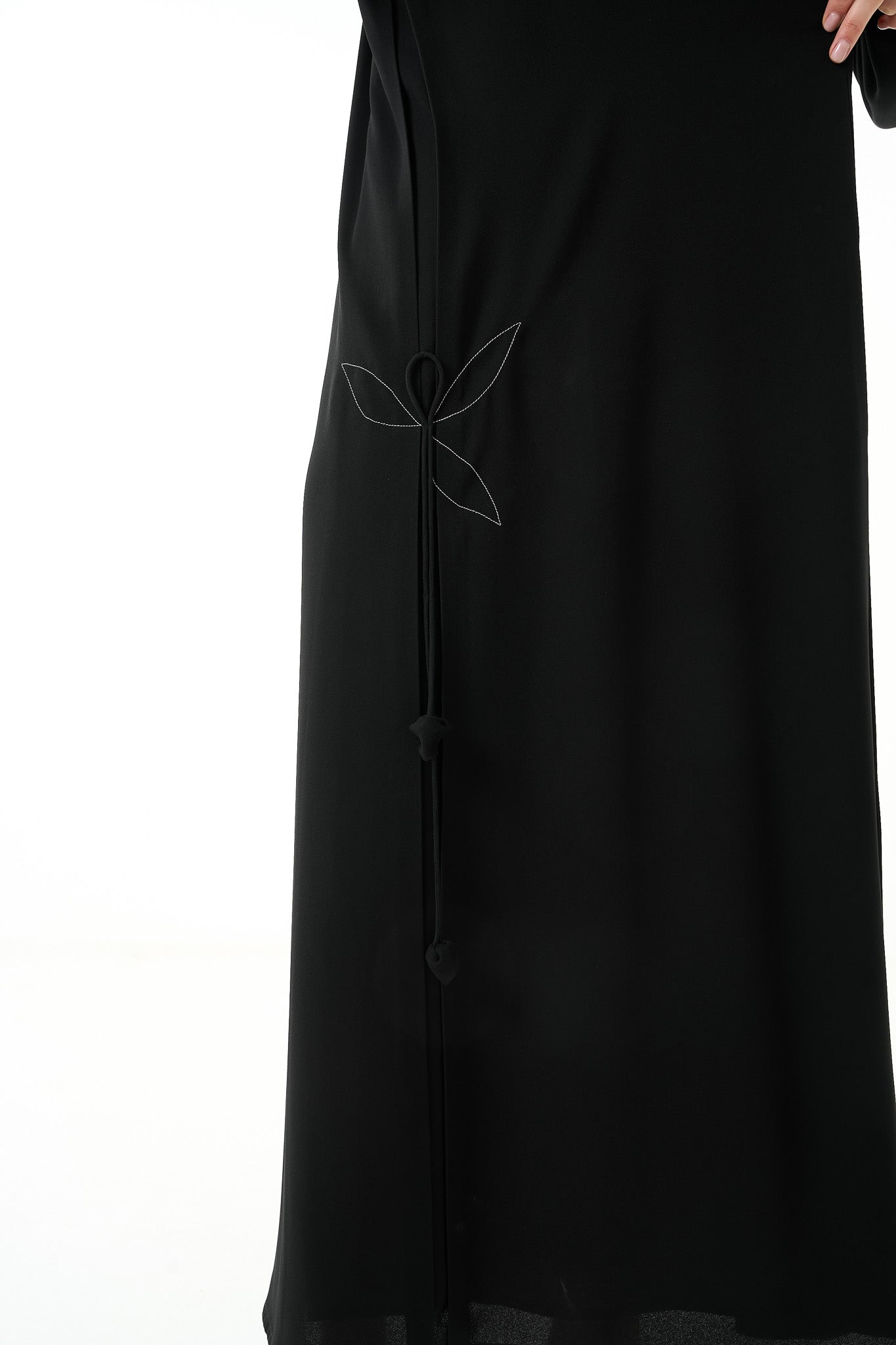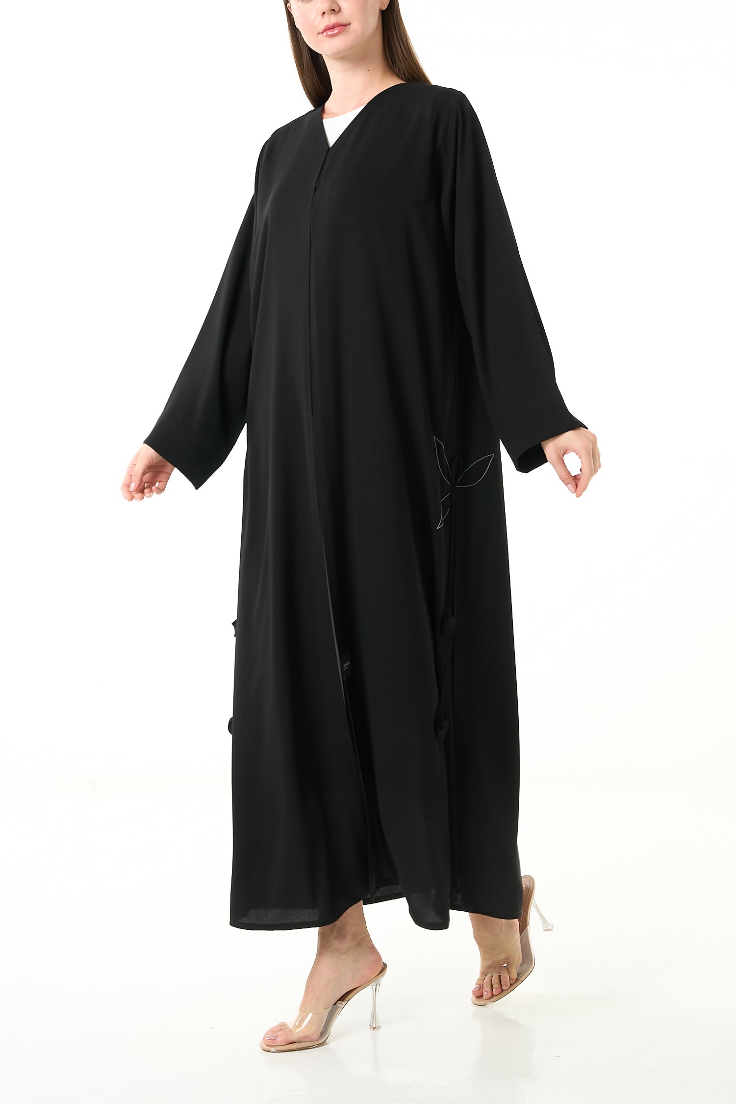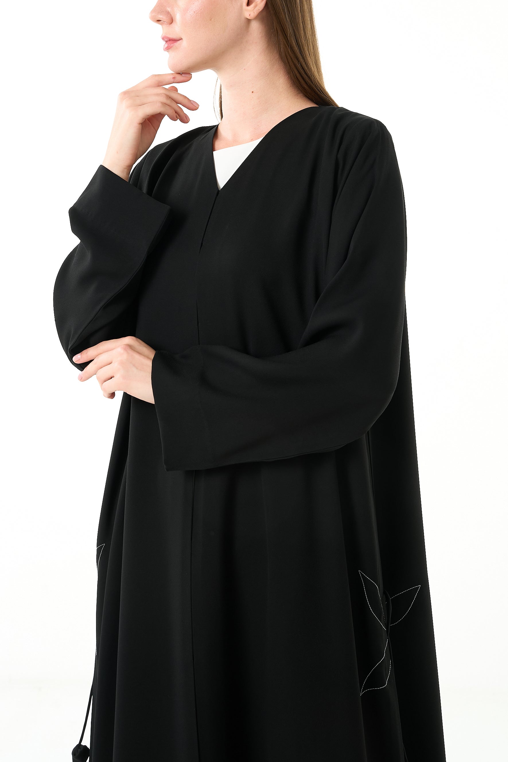 The KLOSH cut allows for natural movement from the waist, while the single topstitch at the hem and neat side dori detail keep the look refined yet practical. Tonal snap buttons down the front offer ease of wear. This abaya is designed for women who value quiet sophistication in their everyday pieces.