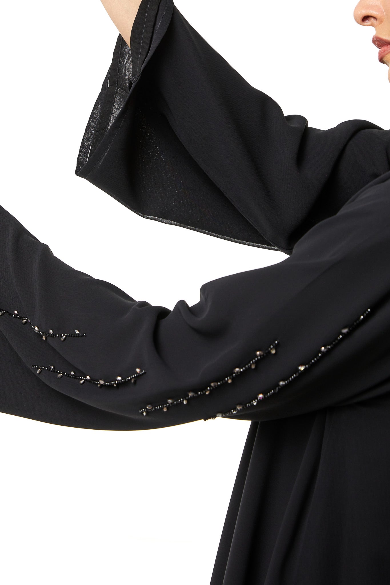 Black Malika Chiffon, Front and Sleeve Beadwork Detail