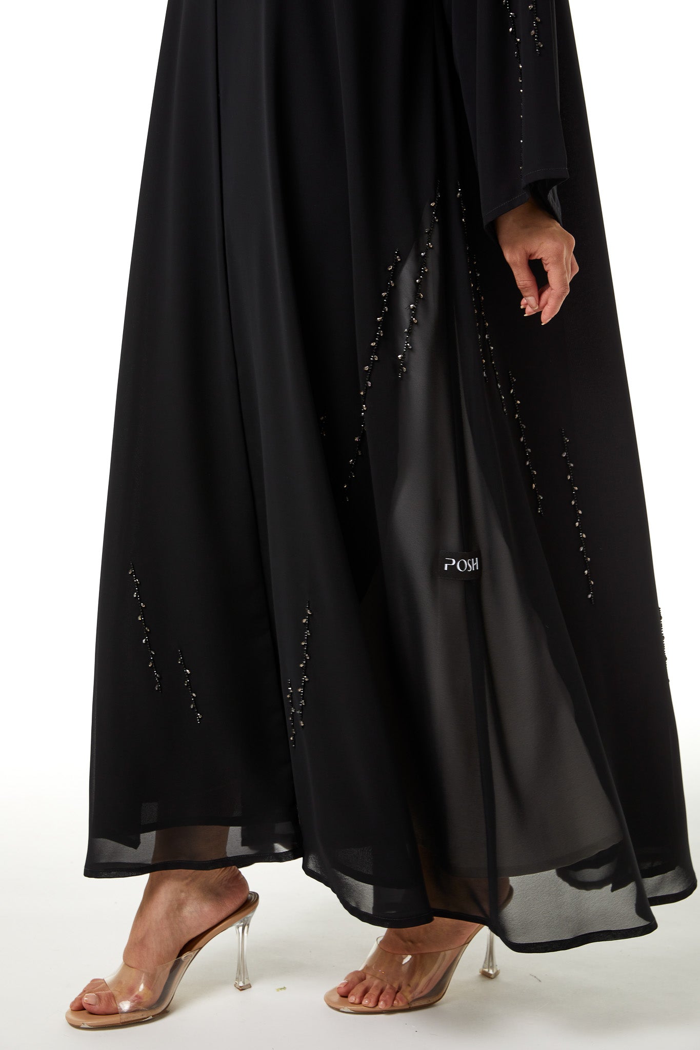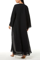The klosh cut allows gentle width through the body, supporting natural movement and comfort. Designed for all-year wear, this abaya transitions smoothly between special occasions while maintaining an elegant and timeless presence.