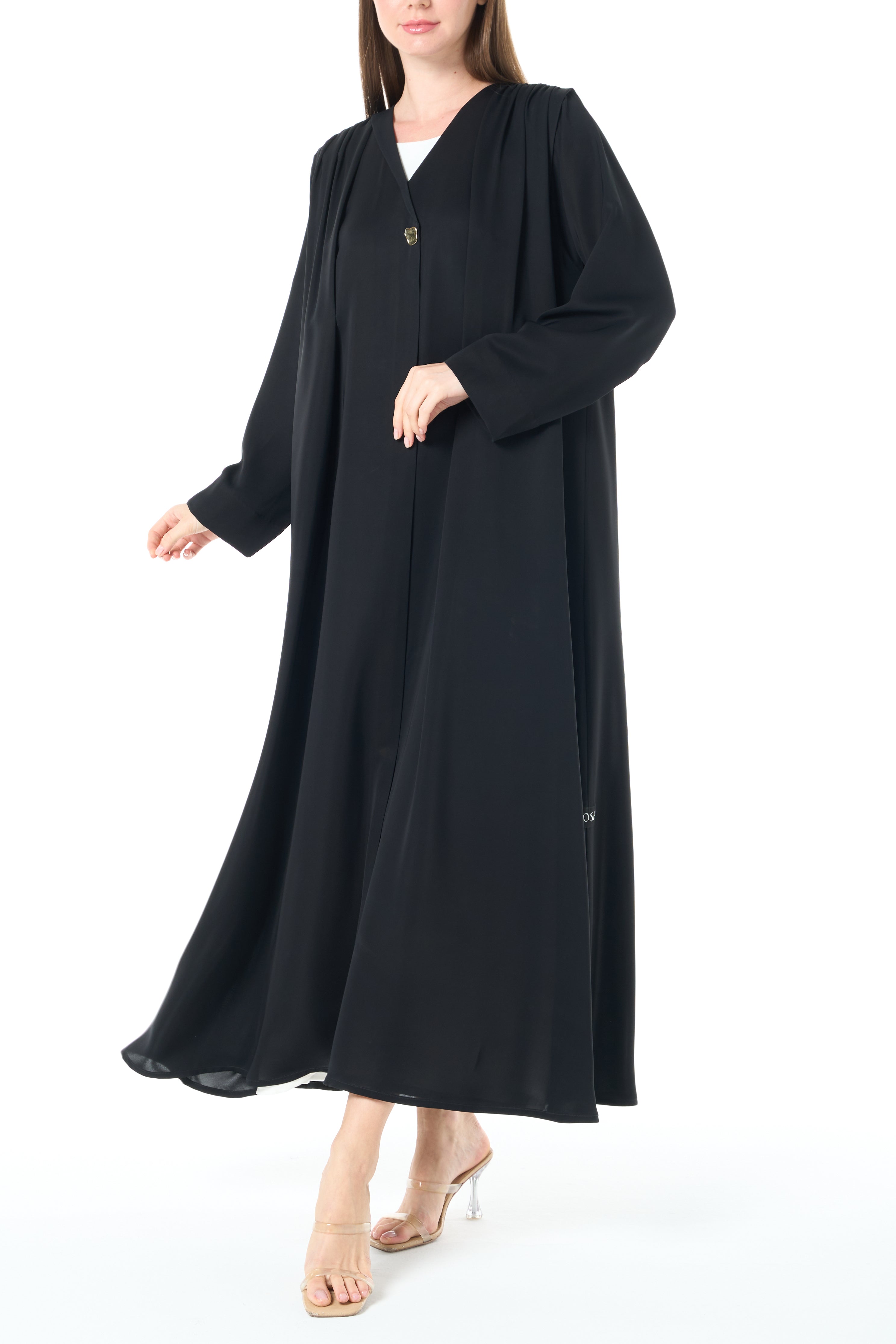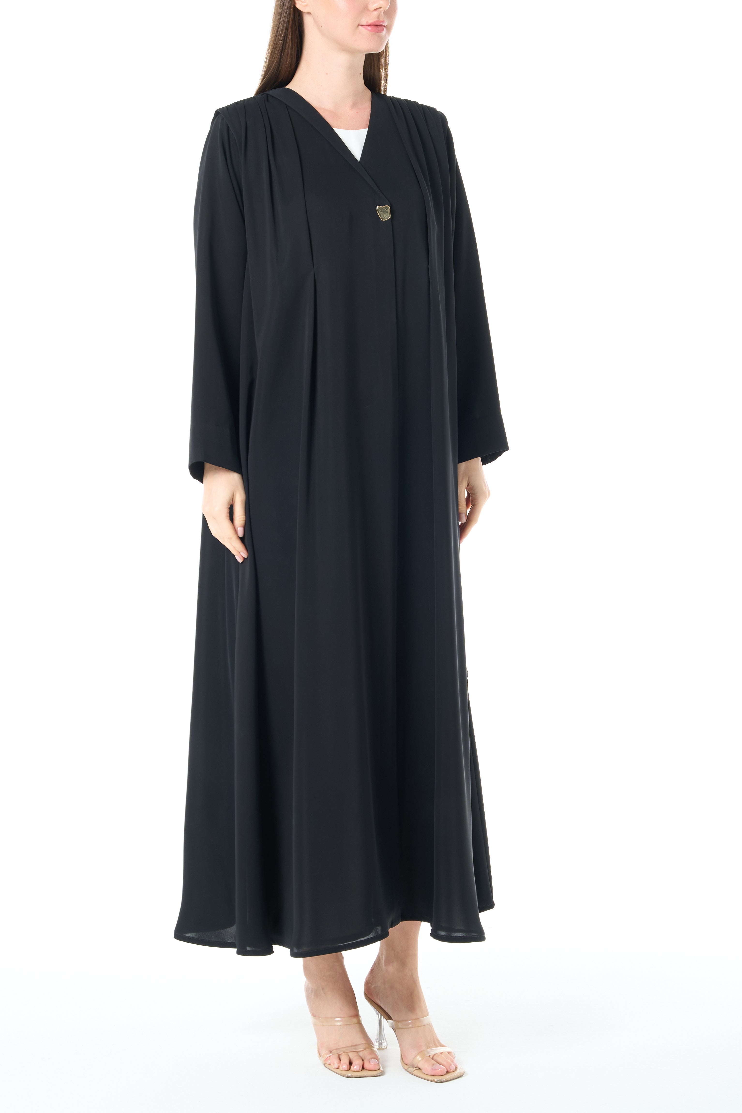 Black Reem Nada Abaya with Pleat and Collar Detail