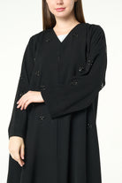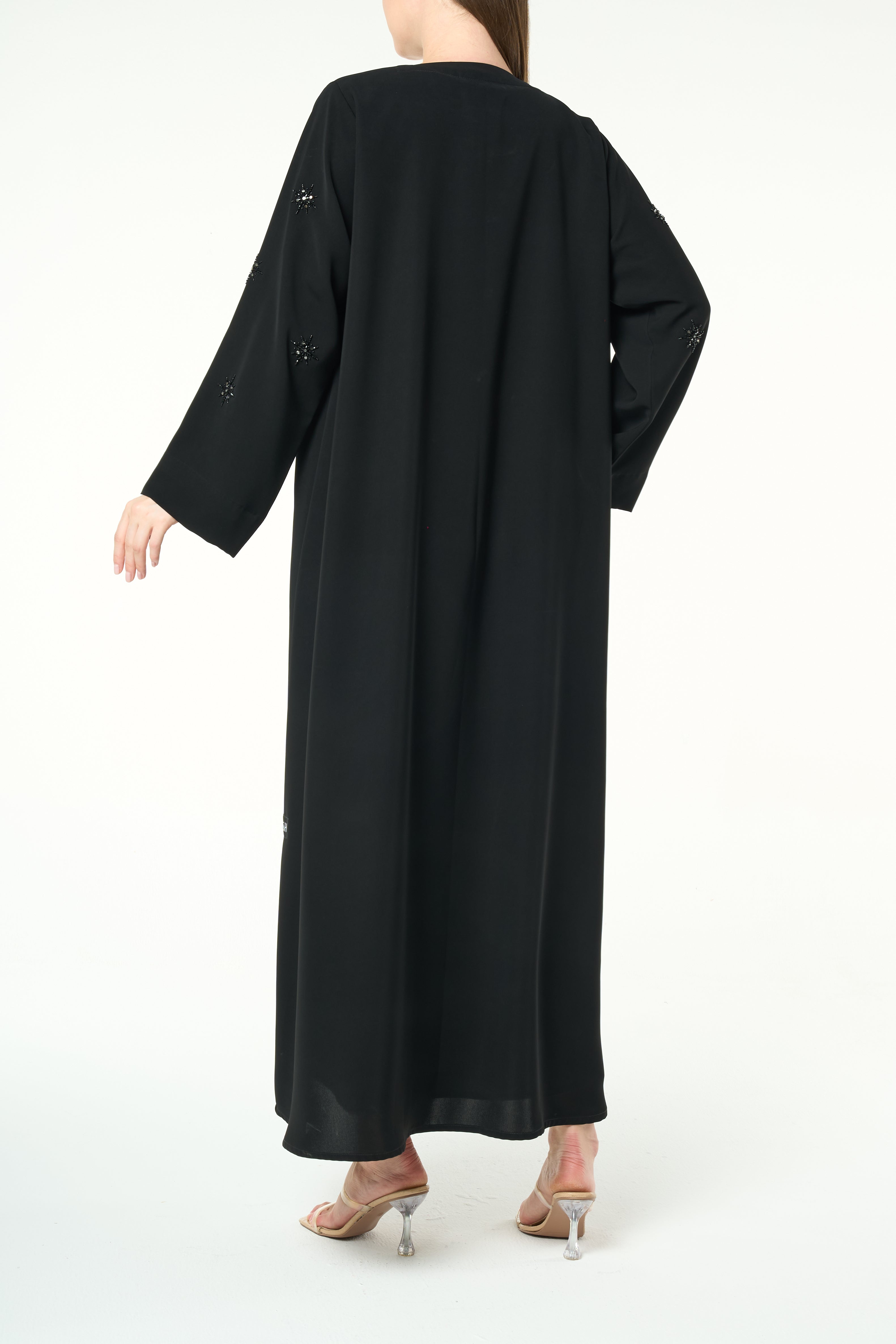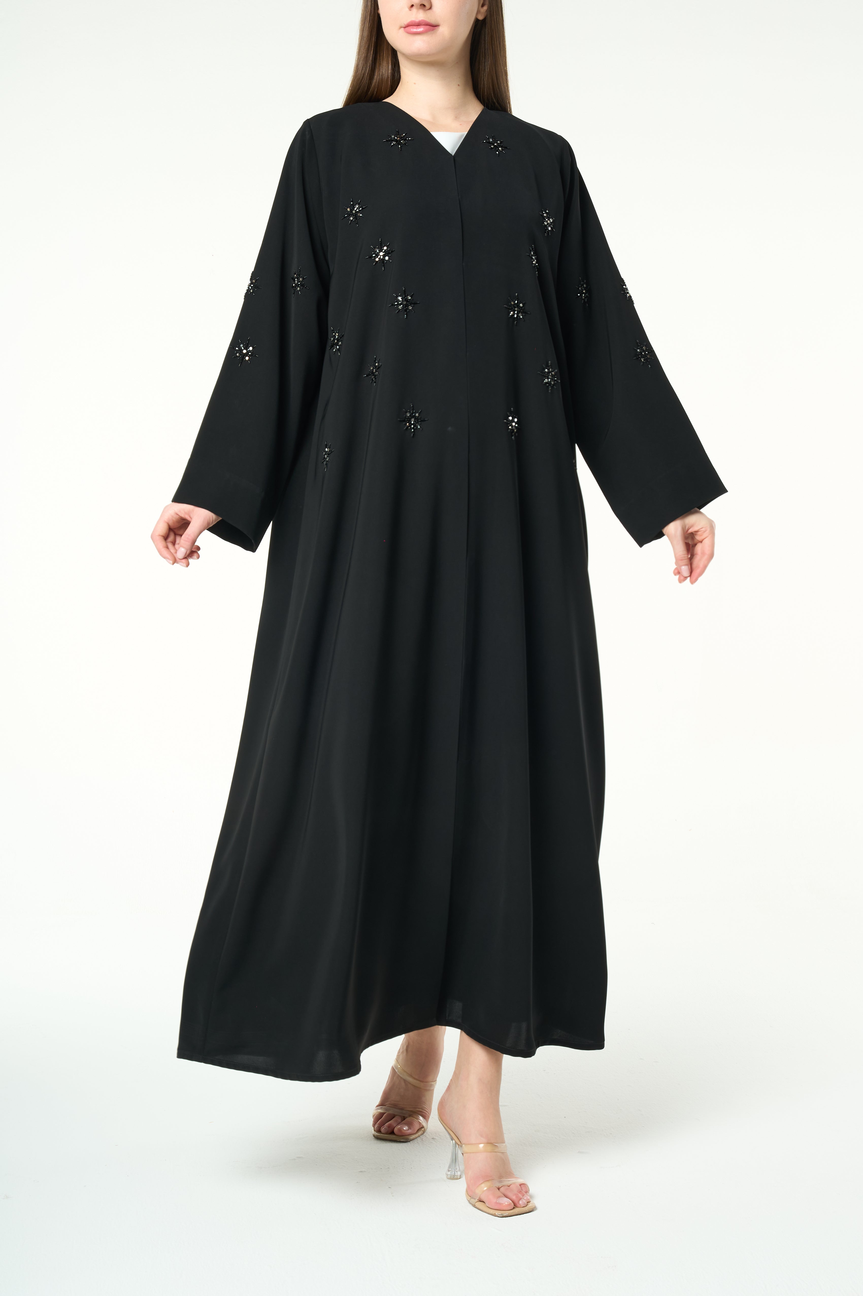 Perfect for Ramadan, Eid gatherings, or back-to-work elegance, this abaya combines timeless minimalism with artisanal detail, making it both classic and contemporary.