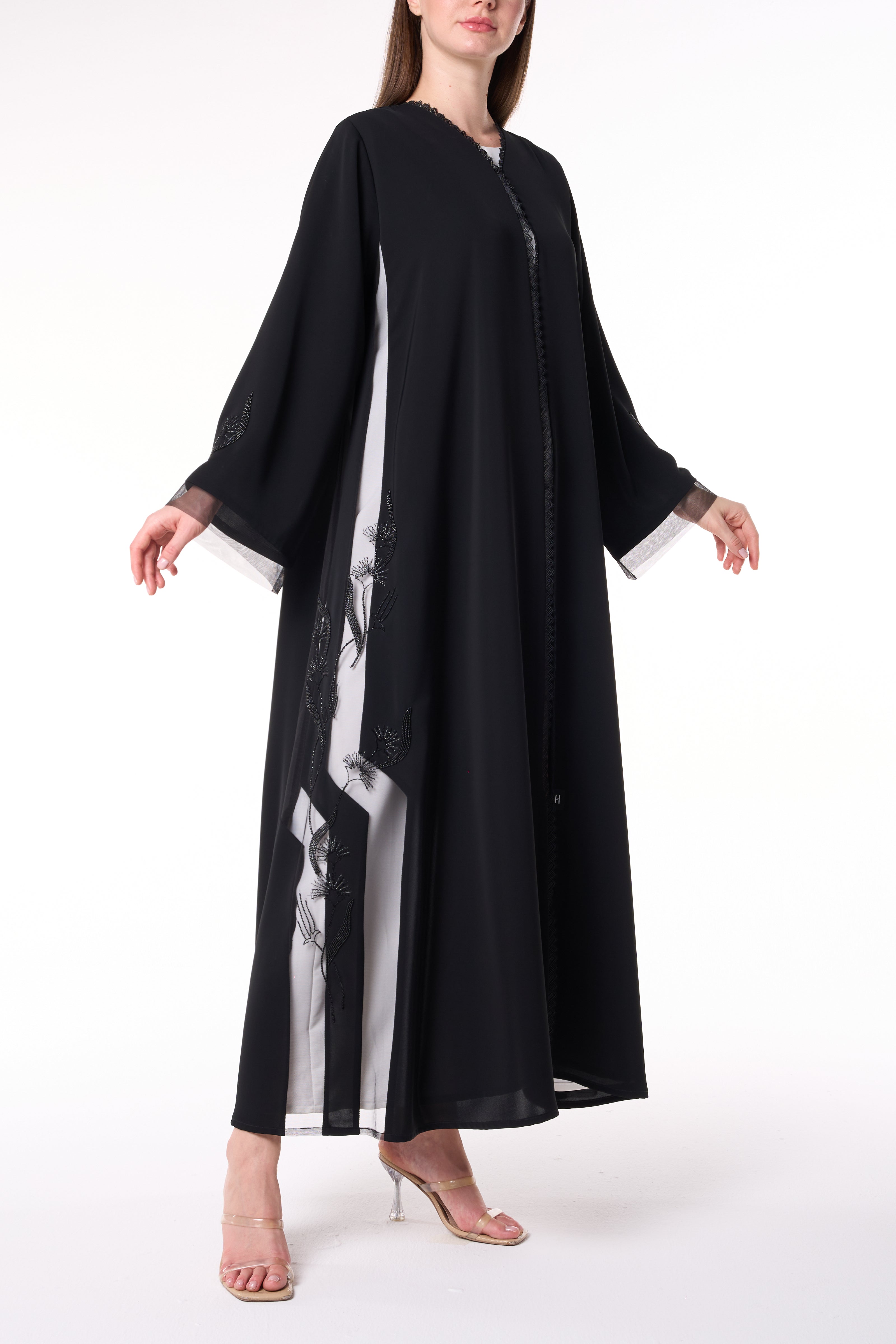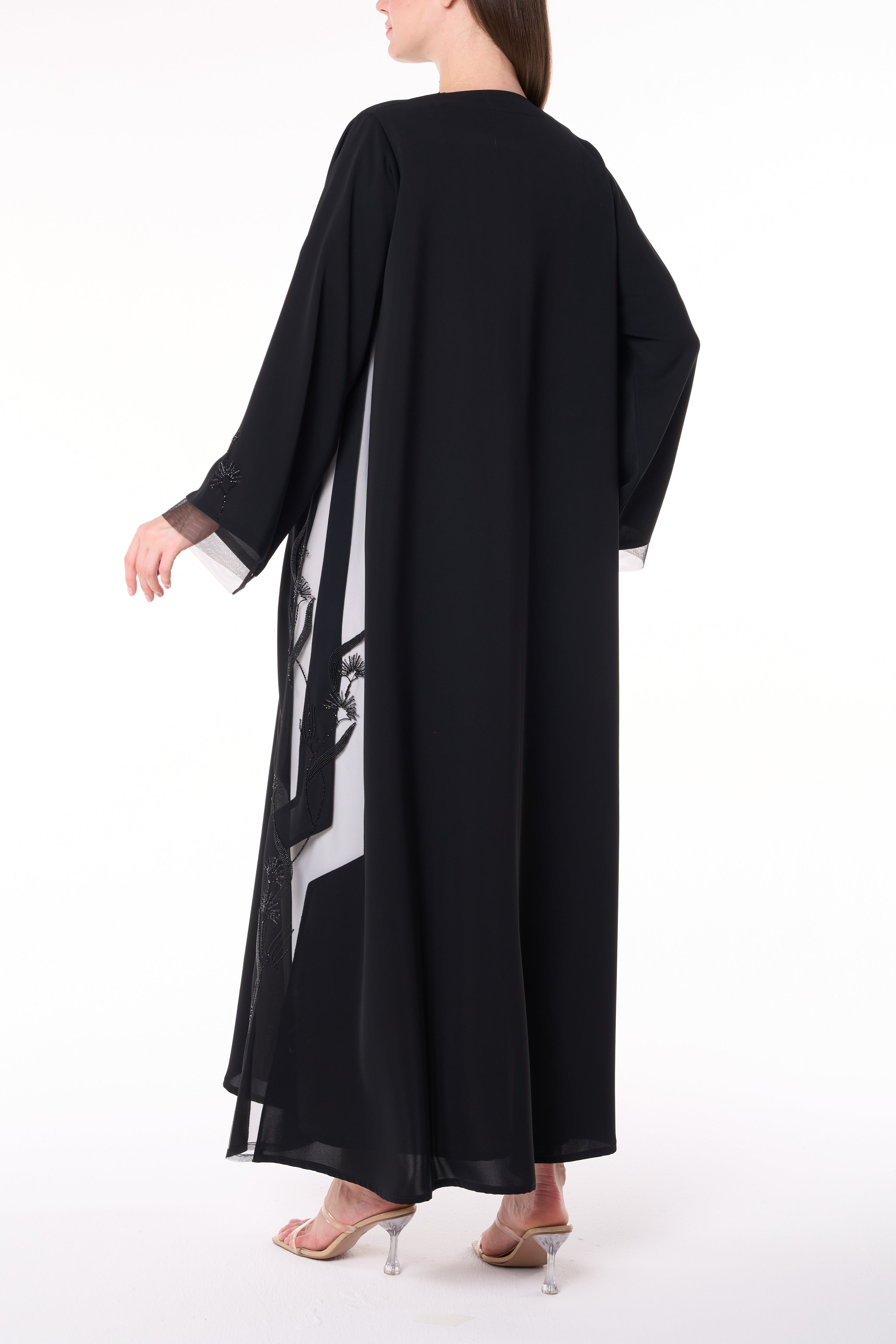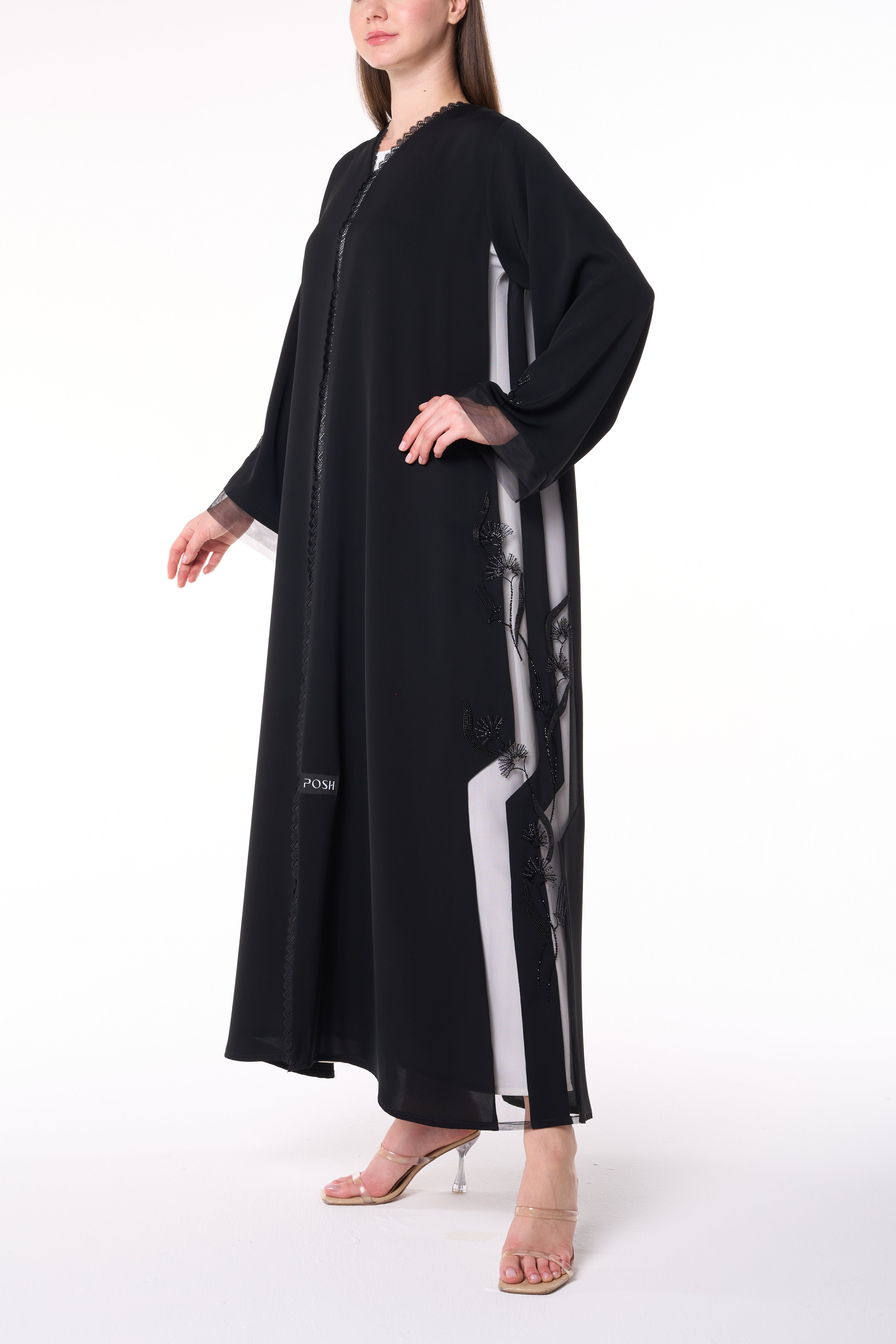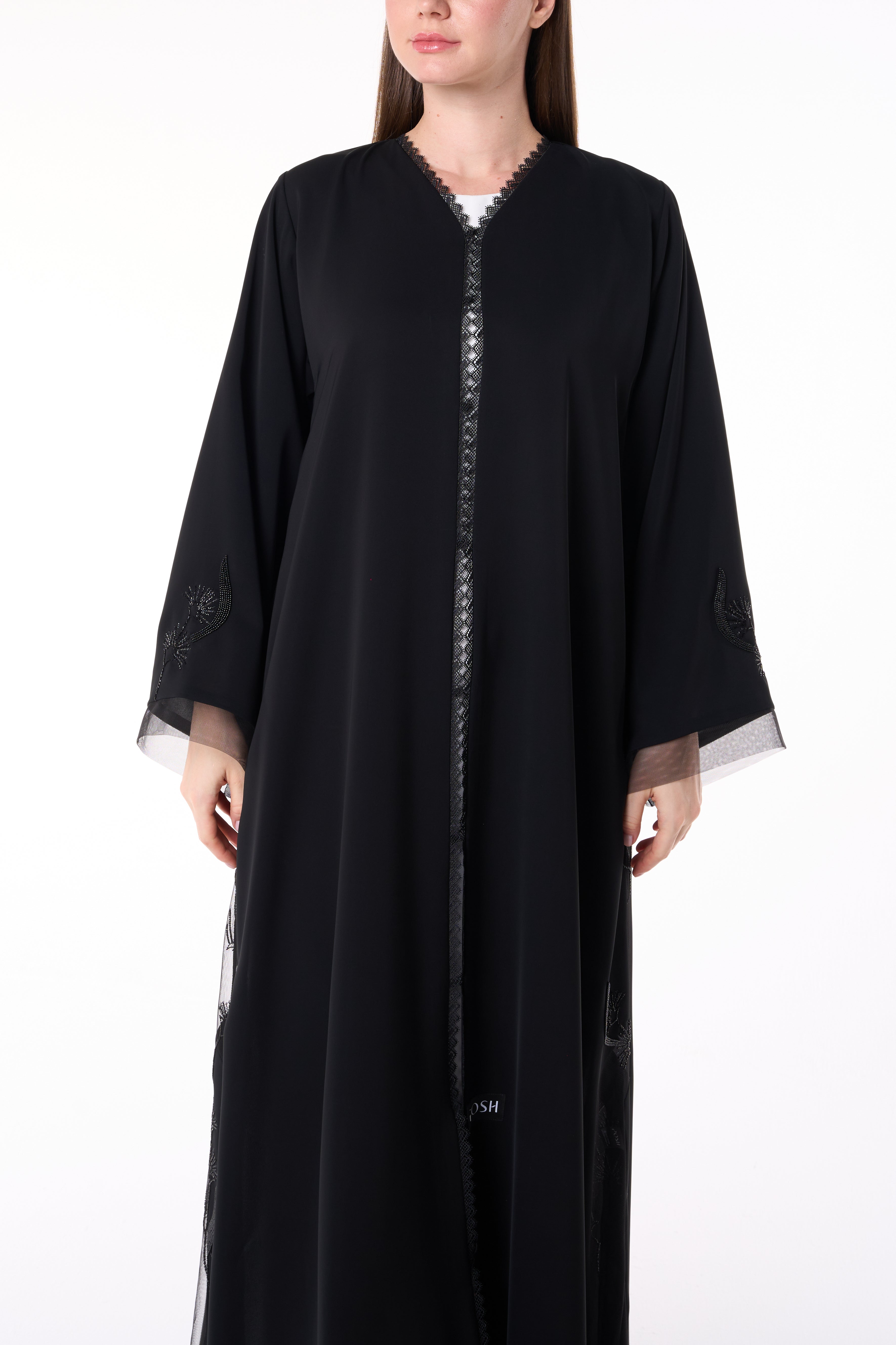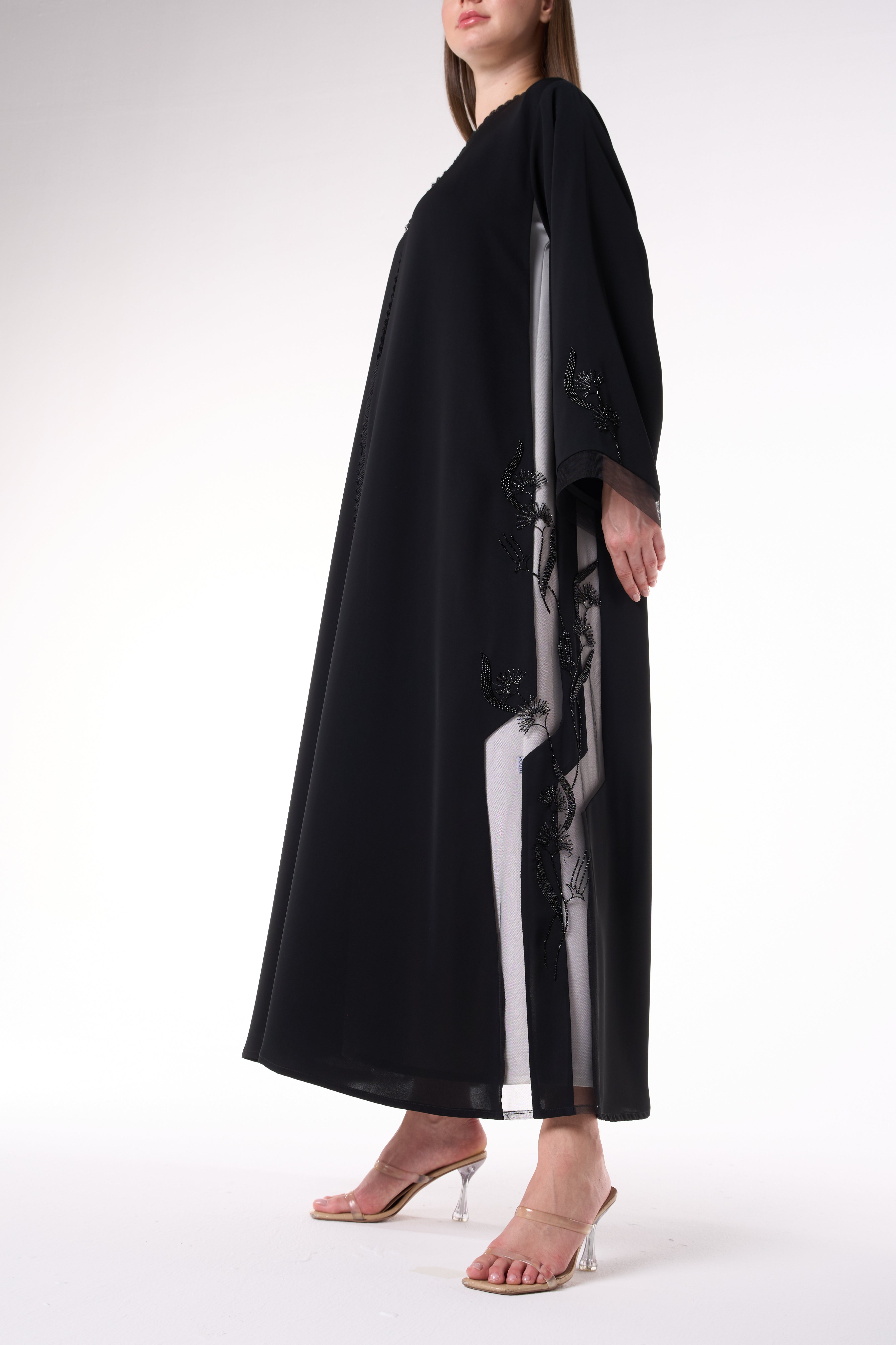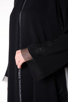 Black Royal Nada Abaya with Cutdana Floral Embroidery