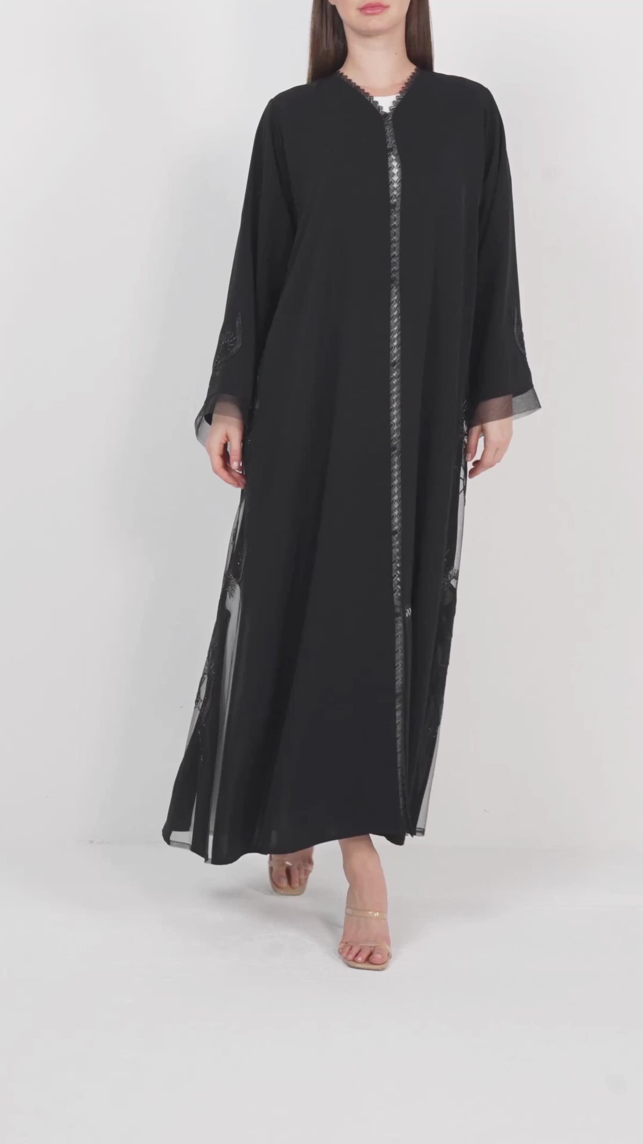 Each motif is handcrafted with precision — the layered beadwork and lace appliqué create texture without overwhelming the silhouette. Finished with a clean topstitched hem and double-net sleeve lining for structure, this piece is made for Ramadan, Eid celebrations, weddings, and elegant social gatherings.