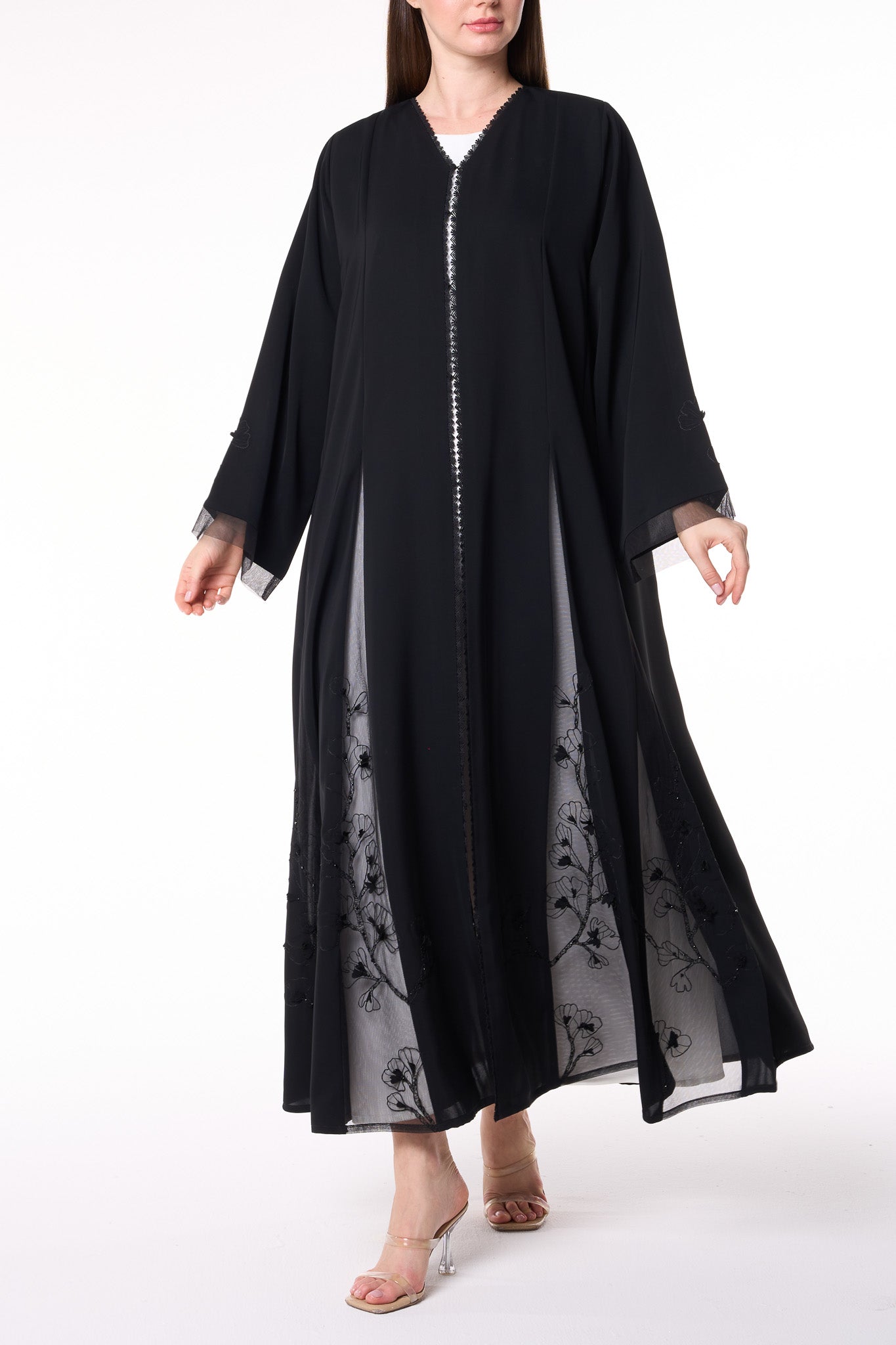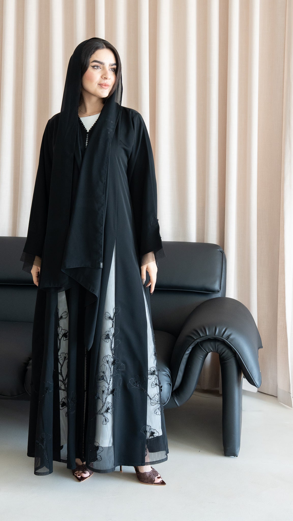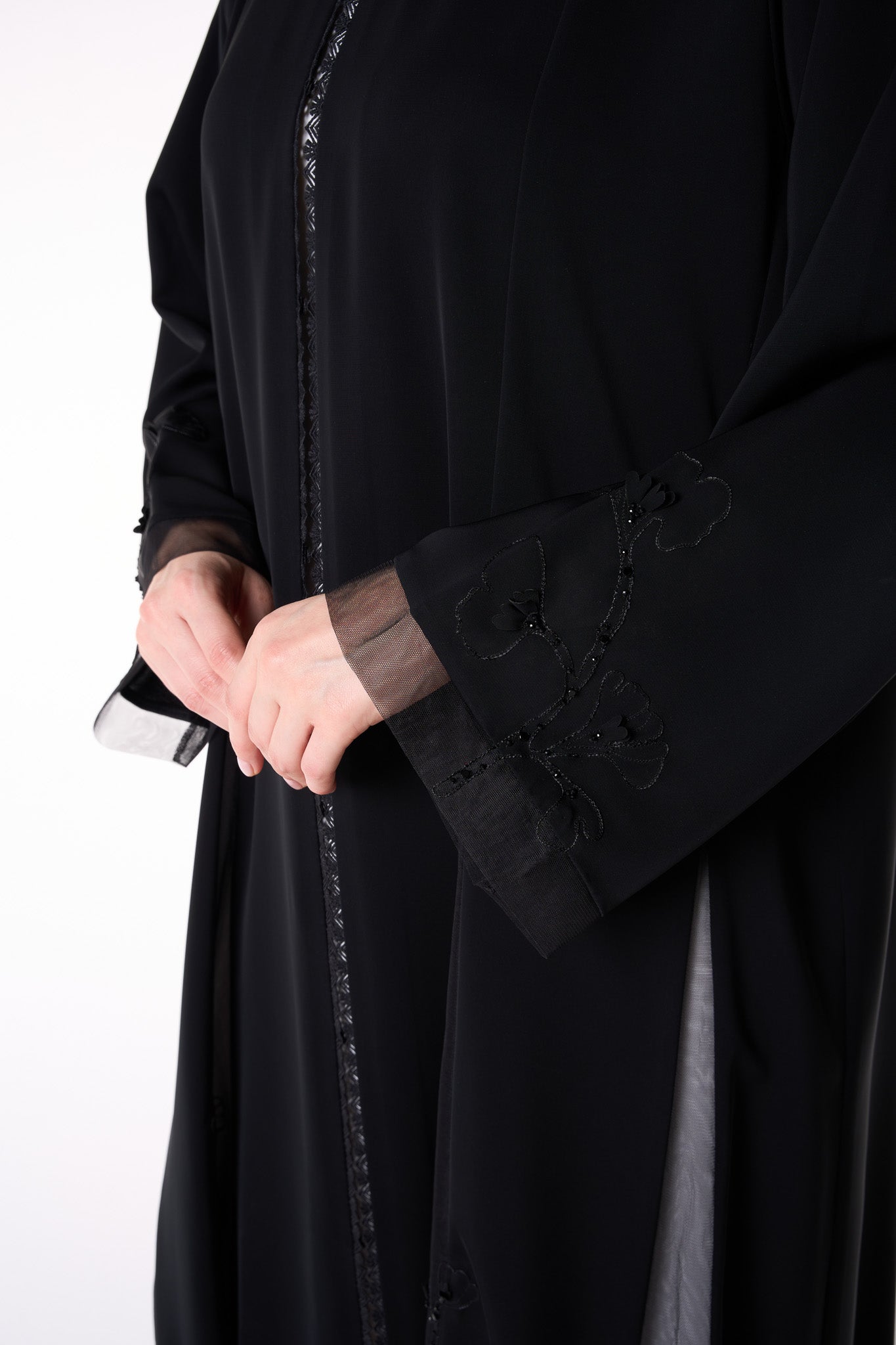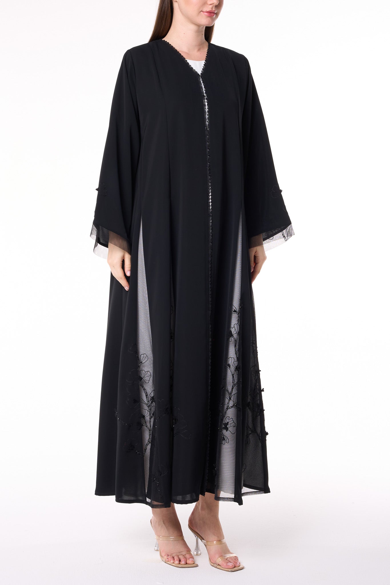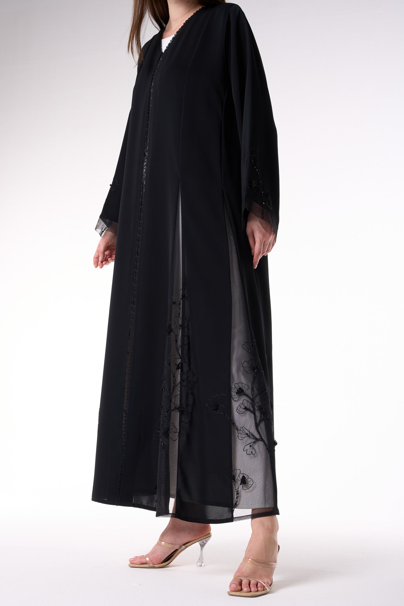 Black Royal Nada Abaya with Floral Beadwork Panels