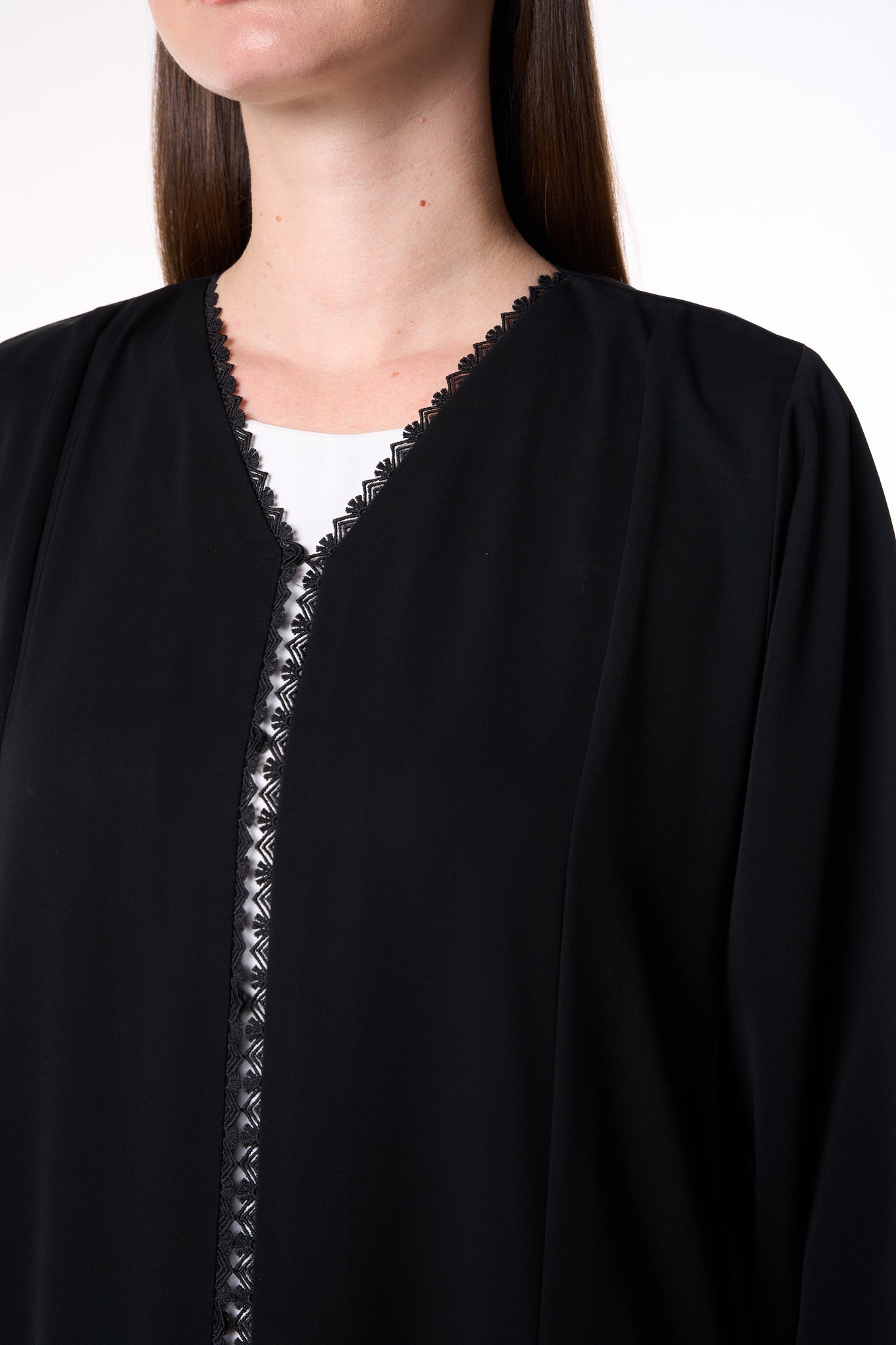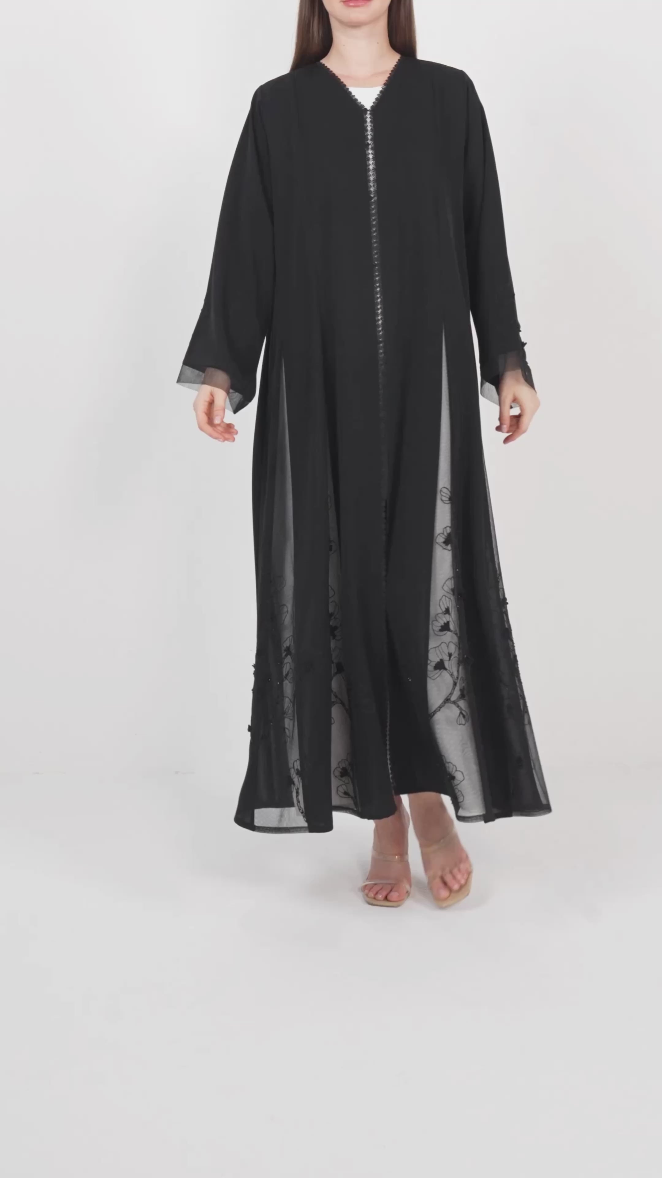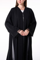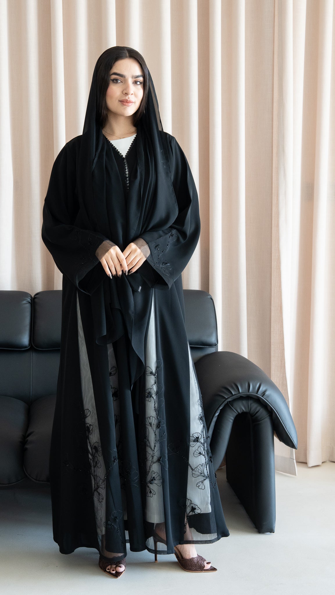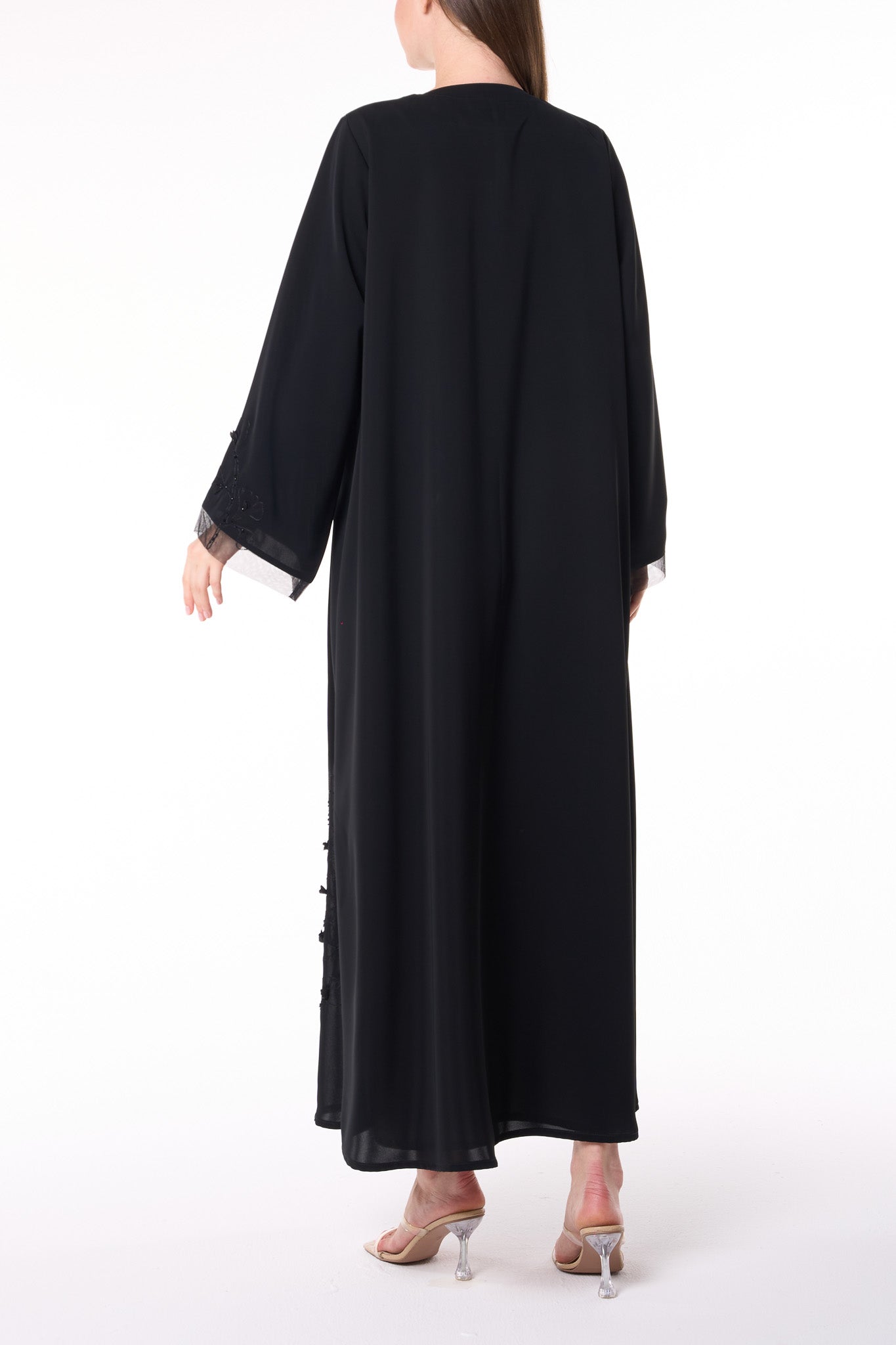Black Royal Nada Abaya with Floral Beadwork Panels