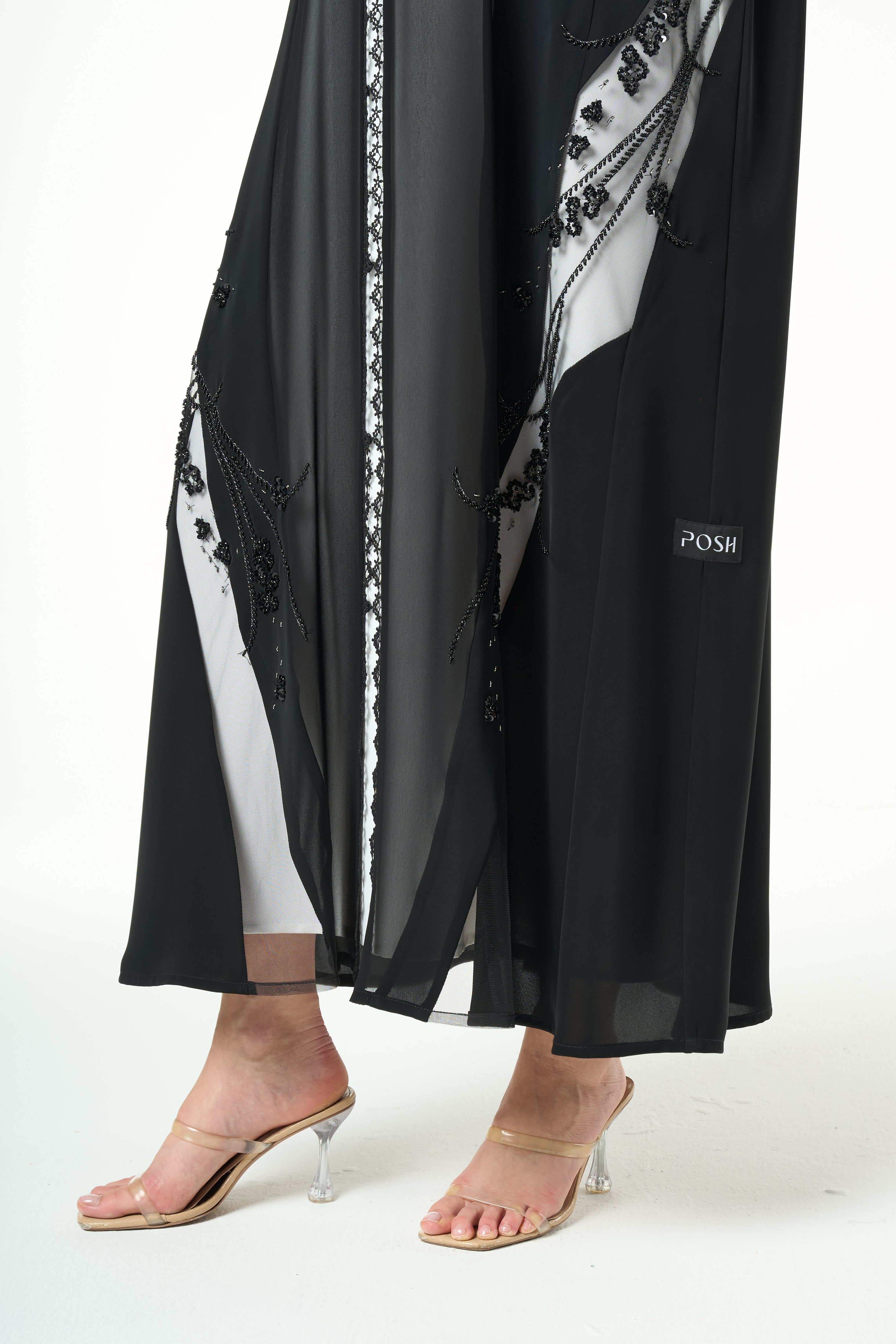 Black Royal Nada Abaya with Front Beadwork Detail