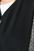 A refined black abaya crafted from soft Royal Nada Crepe and shaped in a flowing KLOSH silhouette that drapes smoothly with every step. The neckline is finished in a clean V shape that gives the design an elegant and modest look suitable for formal and social wear.
