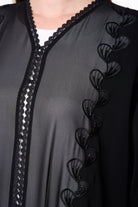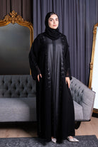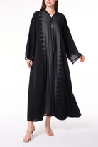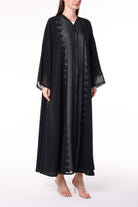 Black Royal Nada Abaya with Tatreez Leaf Embroidery