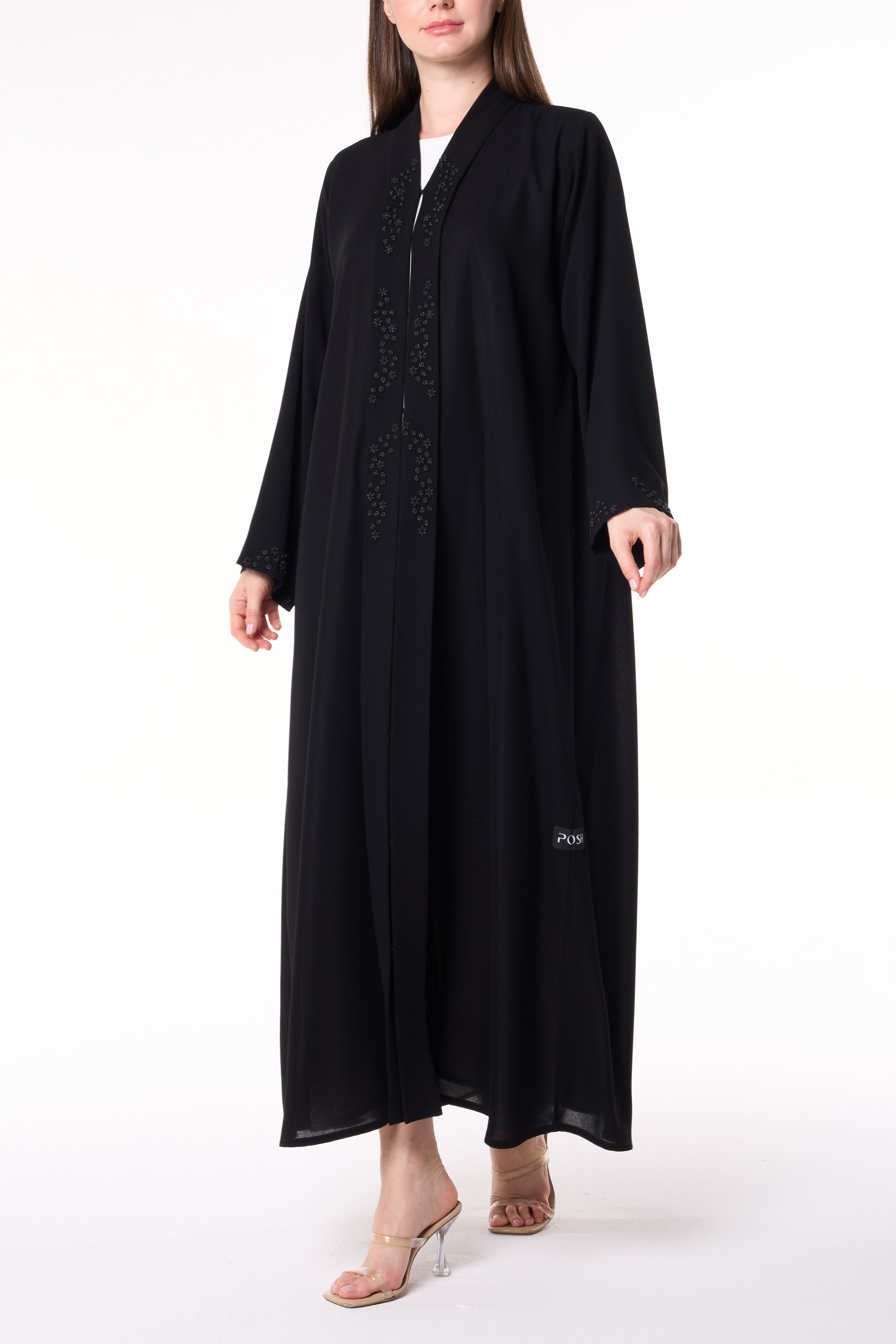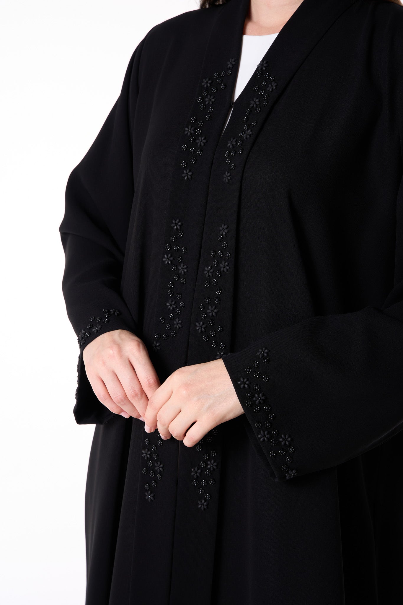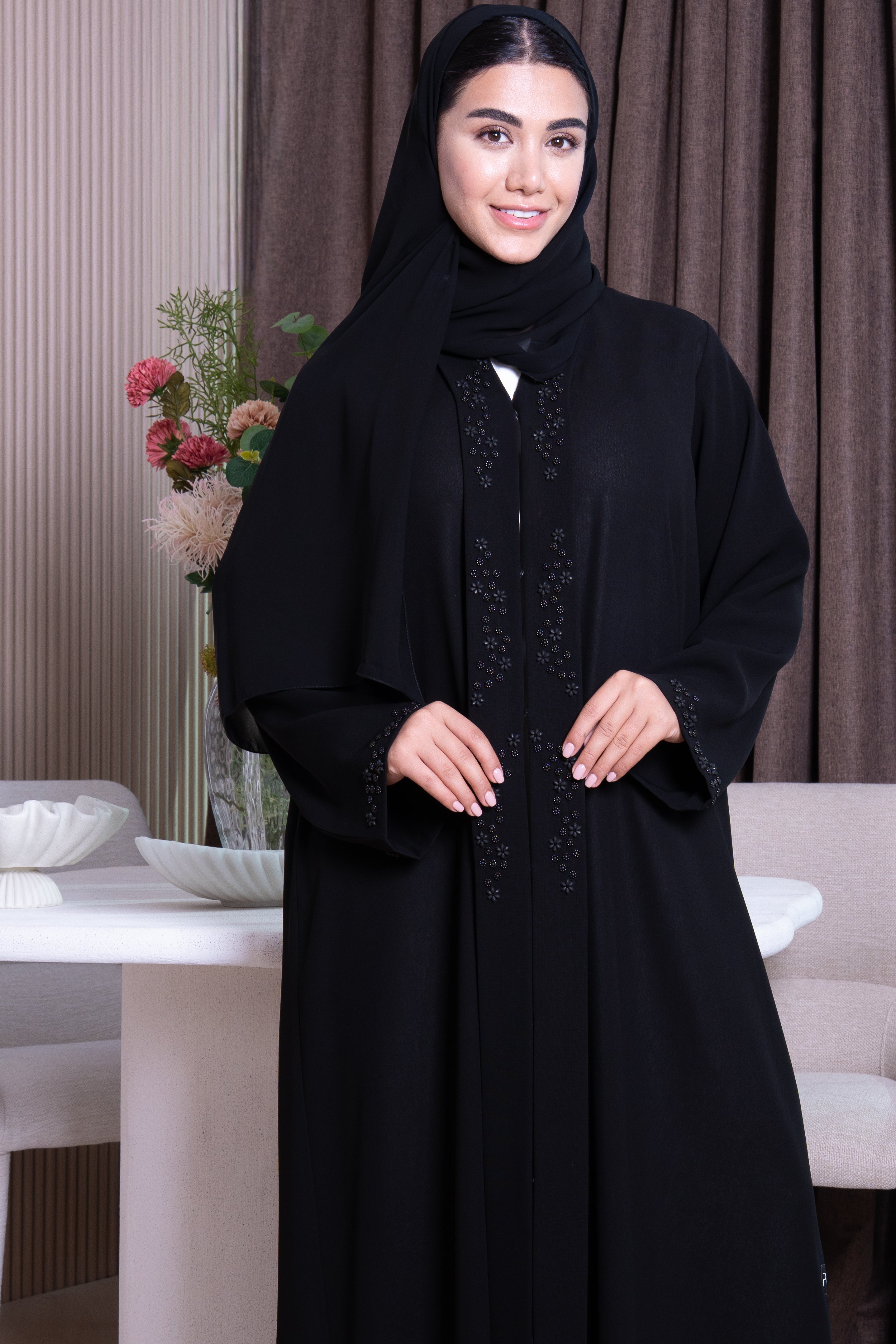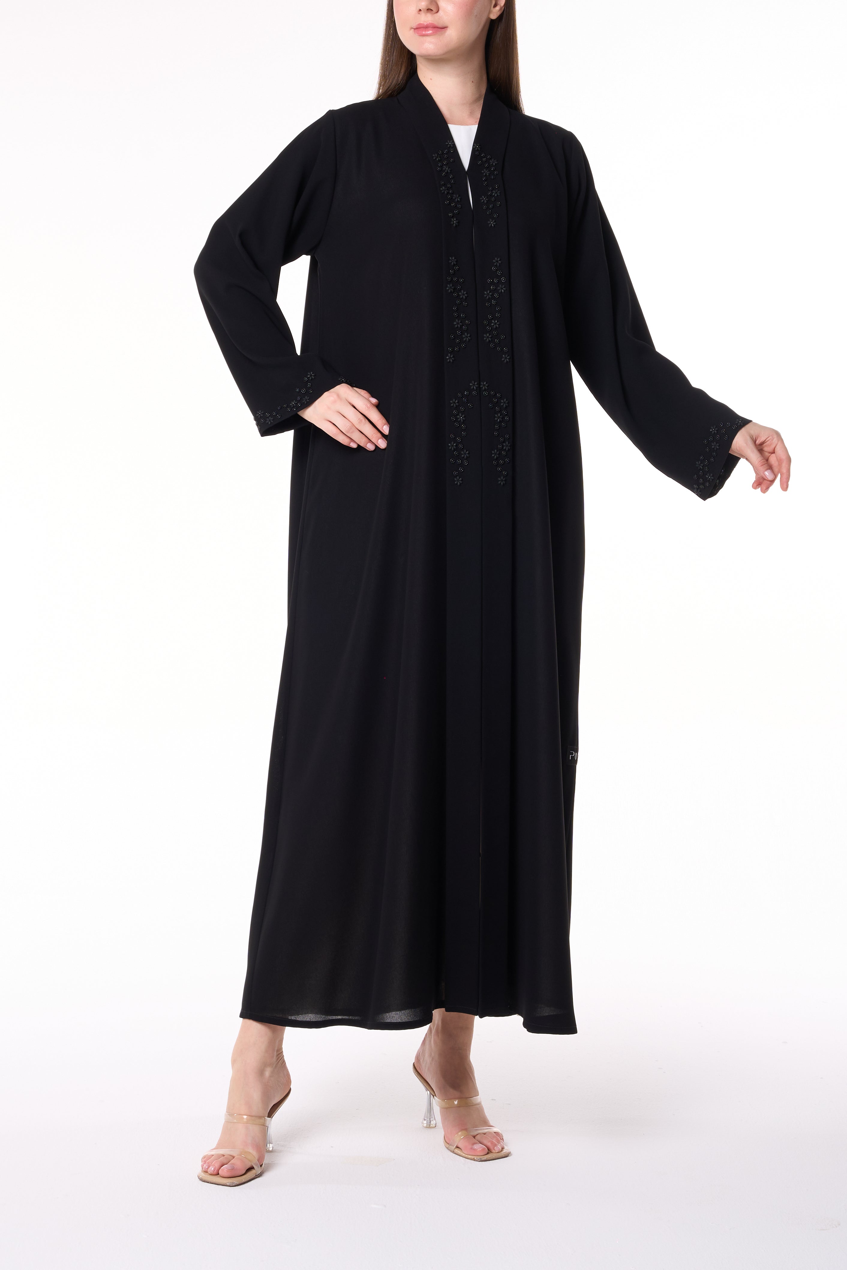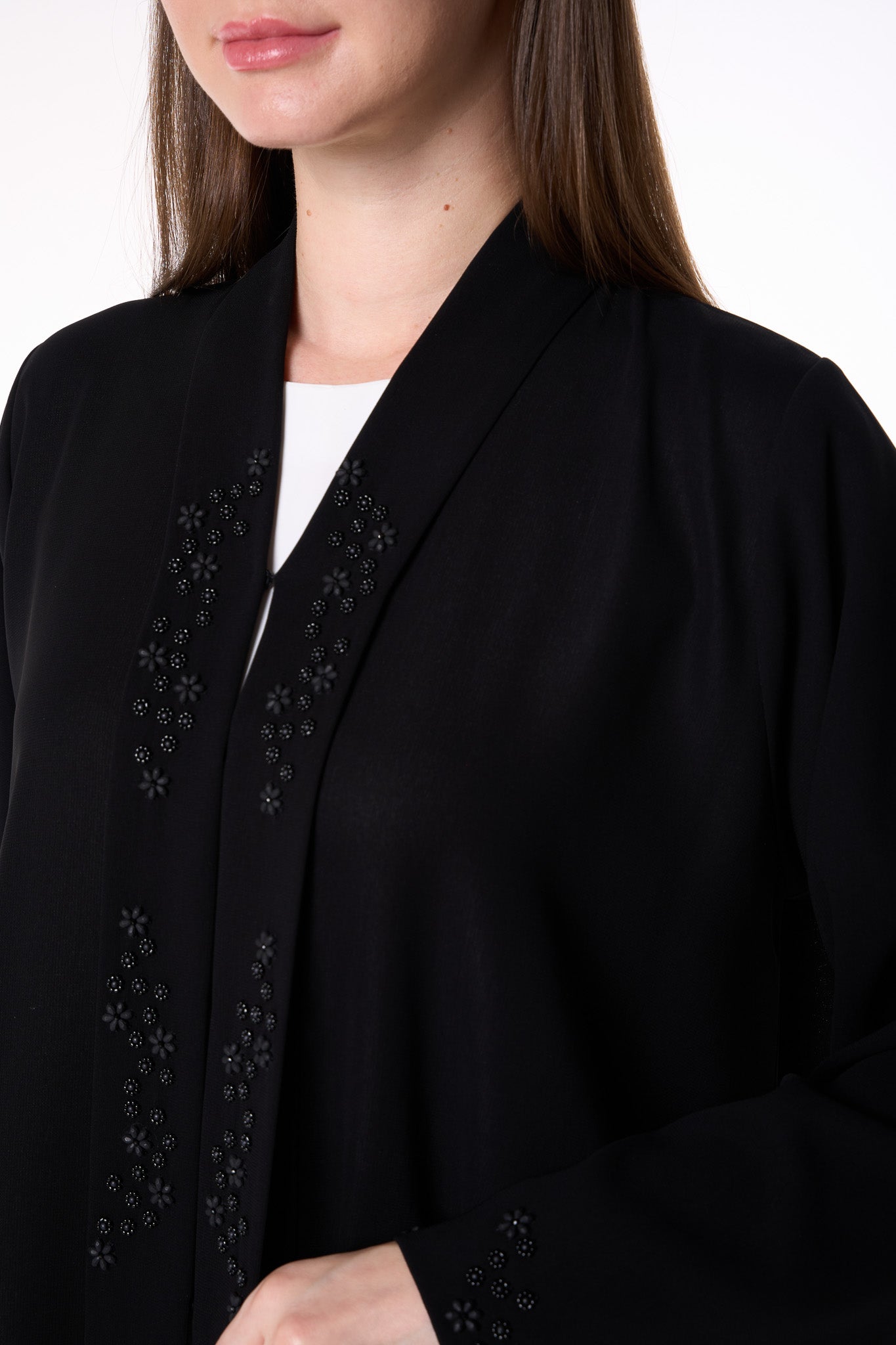 Black Shafa Crepe Abaya with Beaded Front Panels