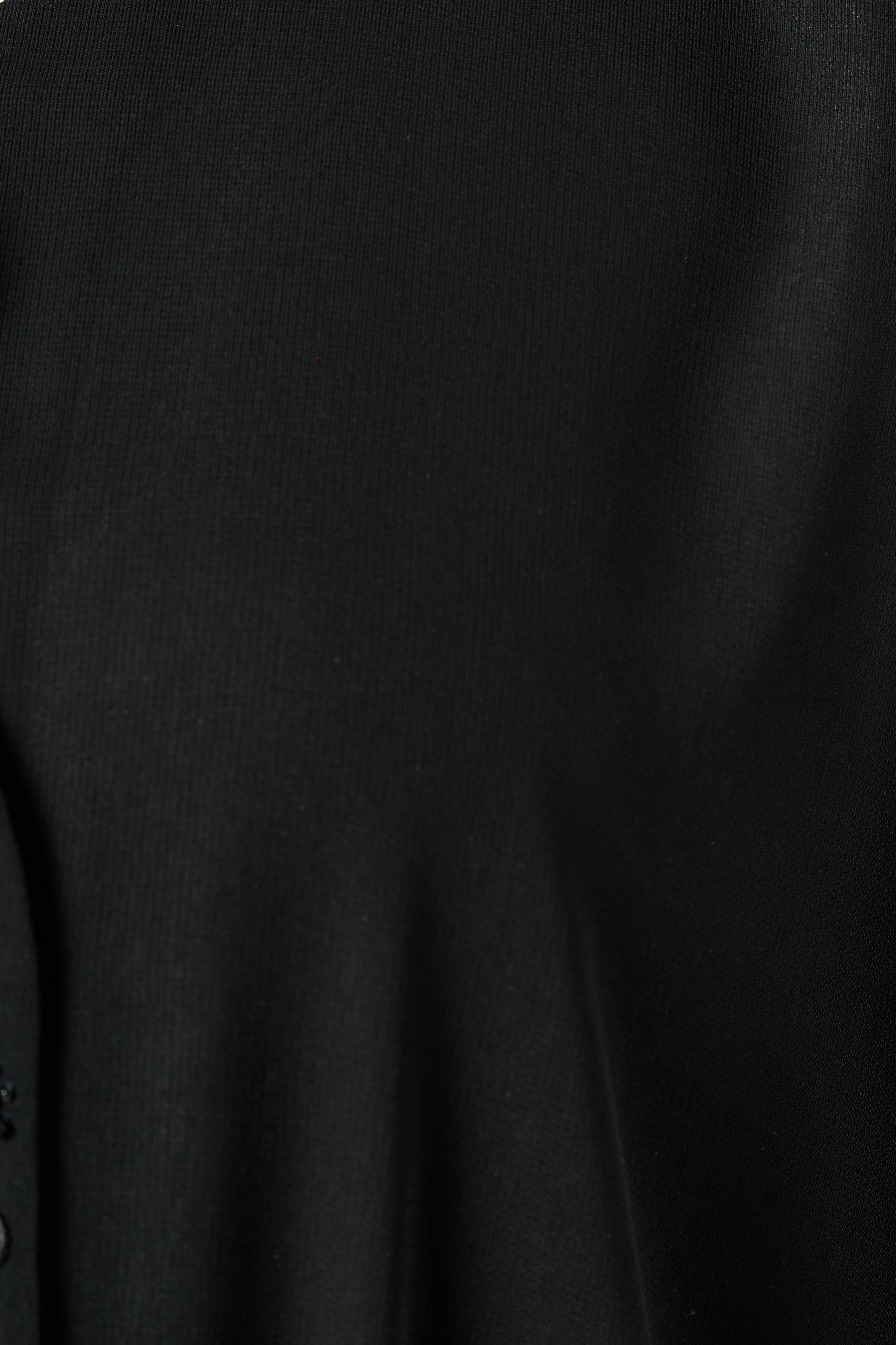 A refined black abaya crafted from soft Shafa Crepe and shaped in a flowing KLOSH silhouette that moves effortlessly with the body. The clean round neckline and straight front create a minimal and elegant base that feels timeless and sophisticated.