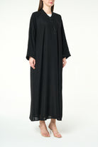Lightweight, comfortable and beautifully draped, this abaya brings together quiet luxury and modern modesty.