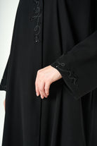 Black Shafa Crepe Abaya with Beaded Vine Detailing