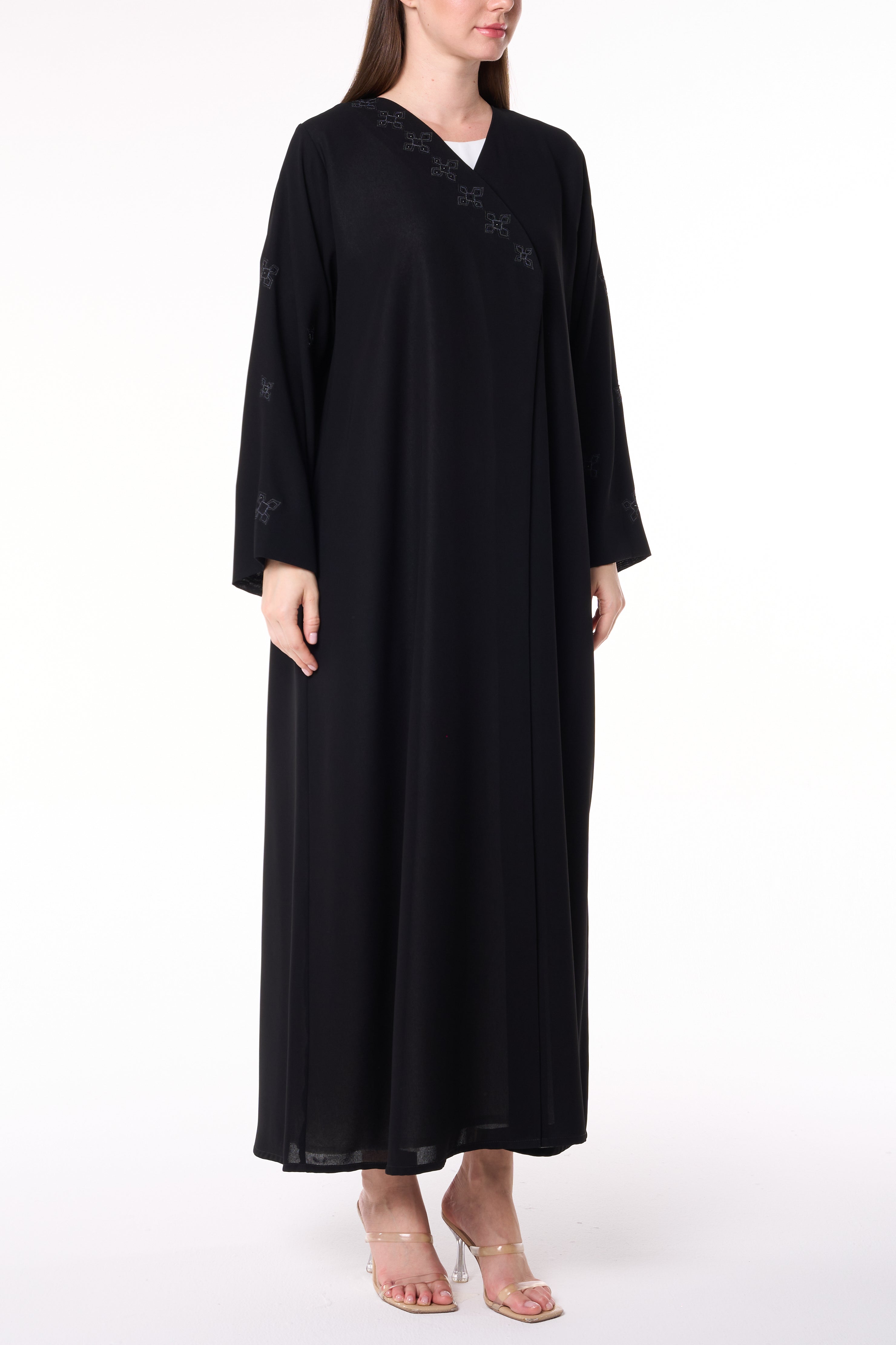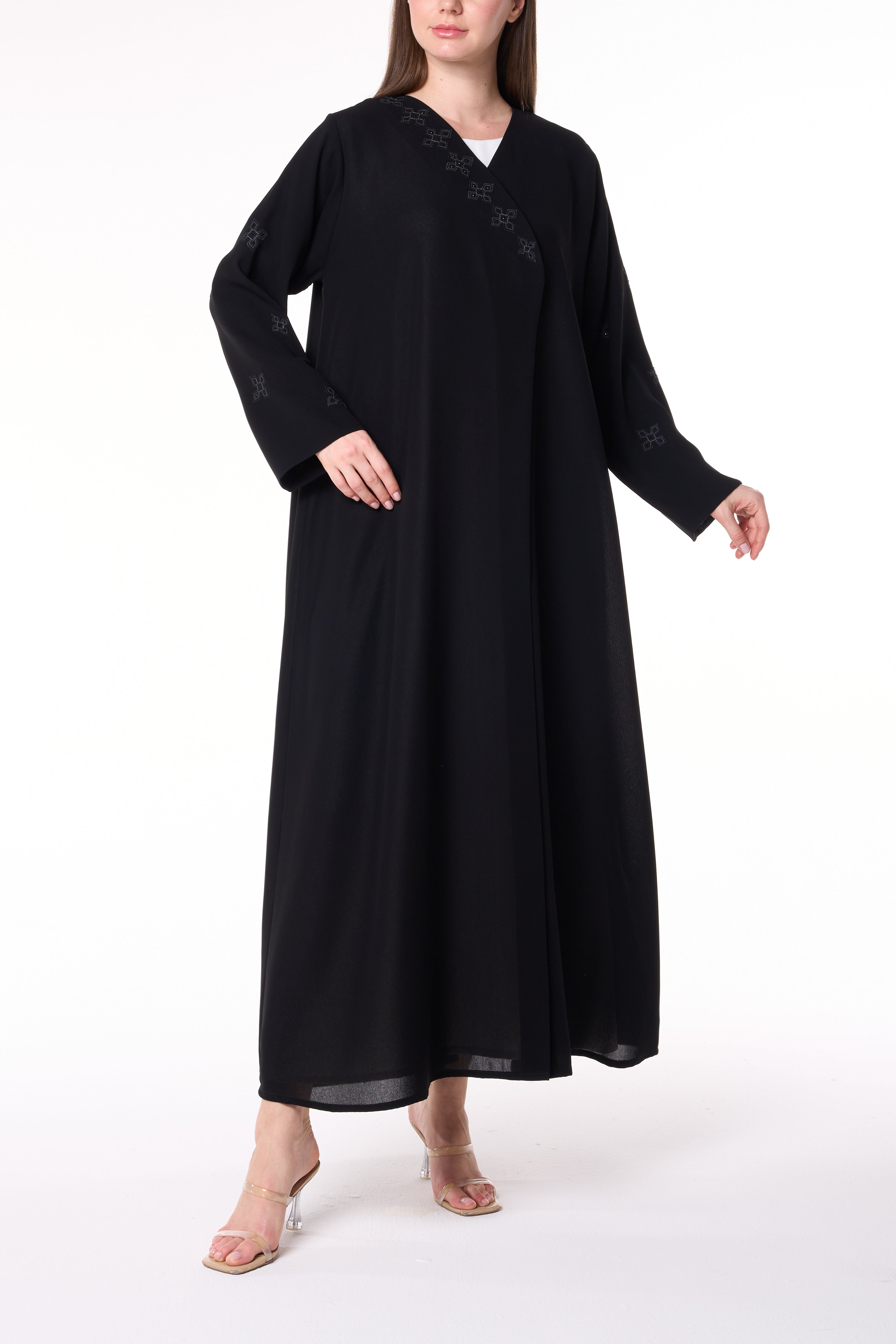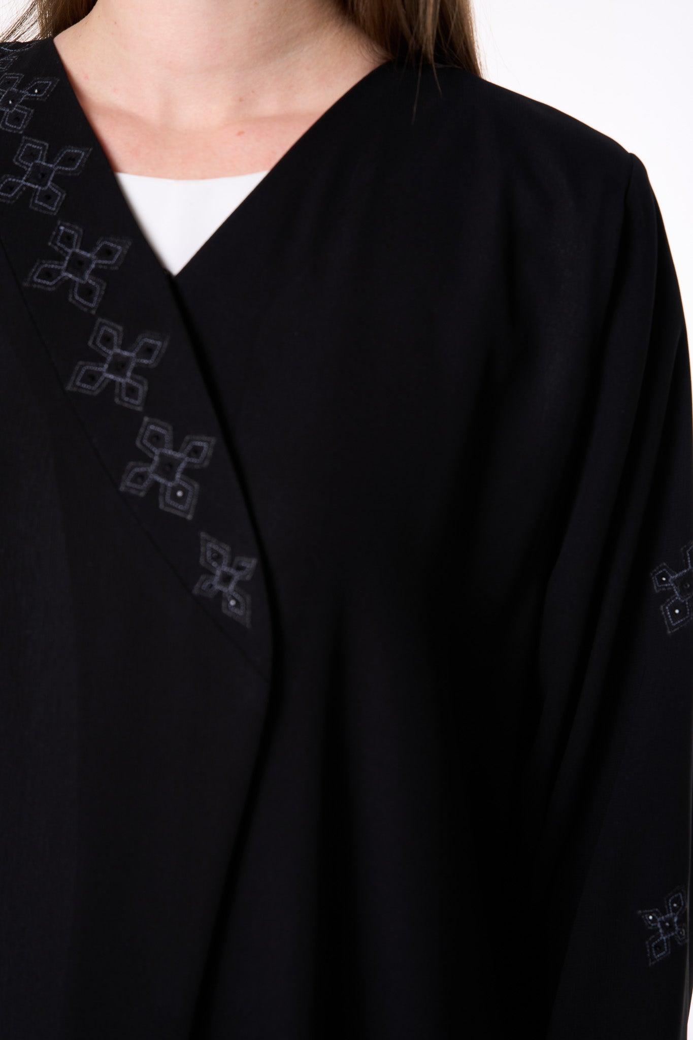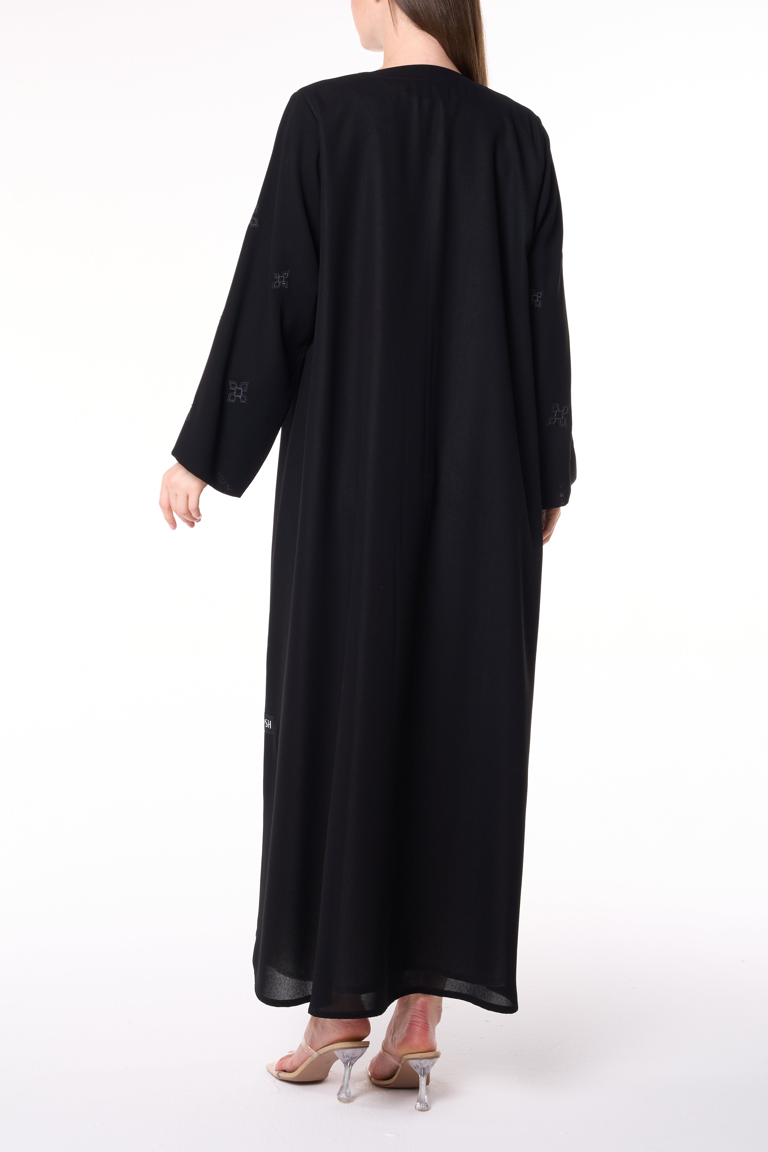 Black Shafa Crepe Abaya with Embroidered Tatreez Detail