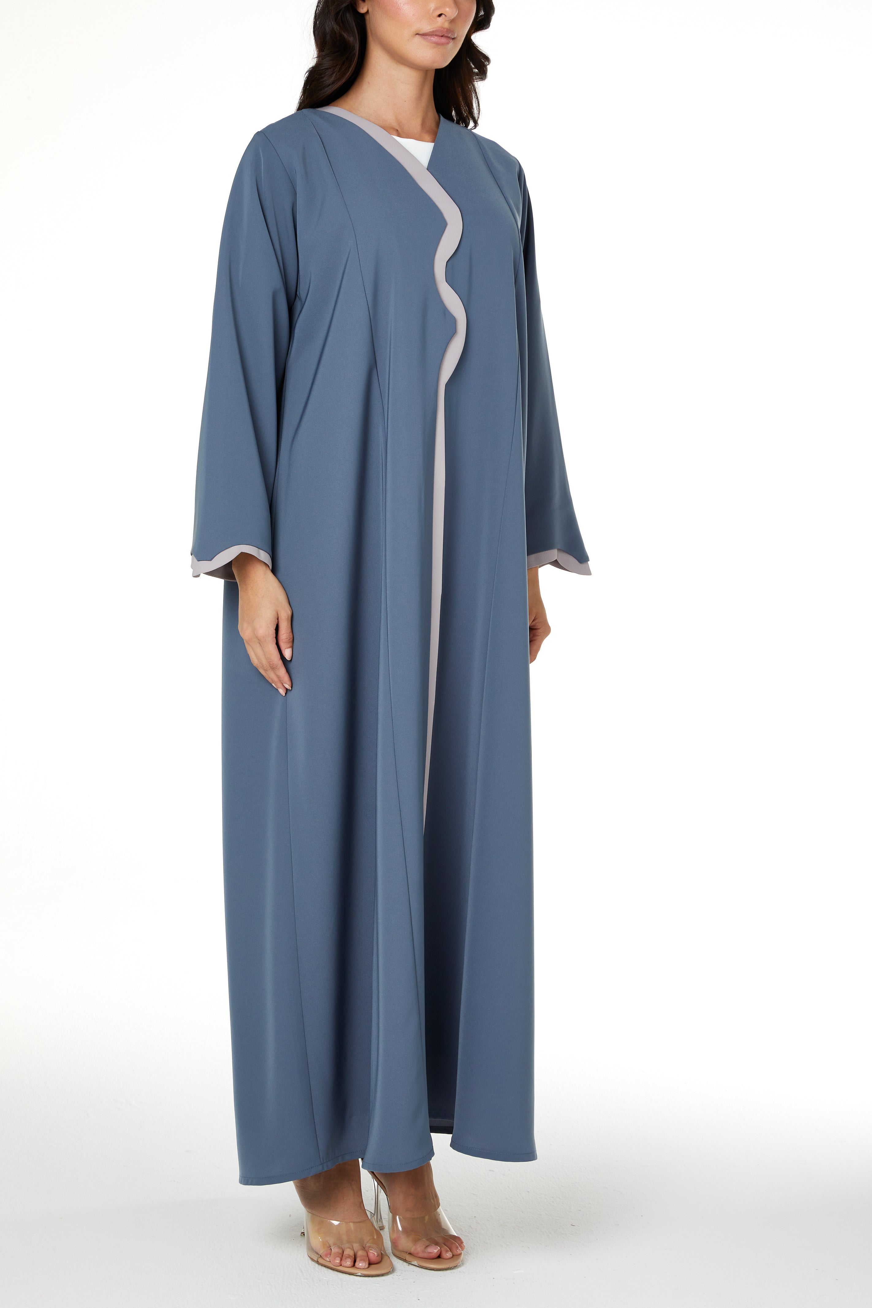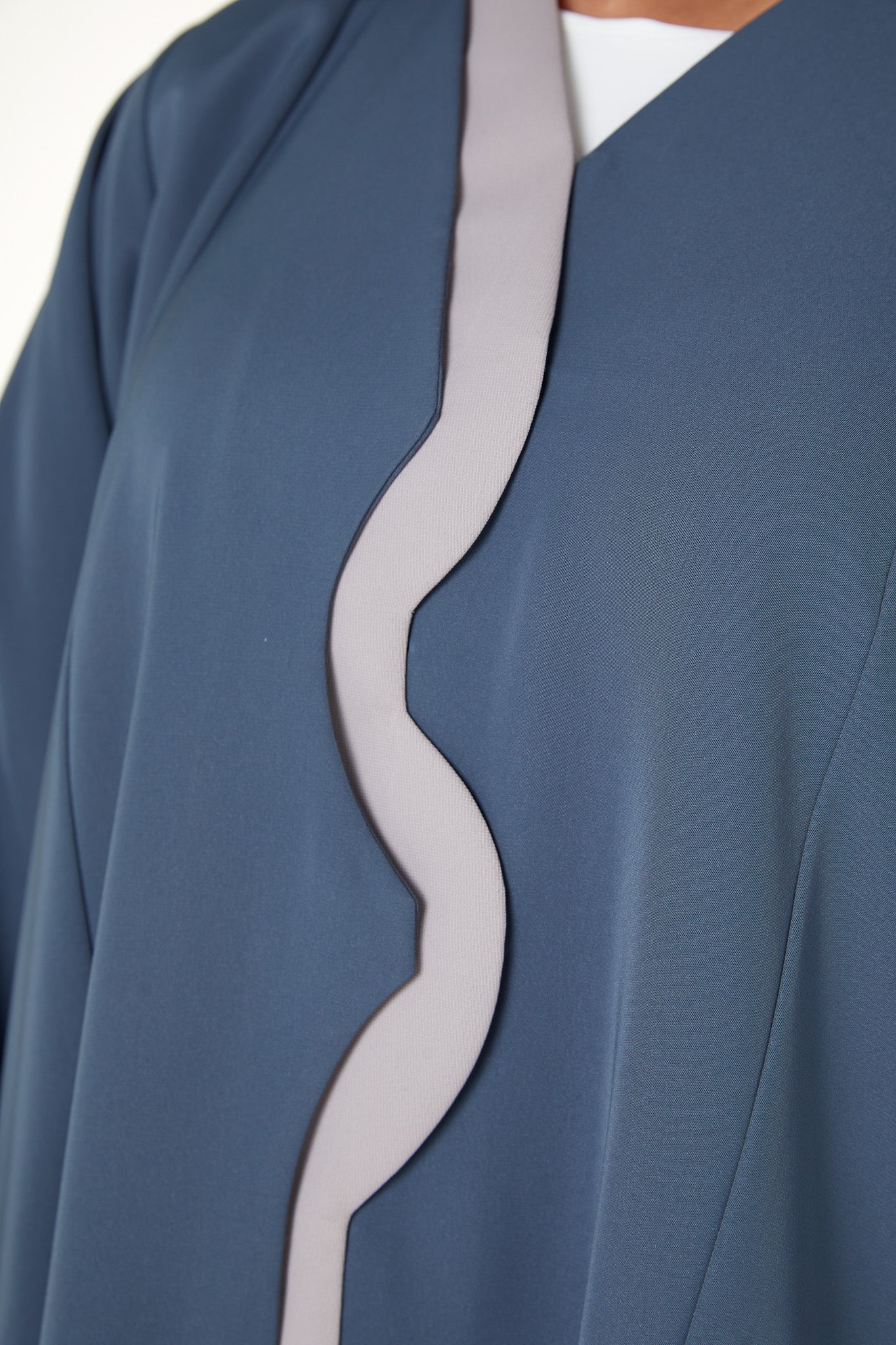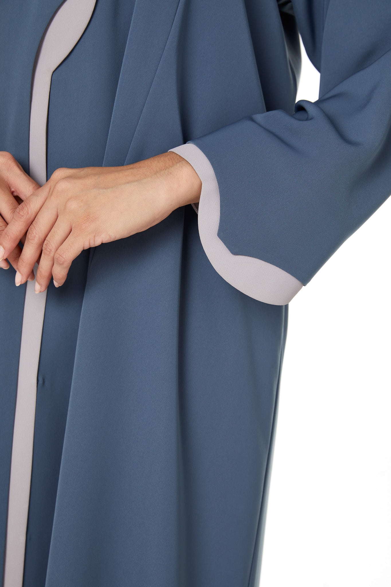 Lio Crepe gives this blue abaya a smooth surface with a neat and structured feel. The fabric is lightweight and comfortable, making it suitable for extended daily wear across seasons. The blue color adds a calm and polished look while remaining easy to style.