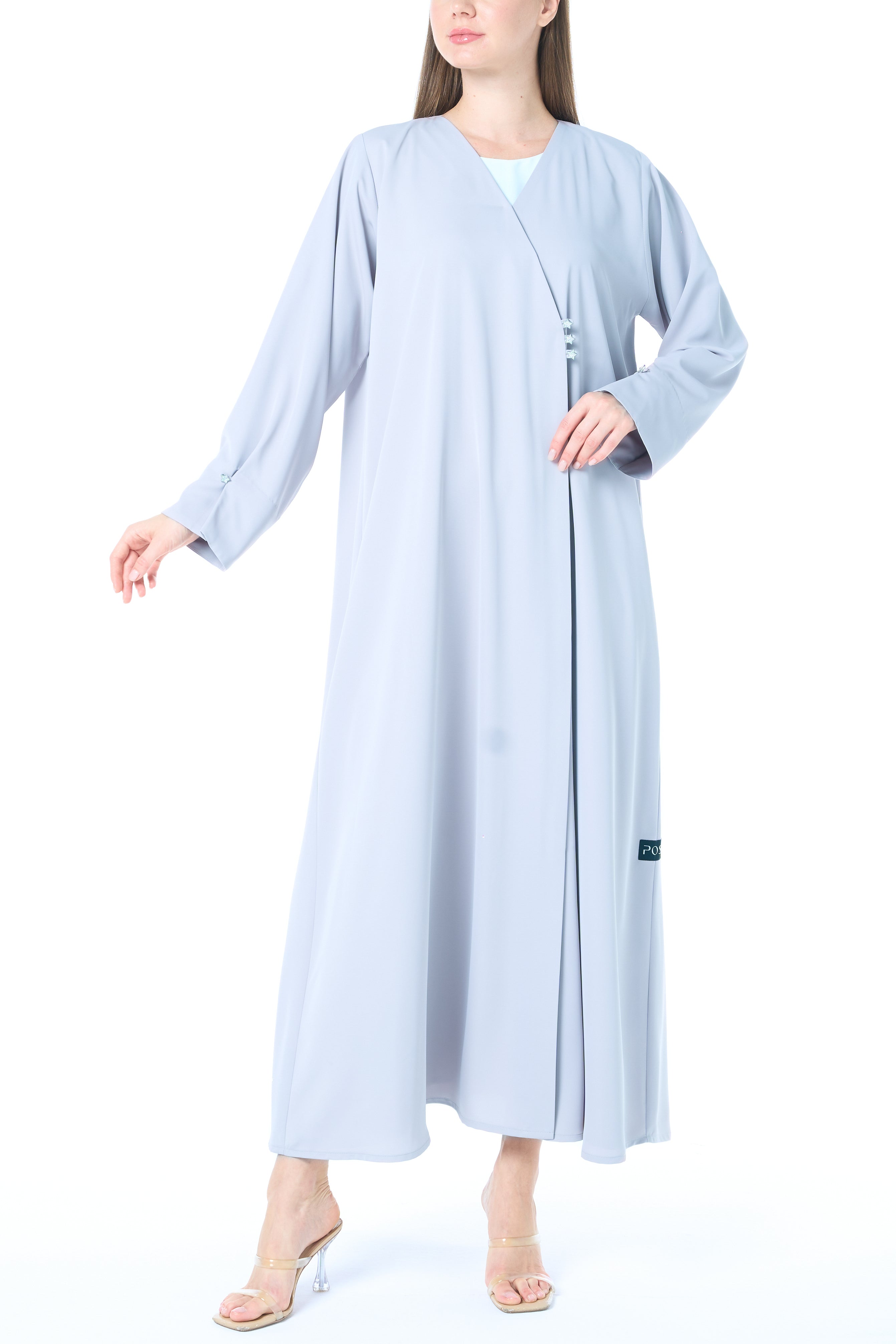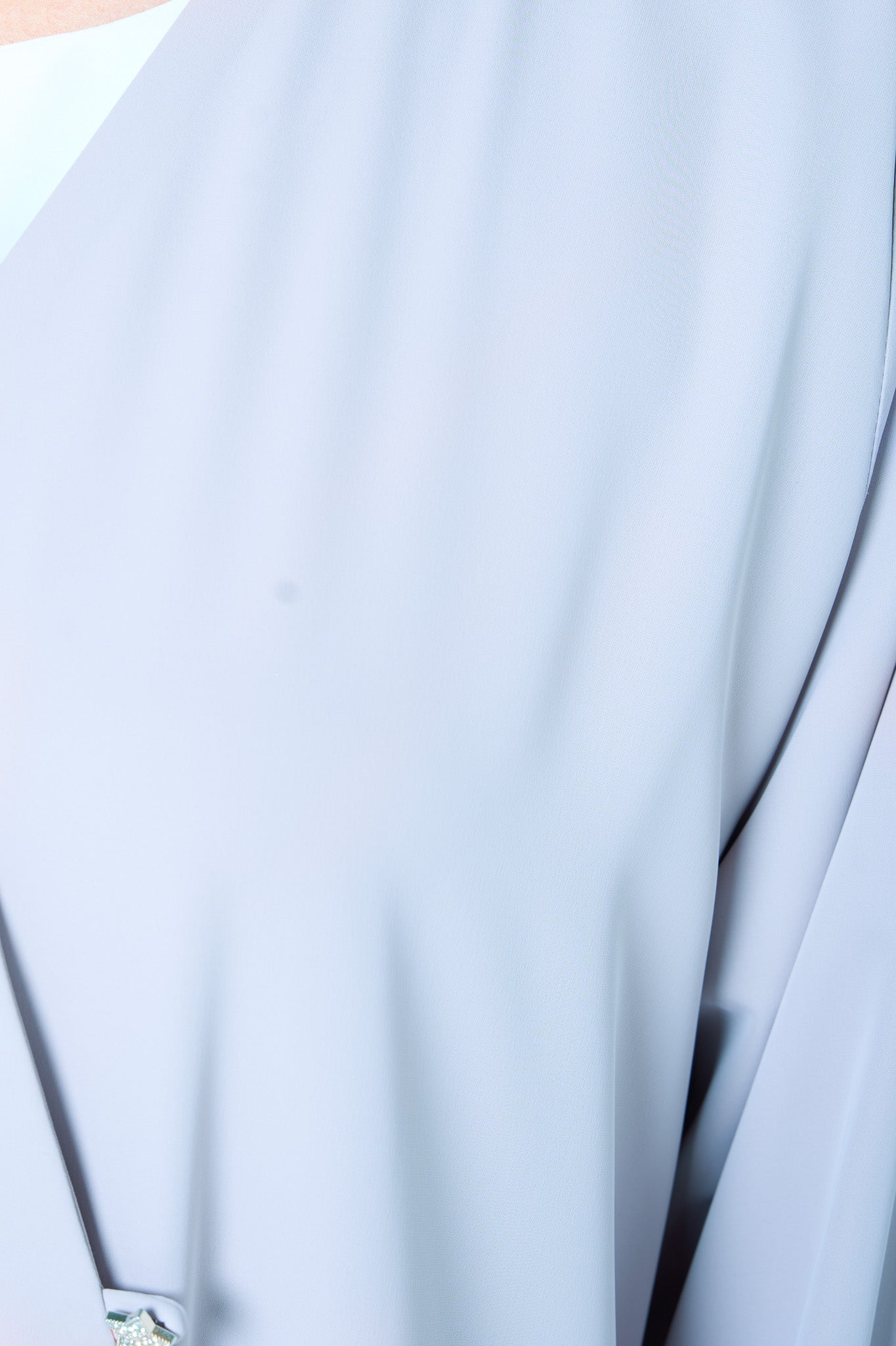 Tailored from breathable Reem Nada Crepe, this abaya in soft blue is designed for quiet elegance. The KLOSH cut creates a graceful shape that widens gently from the shoulders, offering modest flow and ease.