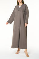 Brown Cool Crepe Abaya with Classic Collar Detail