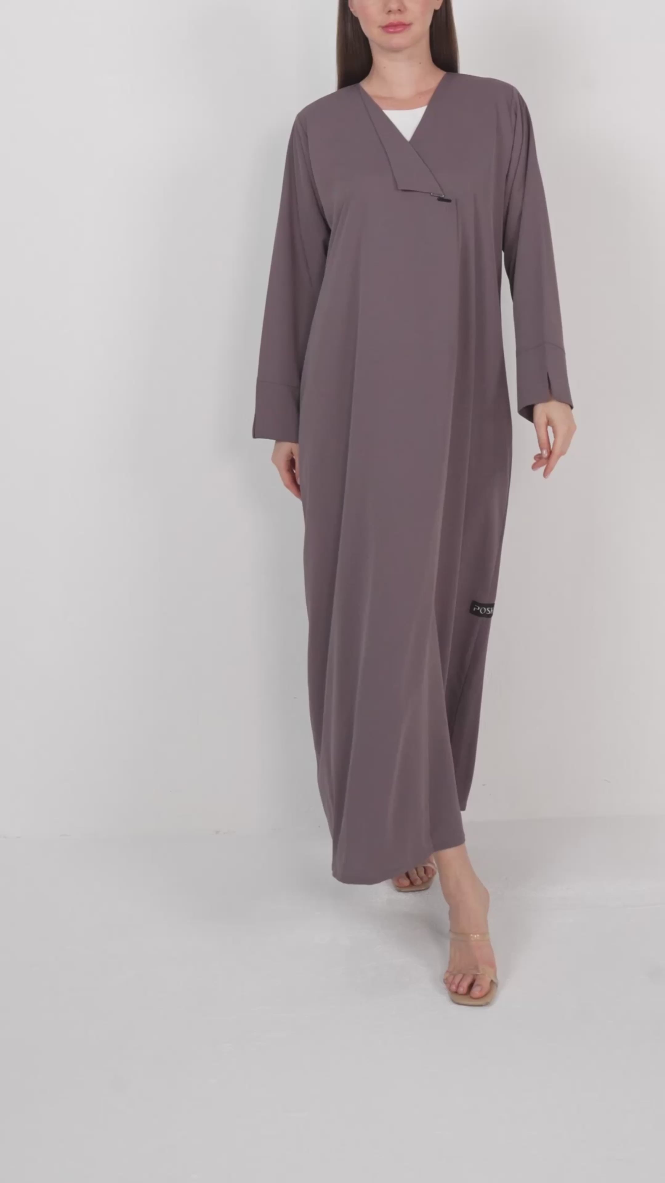 Refined simplicity defines this brown abaya crafted from lightweight Cool Crepe. The design focuses on structure, comfort, and understated elegance—ideal for professional wear, travel, or everyday sophistication.