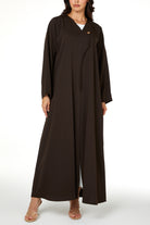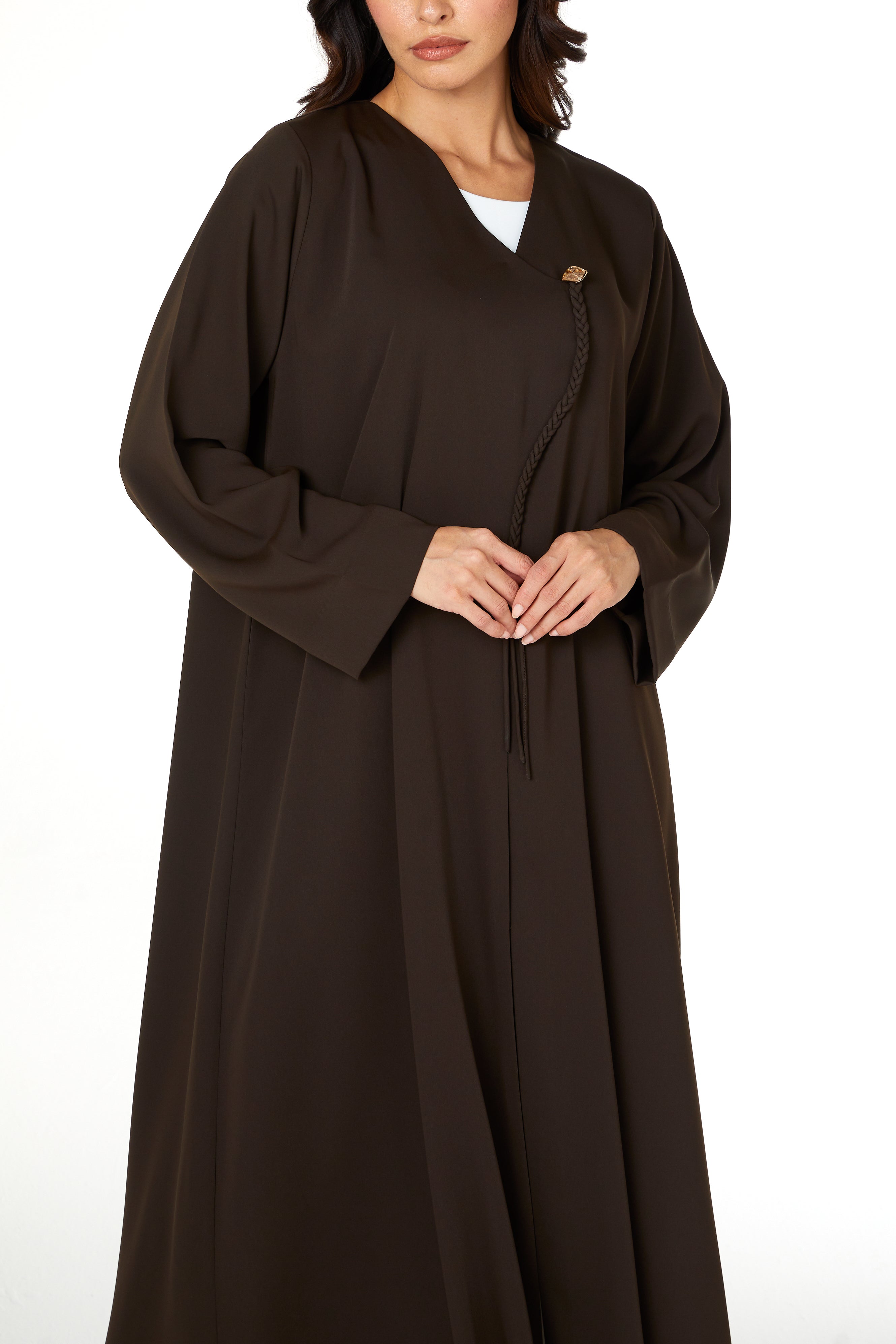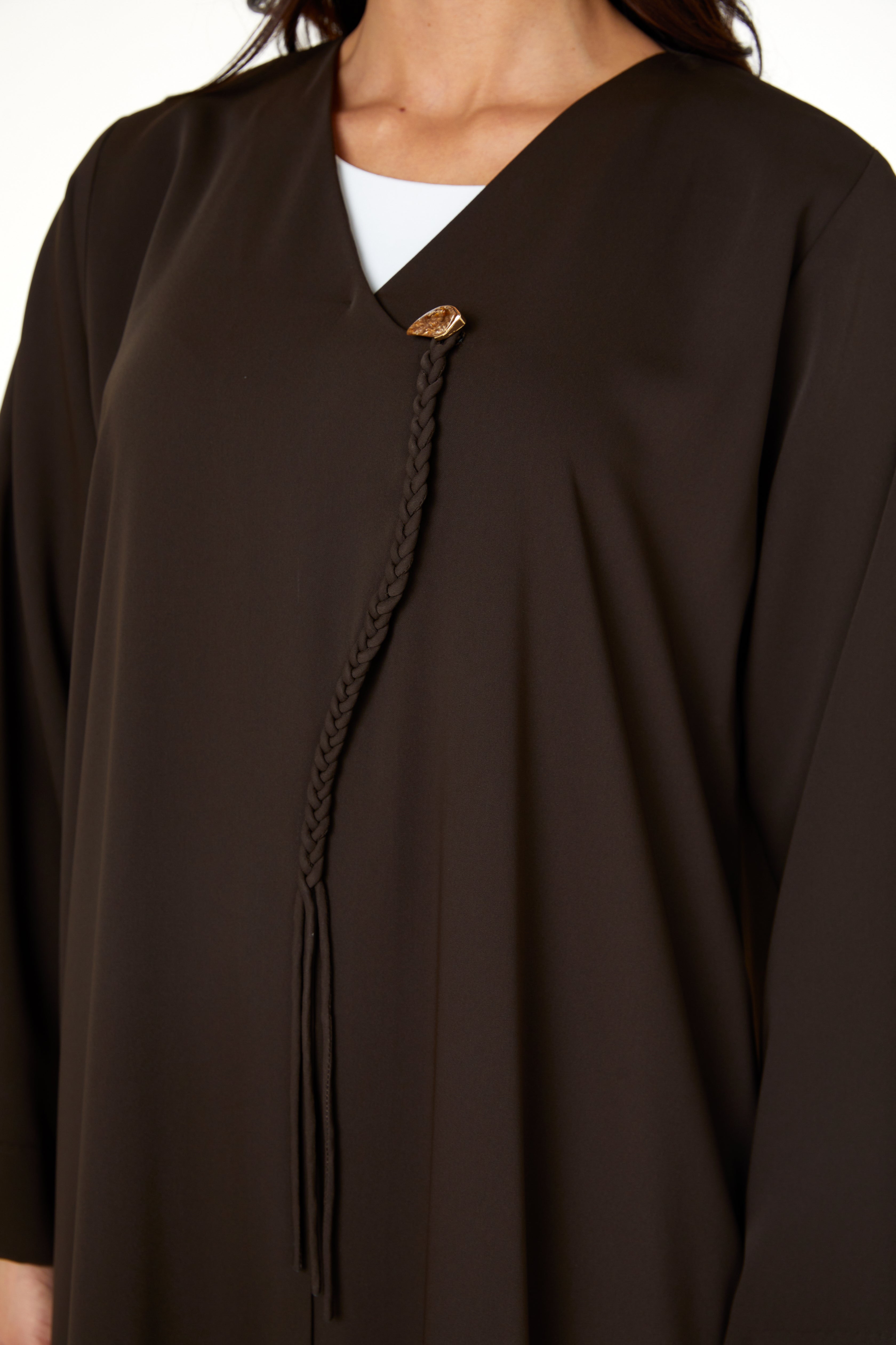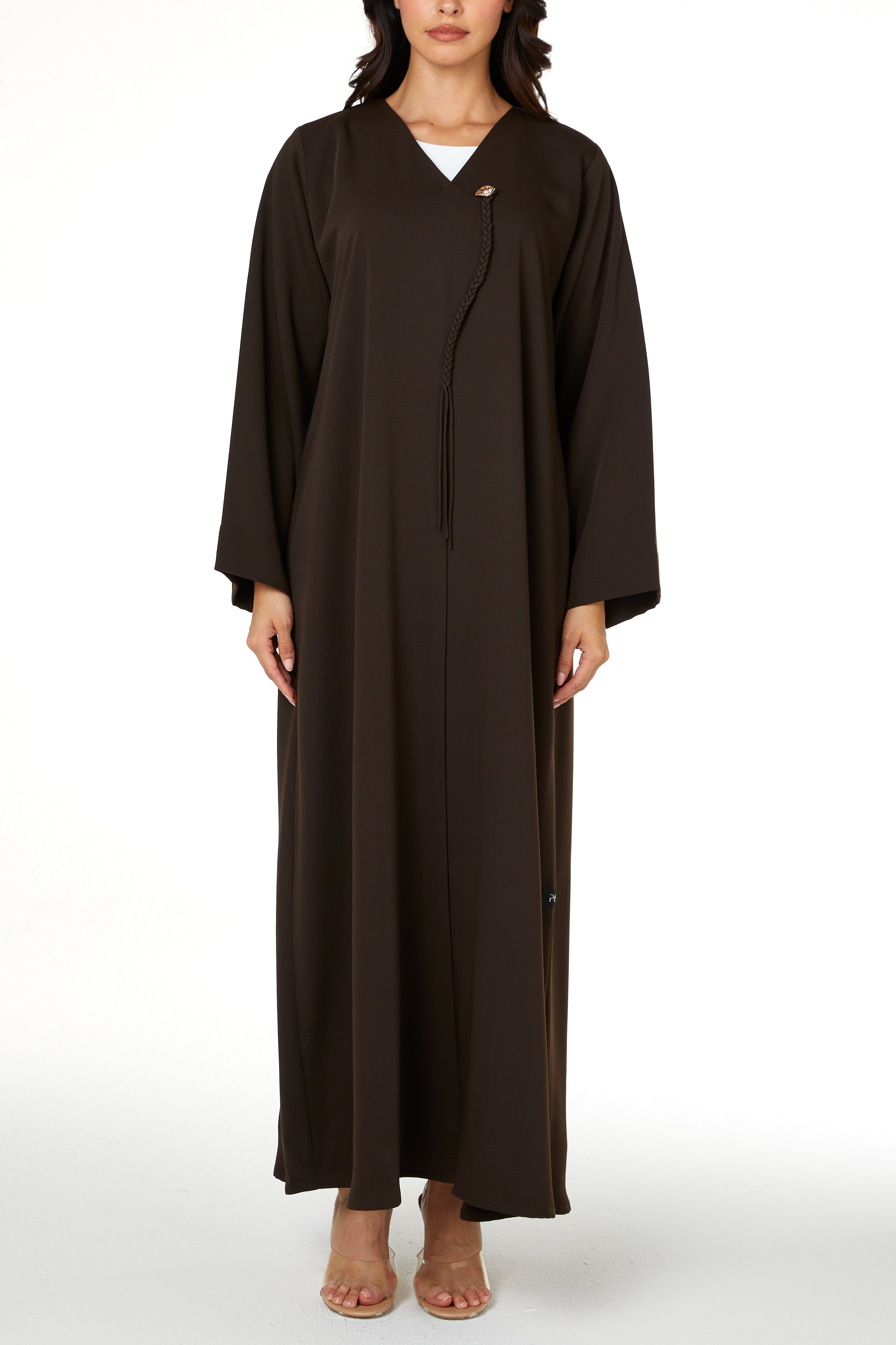 Brown Zoe Crepe Abaya with Braided Dori and Button Accent