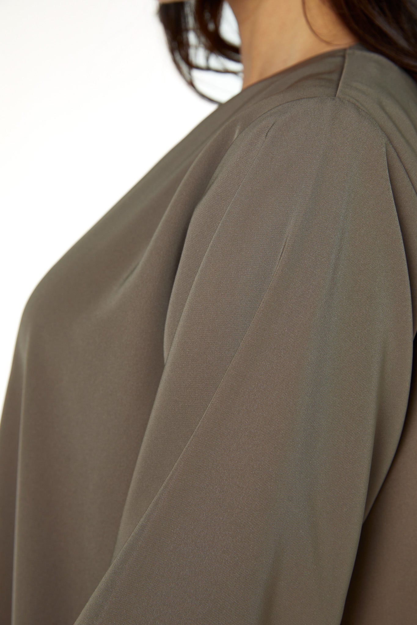 Lio Crepe gives this green abaya a smooth surface with a lightweight and comfortable feel. The fabric is suitable for extended wear and maintains a neat appearance throughout the day. The green color adds a fresh and elegant tone while remaining refined and easy to coordinate.
