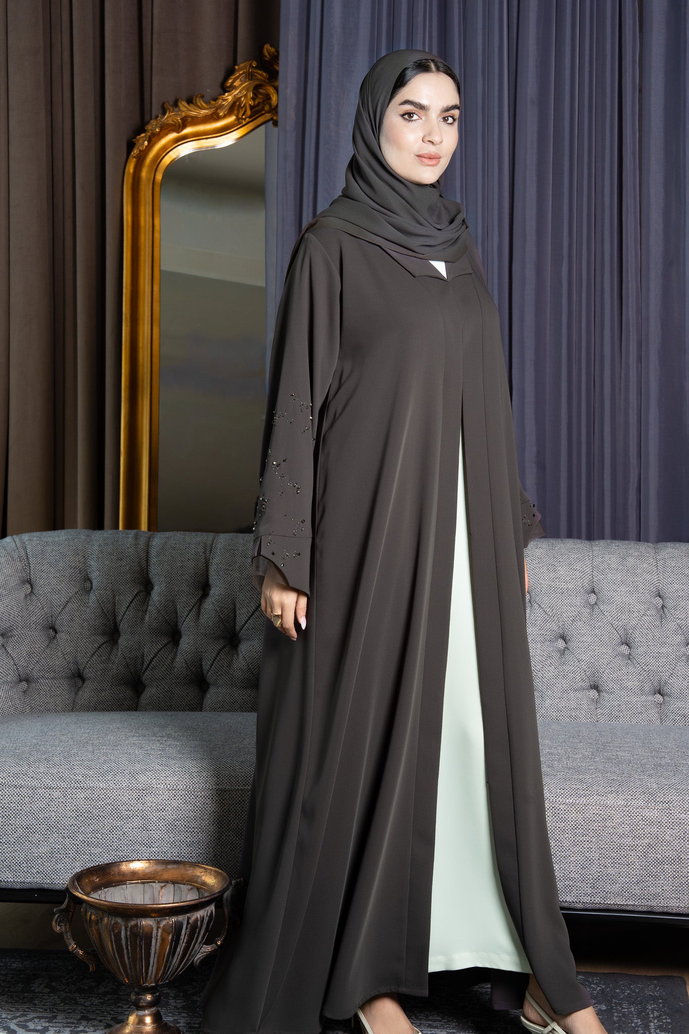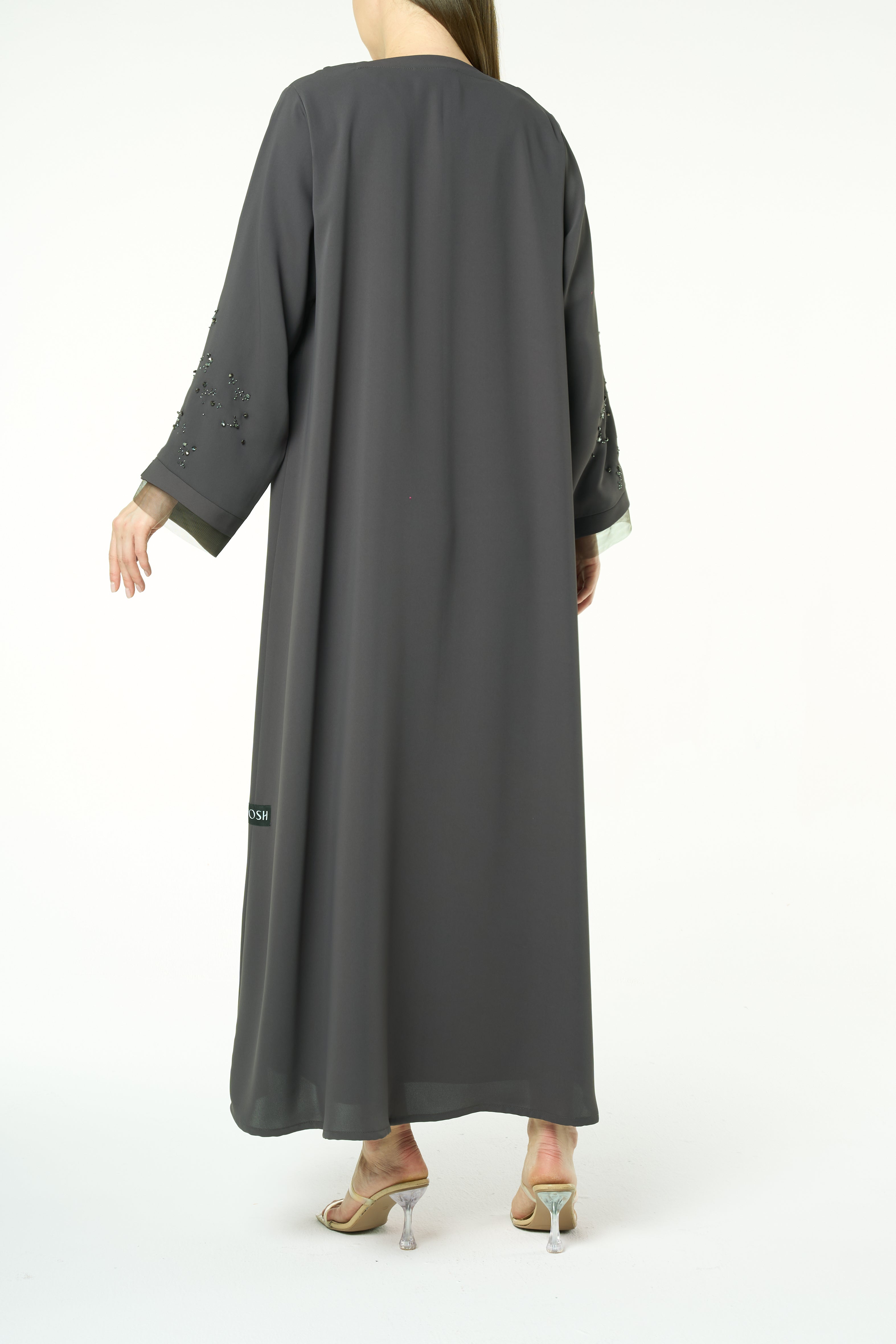 Green Zoe Crepe Abaya with Beaded Sleeve Detail